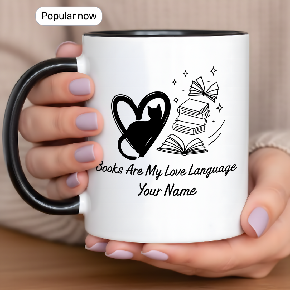 Personalized Books Are My Love Language Mug – Custom Name Cat Lover Coffee Cup, Book Lover Gift| Mug 92