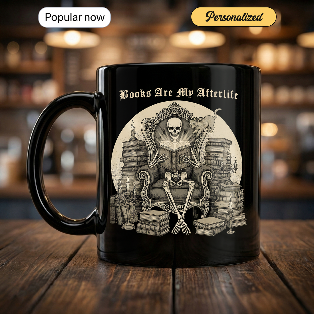 Books Are My Afterlife Mug – Gothic Reading Coffee Mug for Book Lovers, Skeleton Art Gift Idea | Mug 121