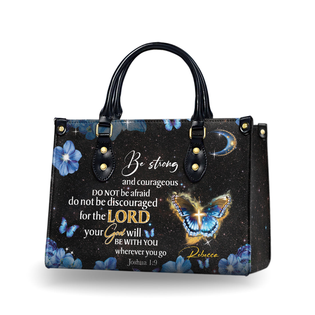 HB60-custom name christian handbag for women, butterfly and flower purse with joshua 1 9 verse, be strong faith scripture bag