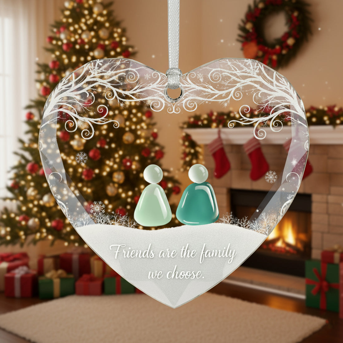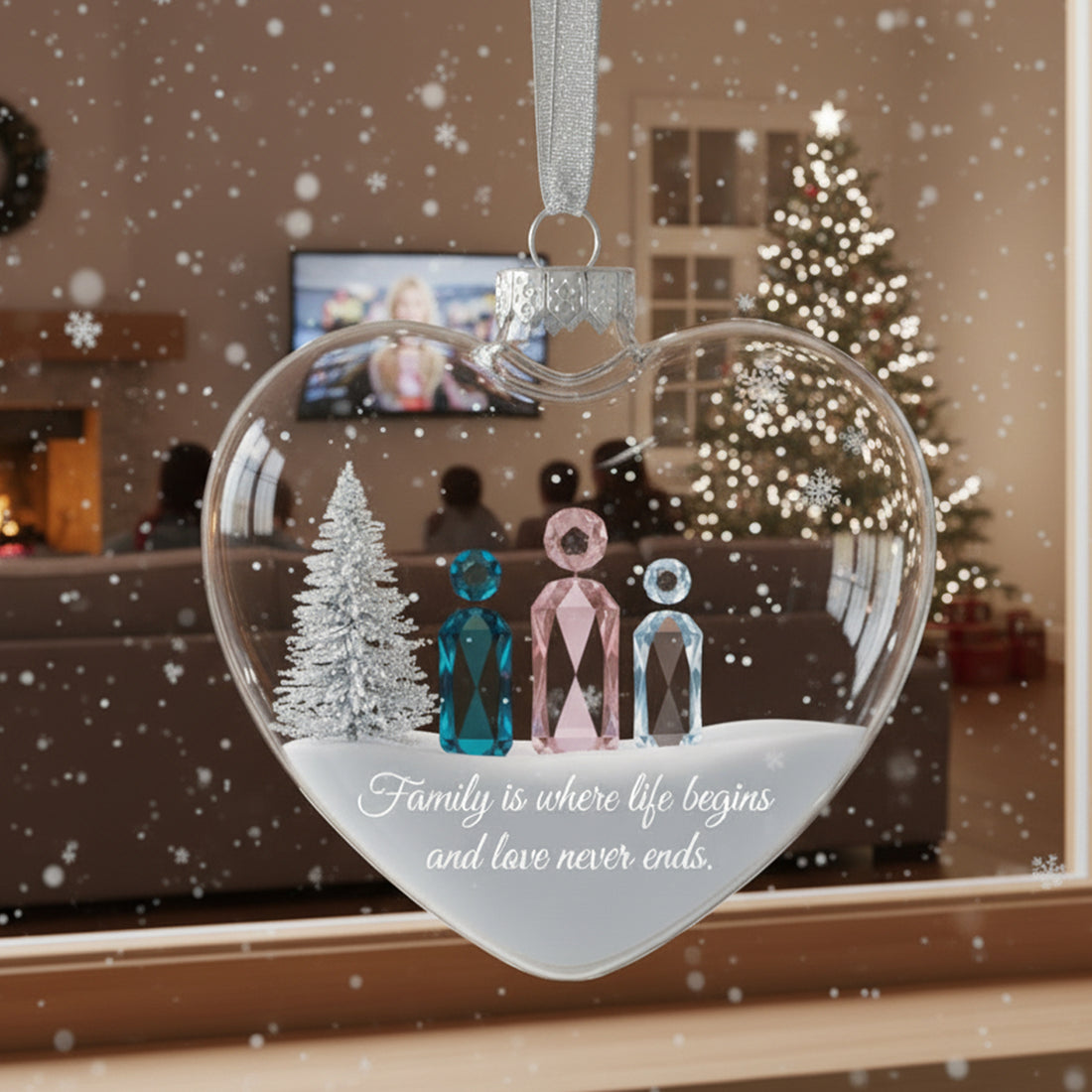 Christmas lights twinkle, reflecting in this crystal-clear heart — a symbol of family, love, and...