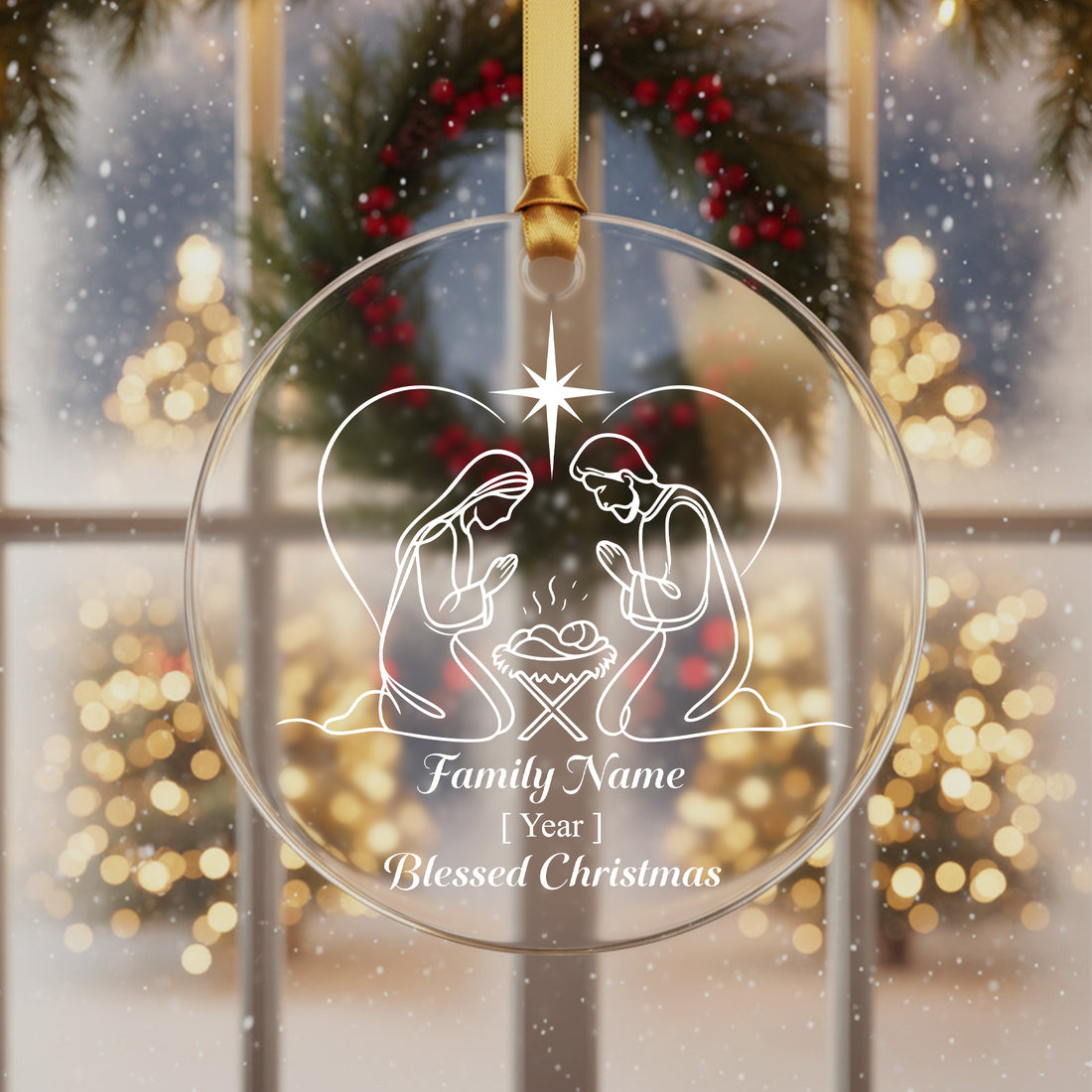 Custom Christian Ornament – Holy Family Blessed Christmas Nativity Scene, Personalized Religious Gift 2025|ONM32