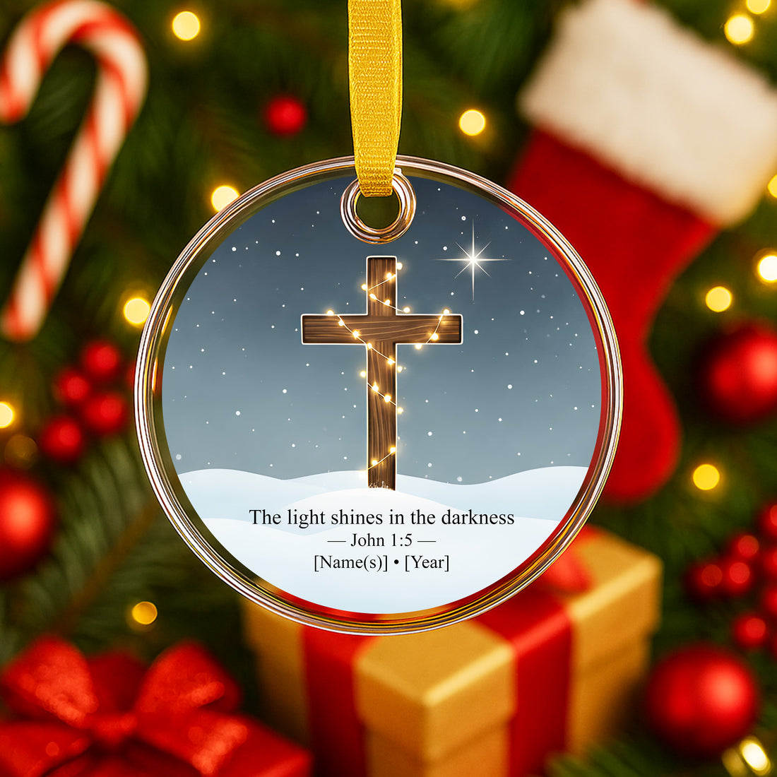 Personalized Christian Acrylic Ornament - Custom Name & Year Cross Christmas Decoration, John 1:5 The Light Shines in the Darkness Gift|ONM20