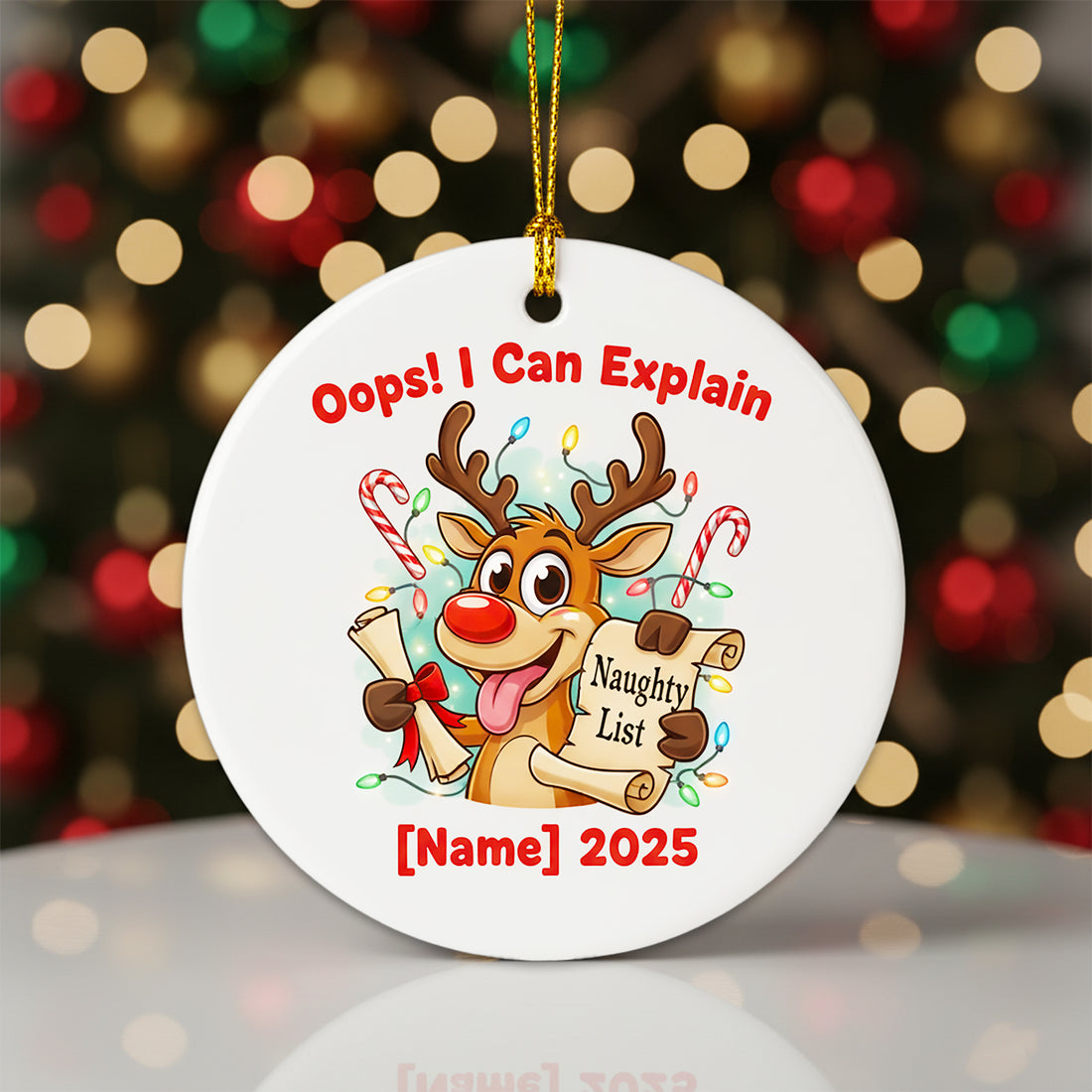 Oops I Can Explain Ornament, Funny Naughty List Ornament, Personalized Reindeer Christmas Ornament 2025, Custom Name Ornament | Ceramic153