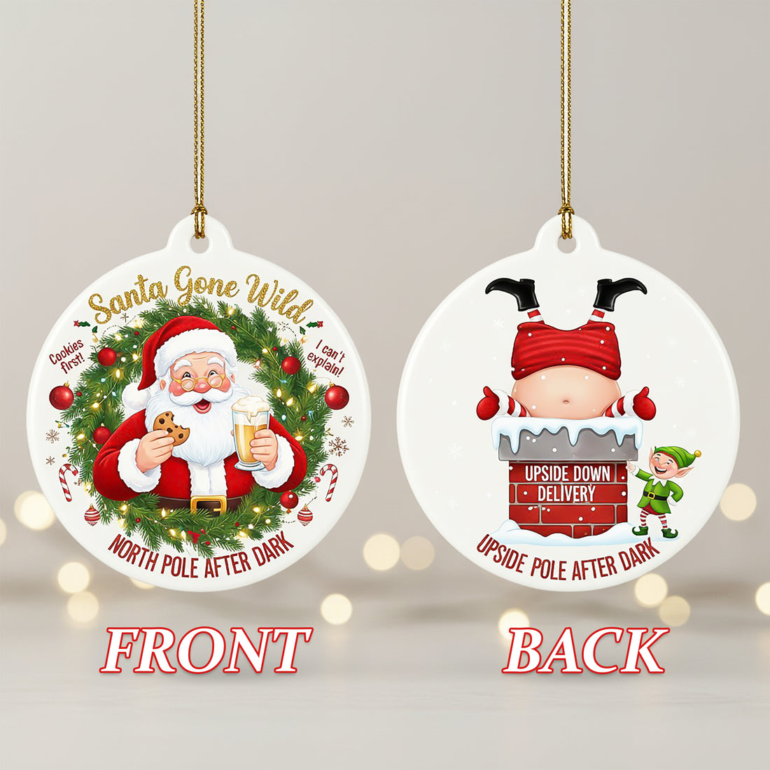 Santa Gone Wild Ornament, Funny Christmas Ornament for Adults, Naughty Santa Ceramic Ornament | Ornament142