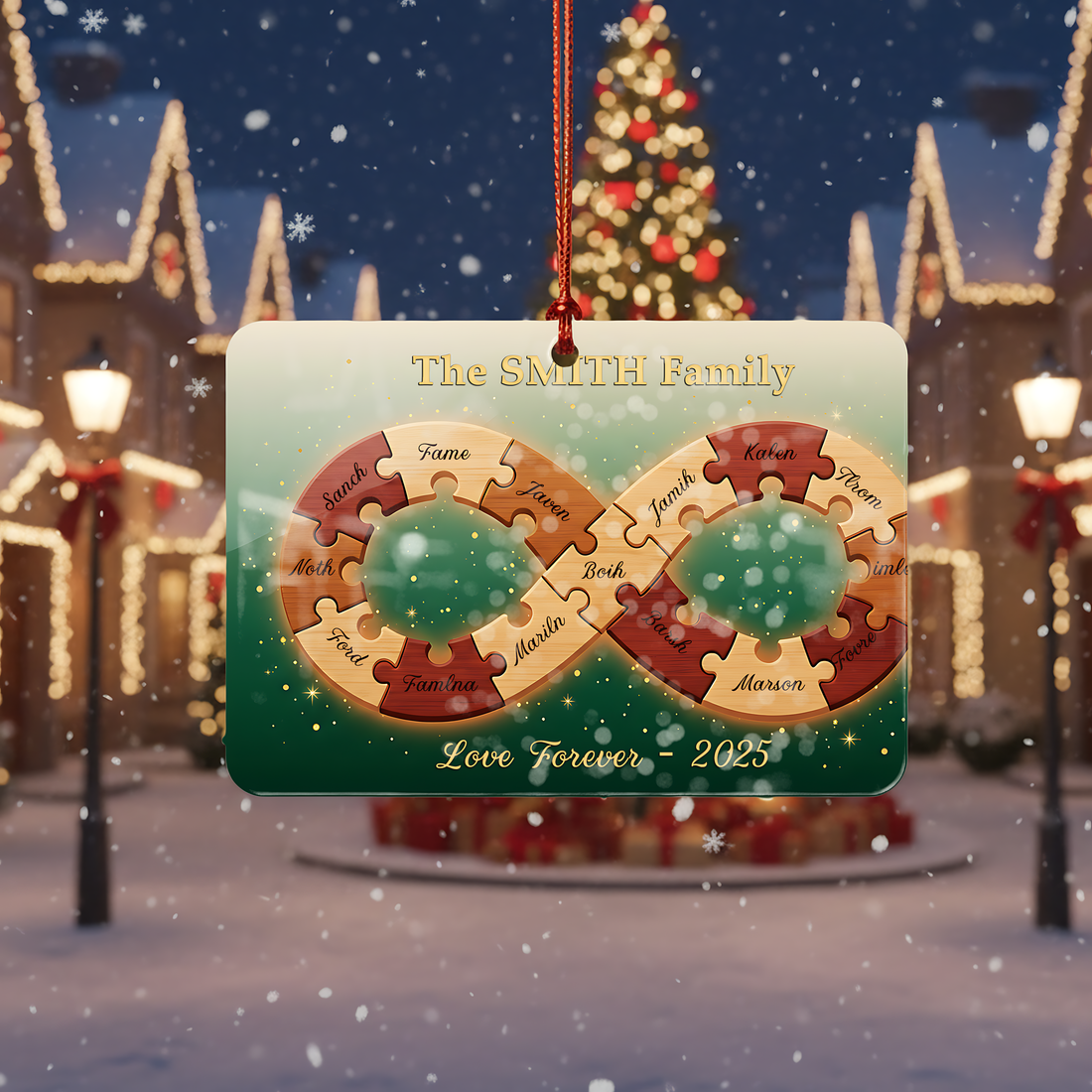 Personalized Family Puzzle Ornament - Custom Name for Each Member, Love Forever 2025, Acrylic Family Christmas Decoration, Custom Holiday Keepsake|ONM72