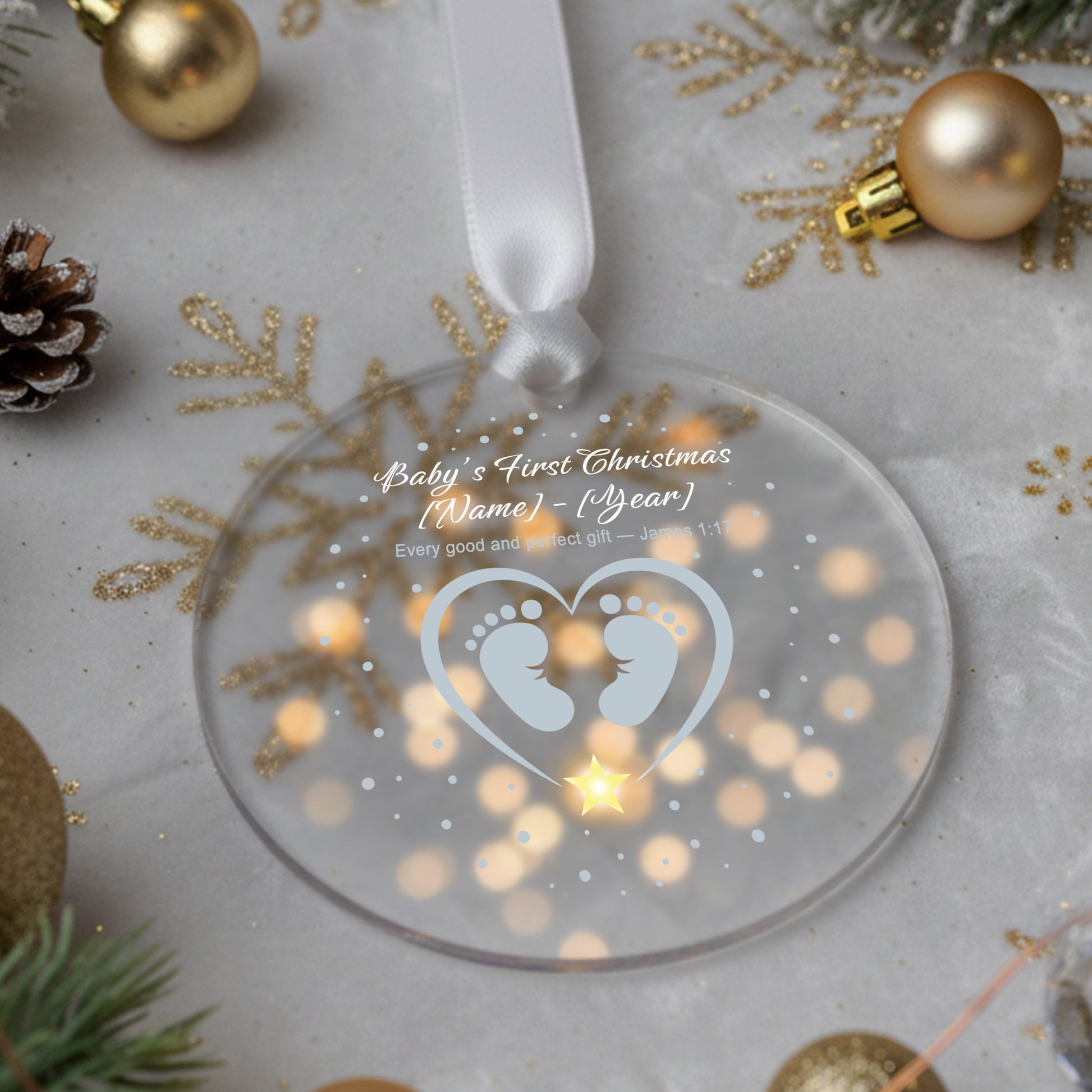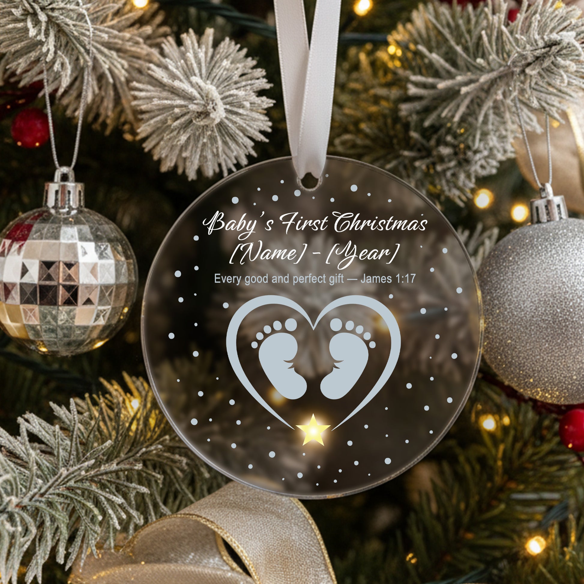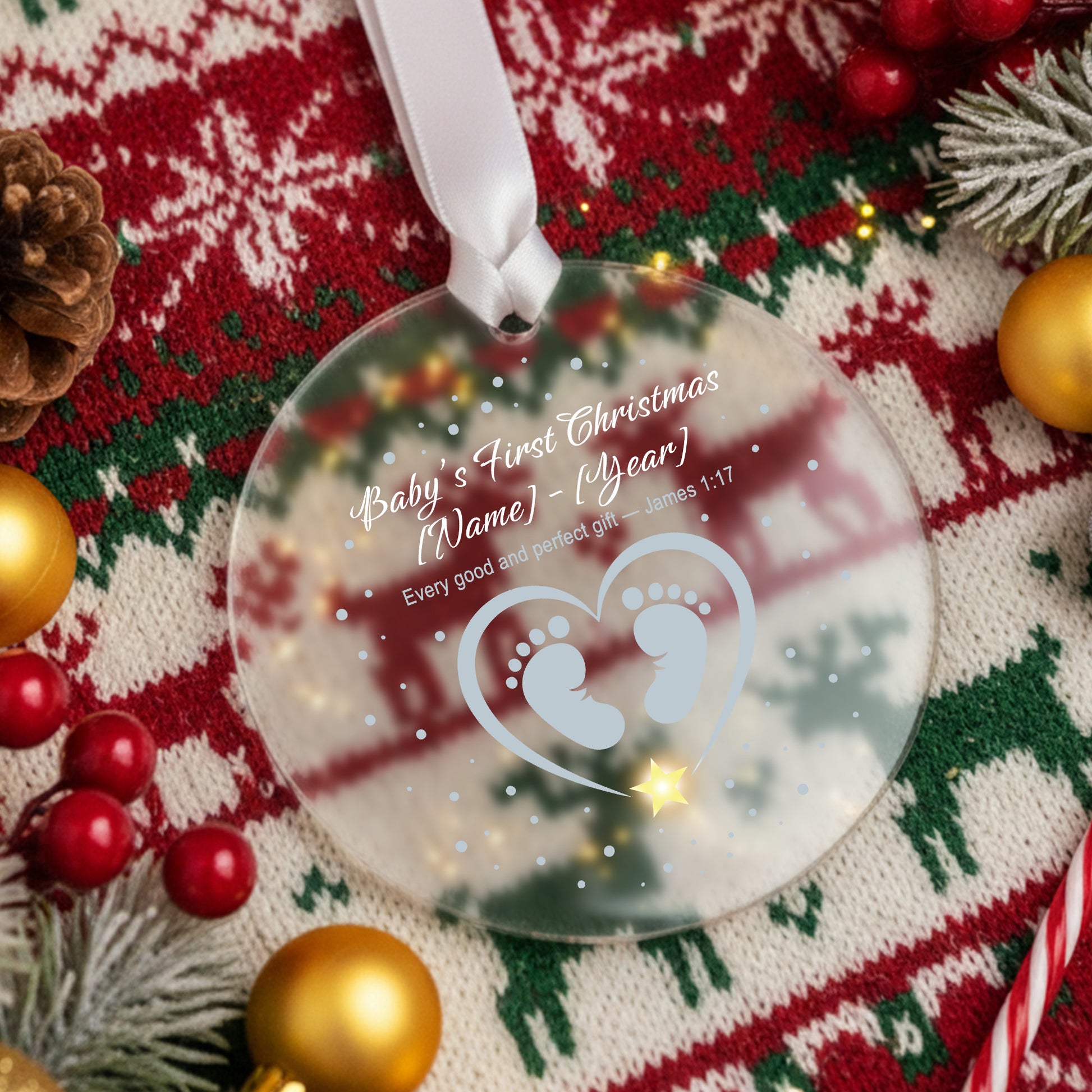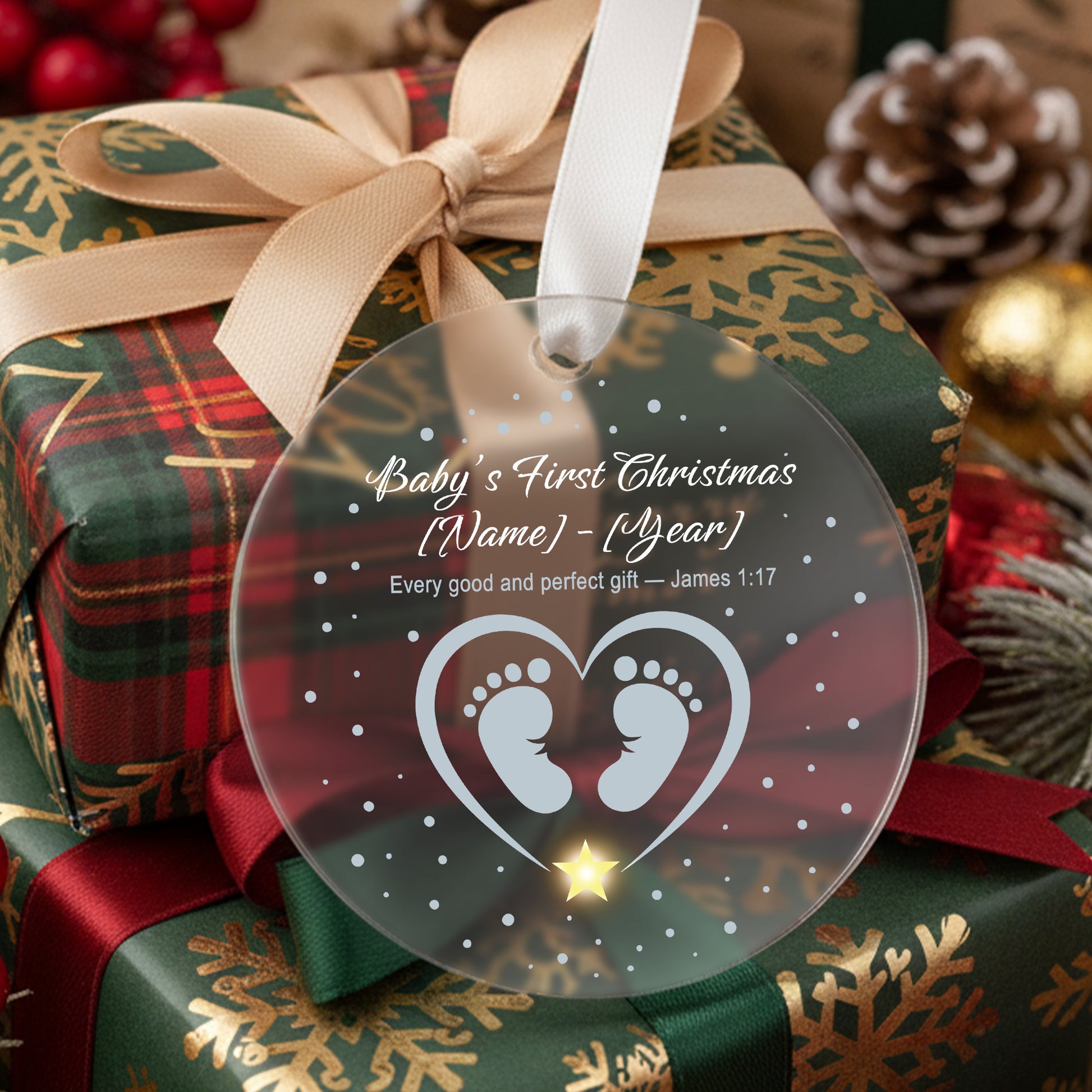 Baby’s First Christmas Ornament | Personalized Acrylic or Glass Keepsake with Bible Verse James 1:17|ONM39