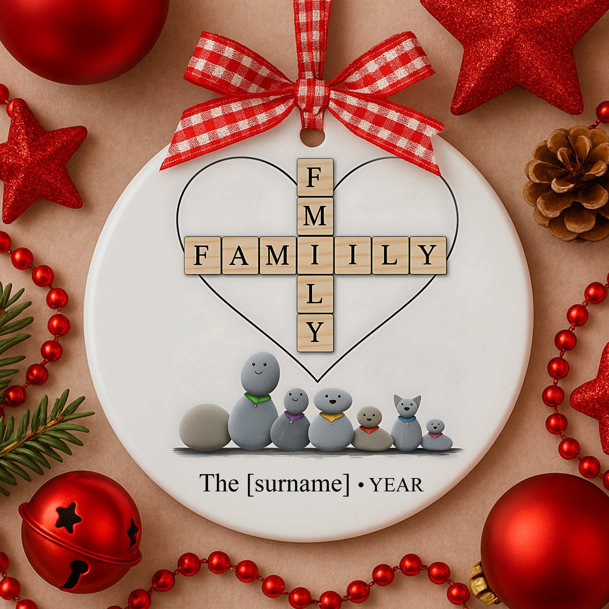Custom Family Name Ornament 2025, Personalized Pebble Art Christmas Ornament, Family Gift for Parents, Holiday Keepsake Decor|ONM65