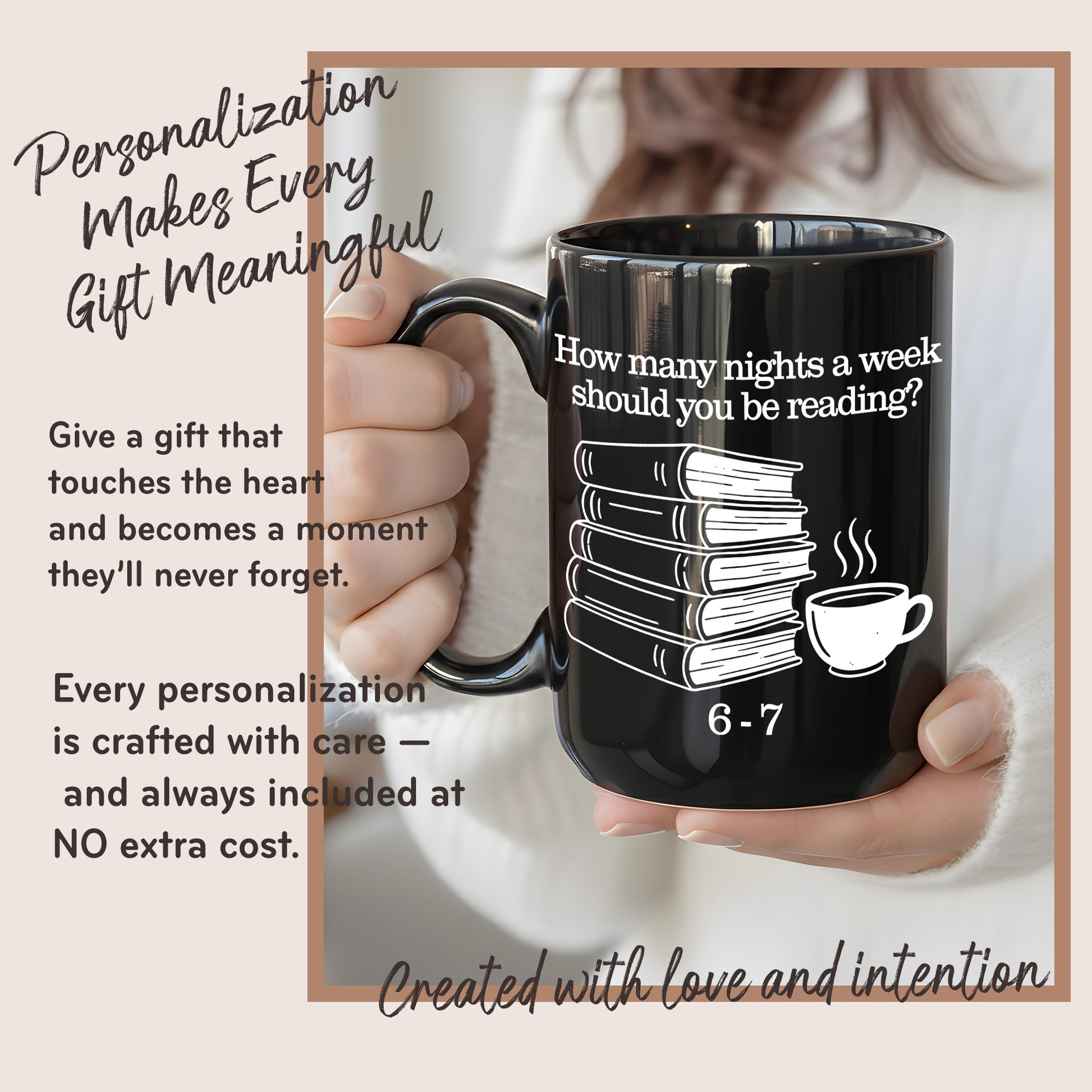 How Many Nights a Week Should You Be Reading Mug, Personalized Reading Mug, Gift for Book Lovers, Coffee Mug for Night Readers, Custom Book Mug| Mug 8