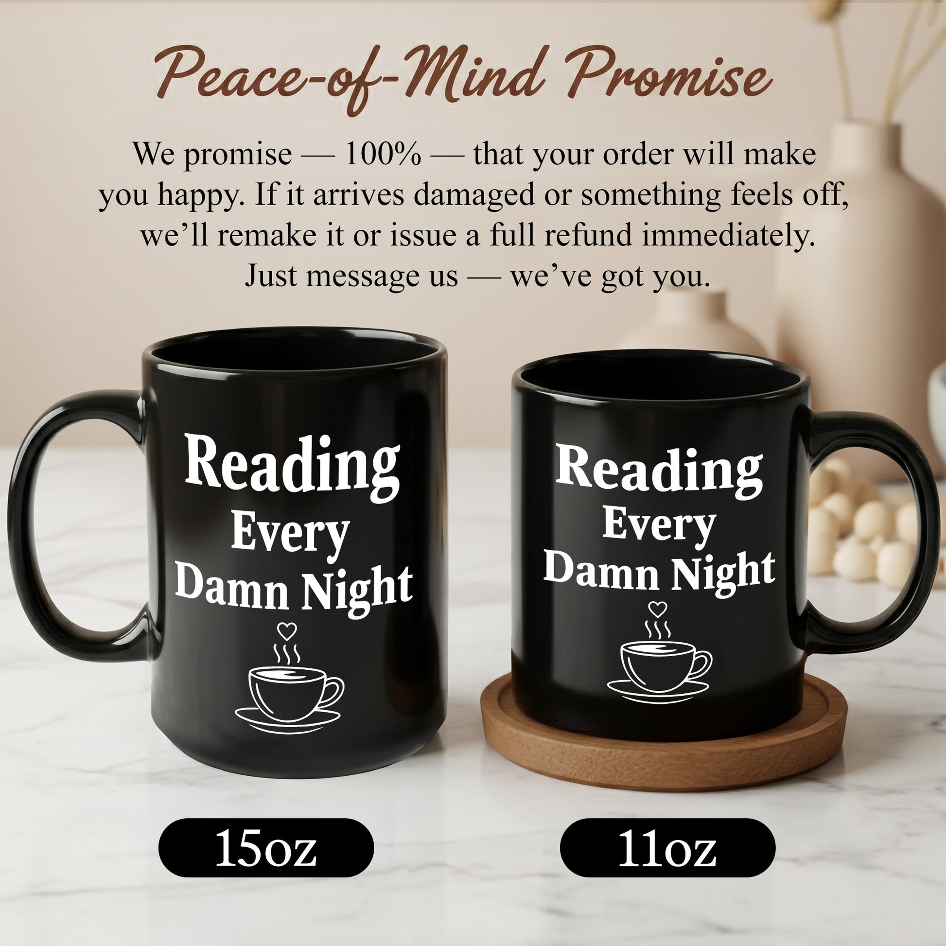 👉 Order now and enjoy your late-night reading sessions with the "Reading Every Damn Night" mug! Perfect for those who live for books and coffee!