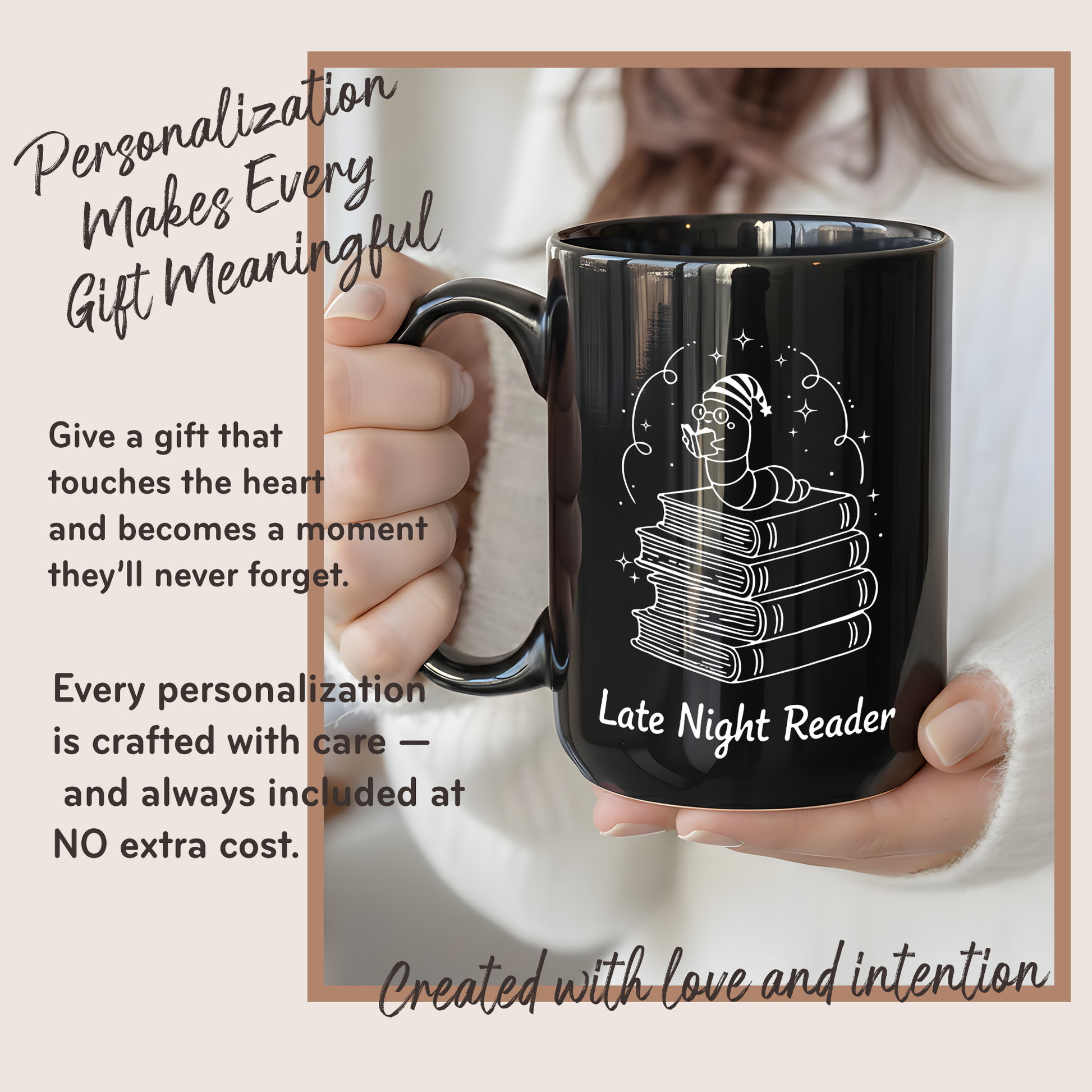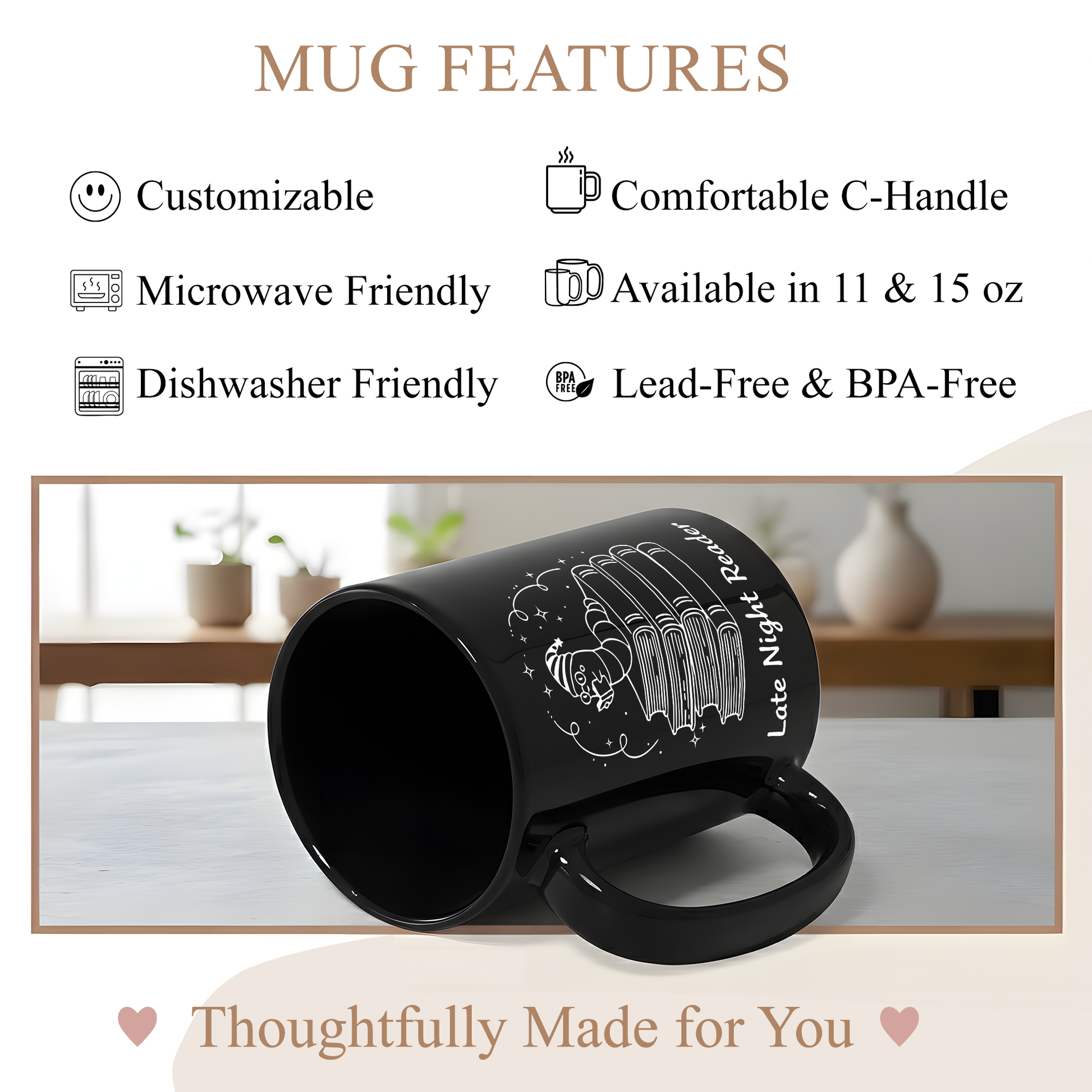 Whether you're sipping hot chocolate during a study session, enjoying late-night tea, or fueling your midnight reading adventure, this mug adds warmth, comfort, and personality to your routine.