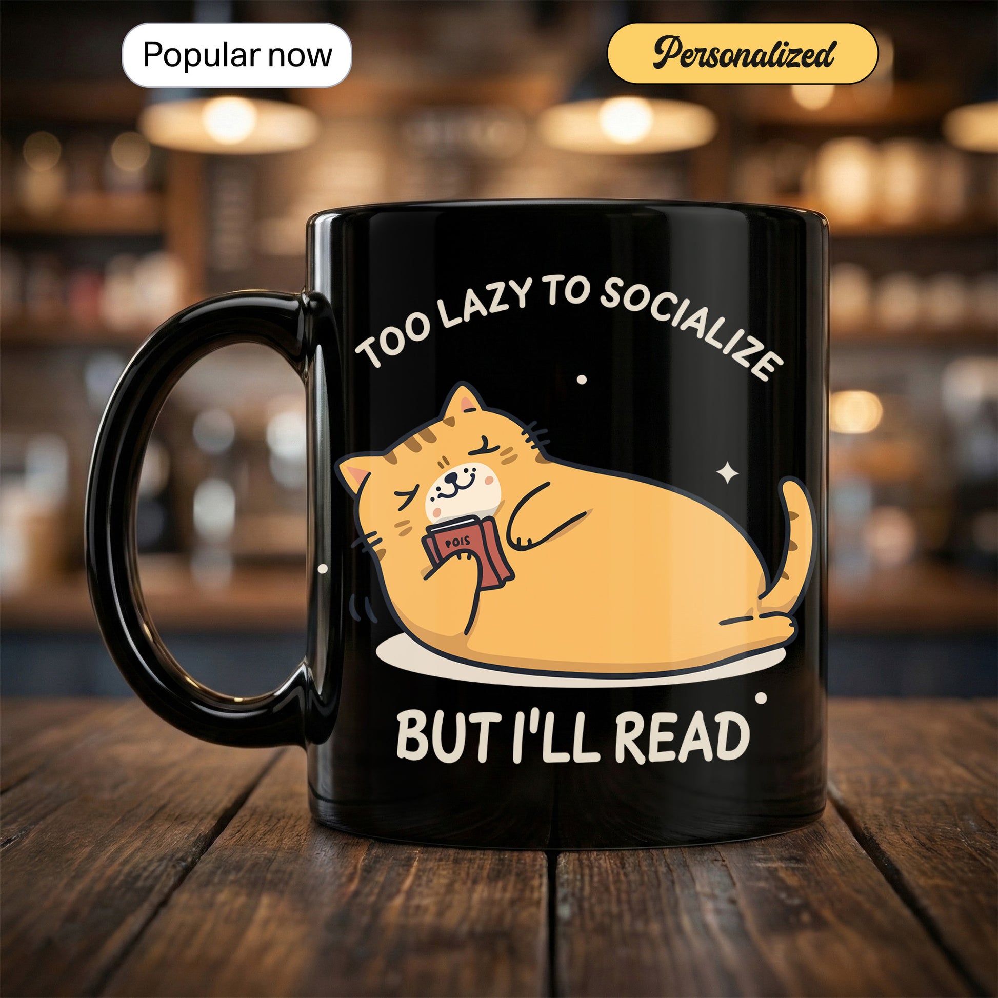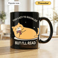 Too Lazy to Socialize Cat Mug – Funny Introvert Reading Mug – Cute Lazy Cat Coffee Cup for Book Lovers, Readers, Cat Lovers Gift | Mug 40