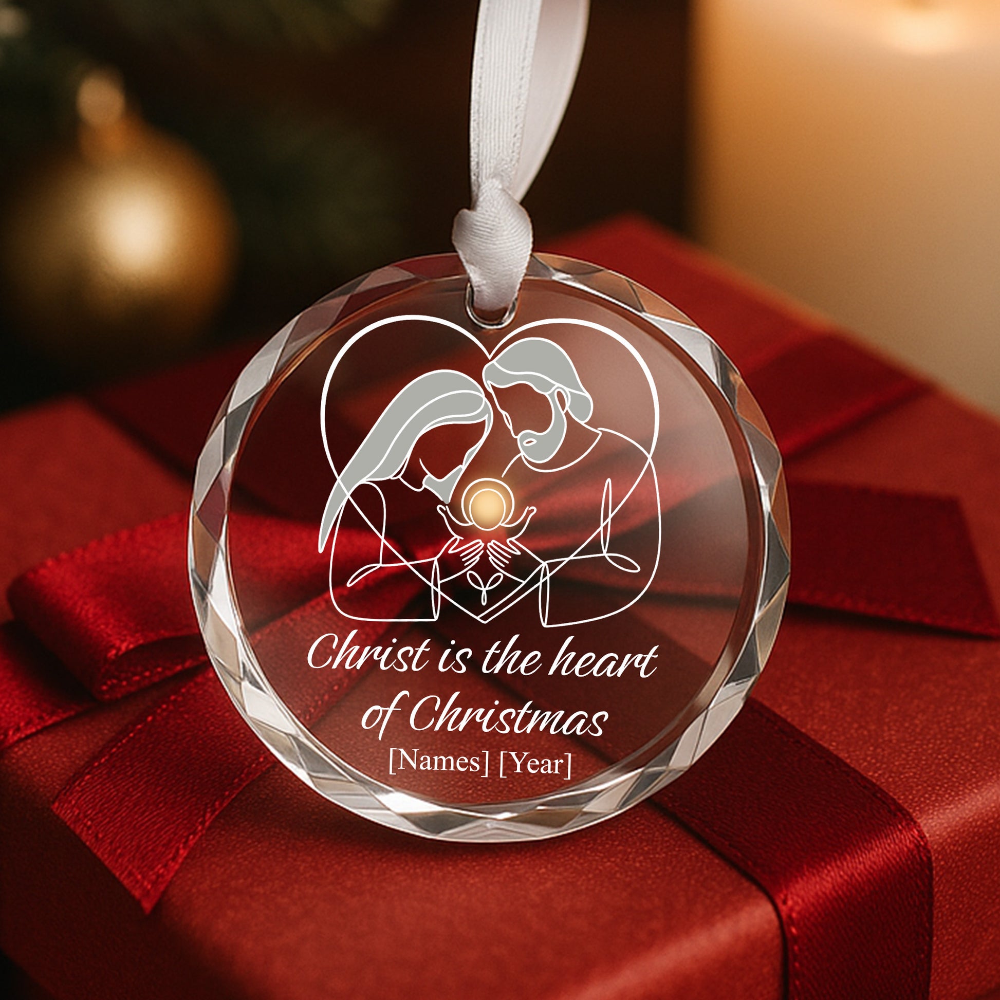 Christ Is the Heart of Christmas Ornament | Personalized Acrylic or Glass Christian Keepsake Gift|ONM41