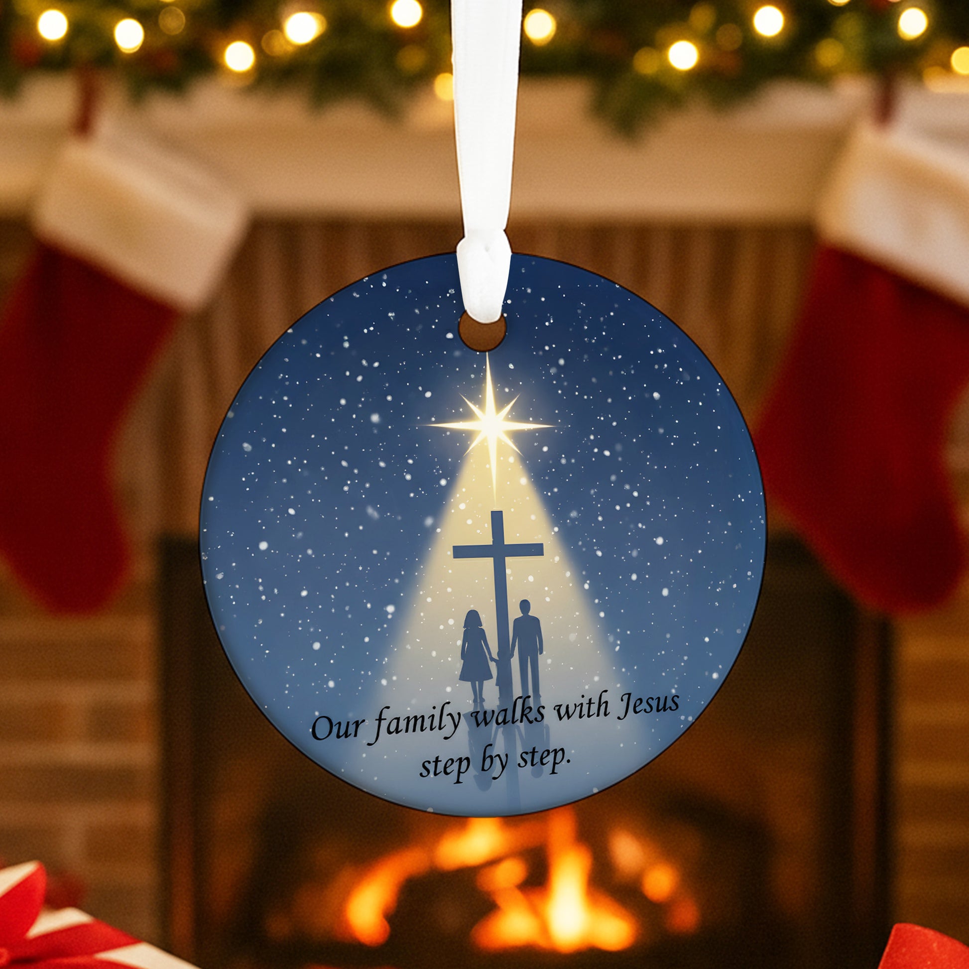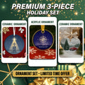 Christian Christmas Ornament Set | 3-Piece Ceramic & Acrylic Christmas Ornament Bundle | Religious Holiday Gift | Nativity & Faith Decor|ONMCB11