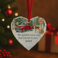 Religious Ornament Set of 2 – Christian Deer & Red Truck Heart Ornaments, Ceramic Christmas Gift for Couples and Family Tree|ONMCB33