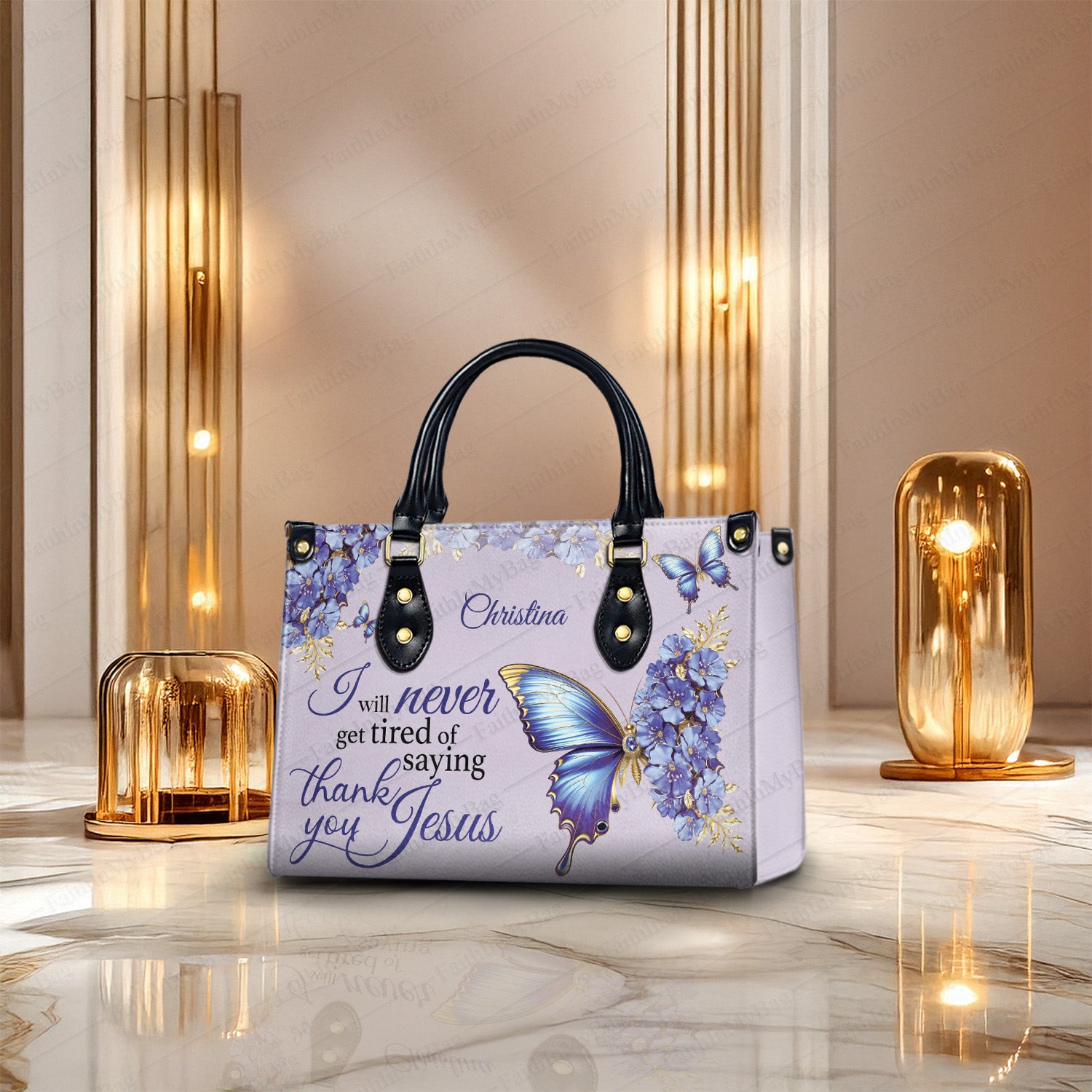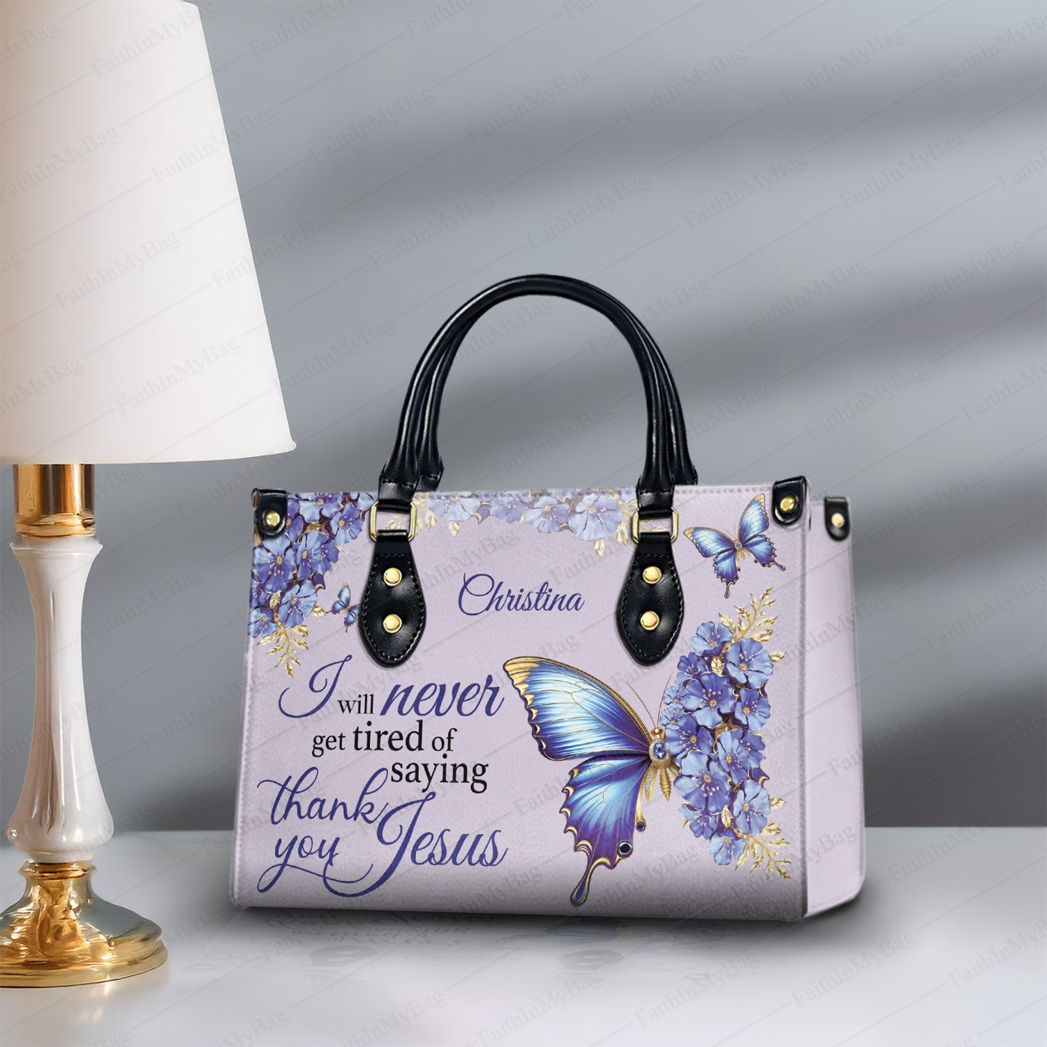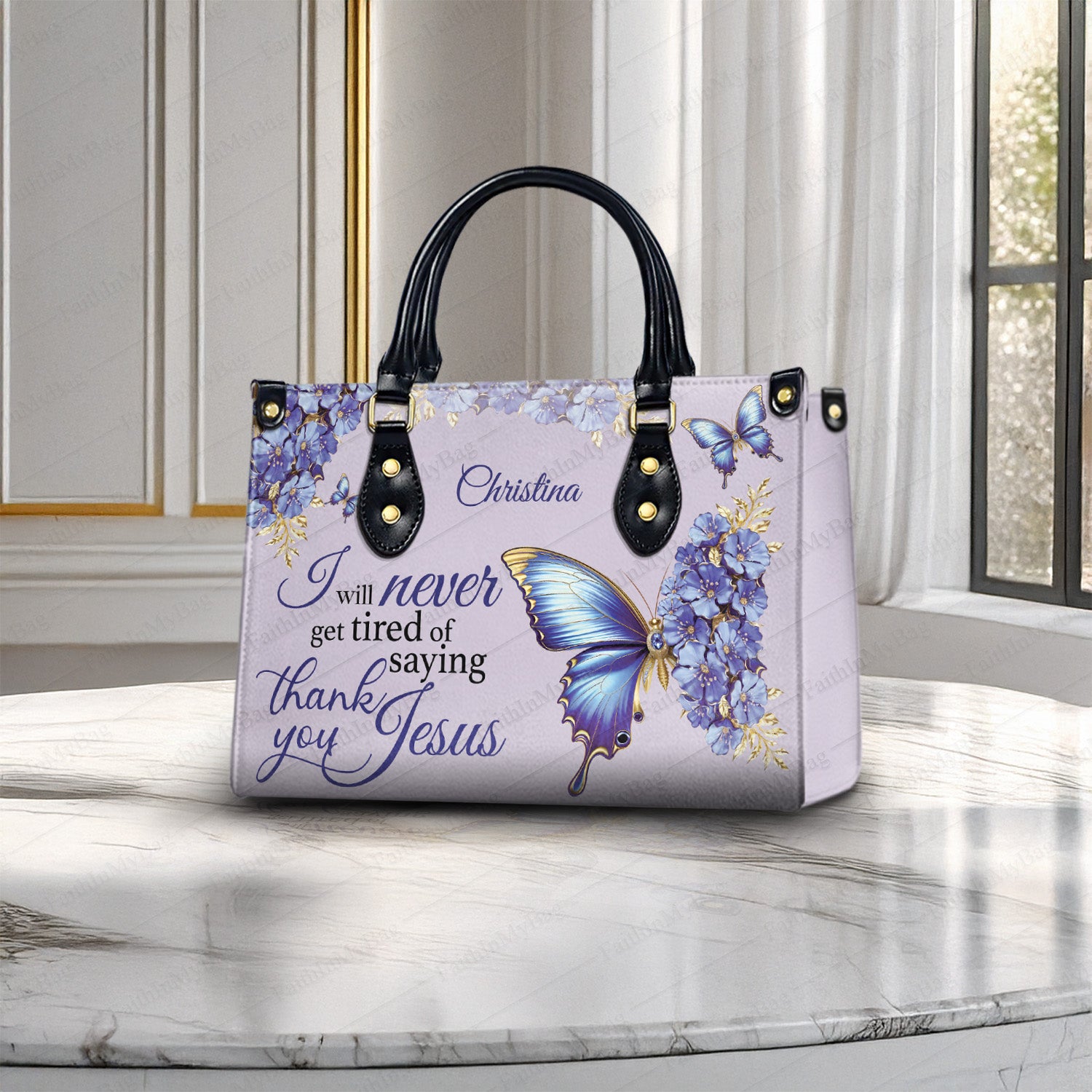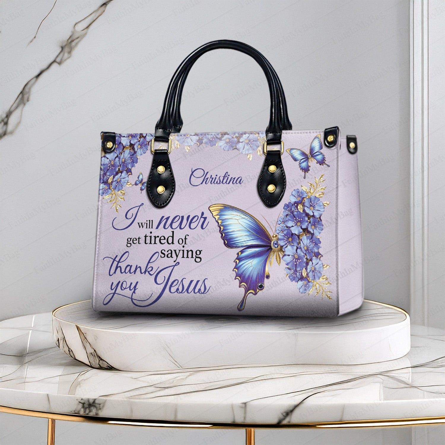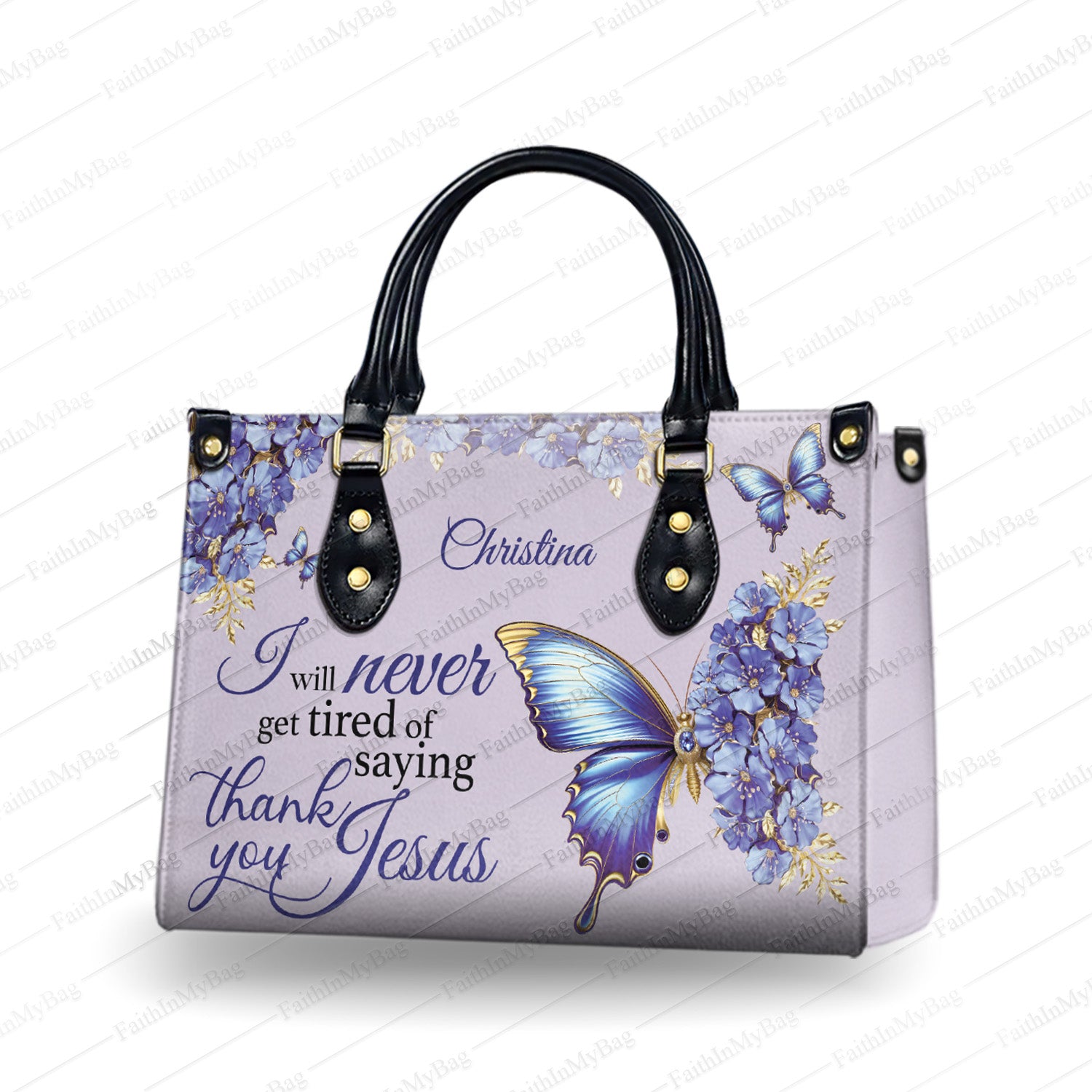 HB48-Christianartbag Handbags, Personalized Bags I will never get tired of saying thank you Jesus Leather, Gifts for Women