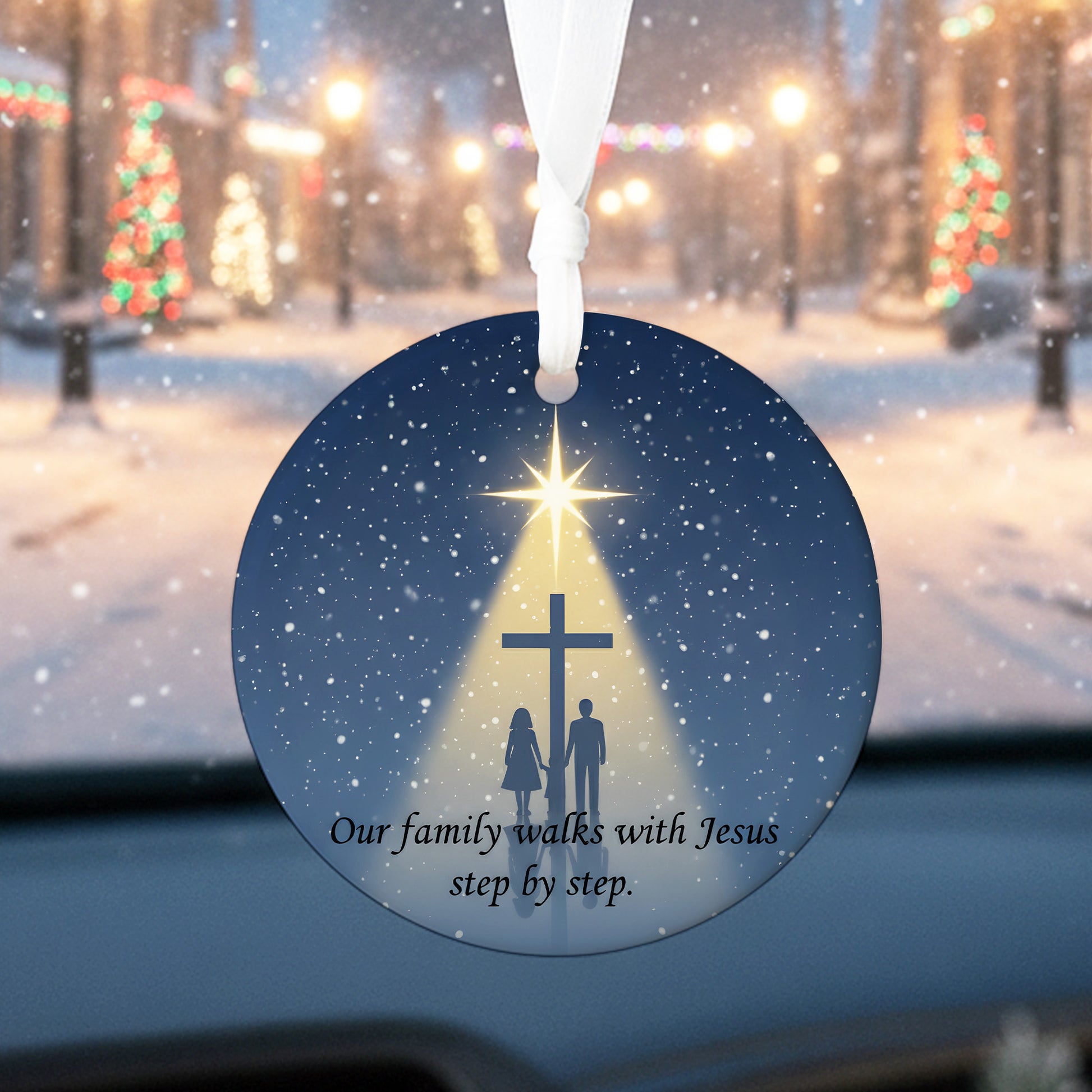 “Our Family Walks with Jesus” – symbol of guidance and togetherness.