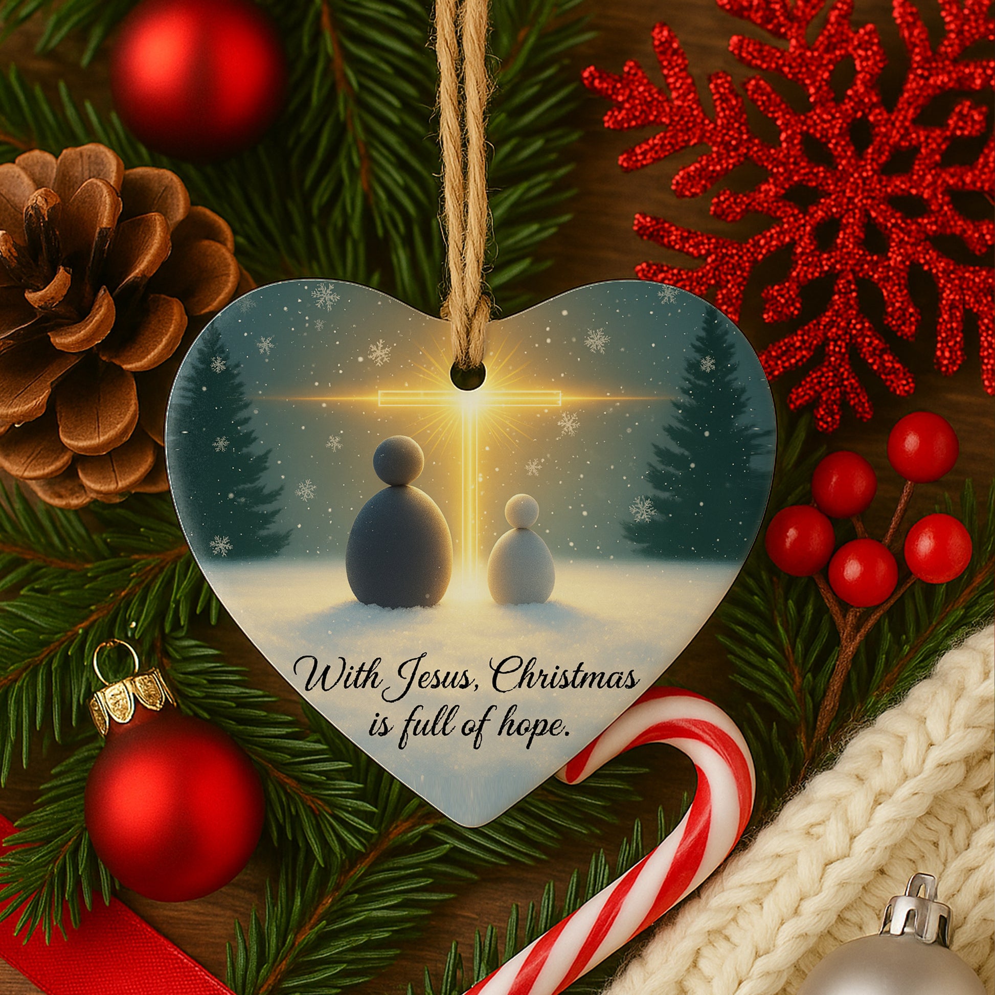Celebrate the season of love and hope with this 4-piece Christian Ceramic Ornament Set, each designed to remind you of faith, love, and devotion.