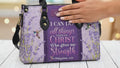 This beautifully designed handbag is made for strong women of faith who find strength in God. Featuring delicate lavender flowers and the empowering scripture, it is a symbol of grace, hope, and unwavering belief.