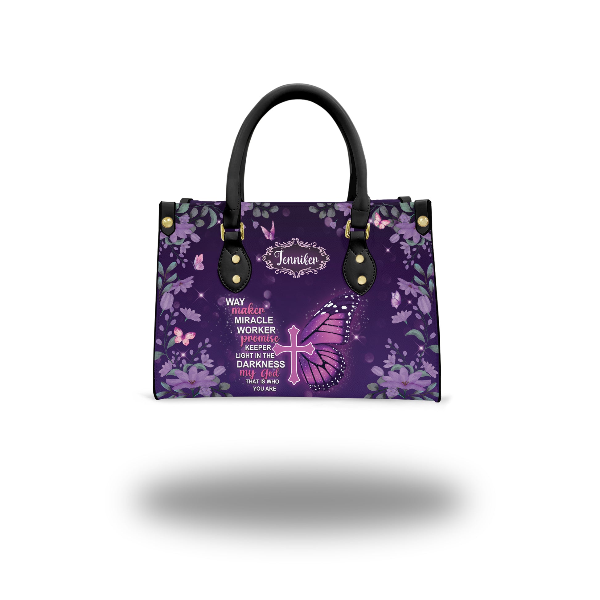 HB95 - Personalized Christian Handbag for Women - Way Maker Miracle Worker Butterfly Cross Faith Purse with Custom Name Gift