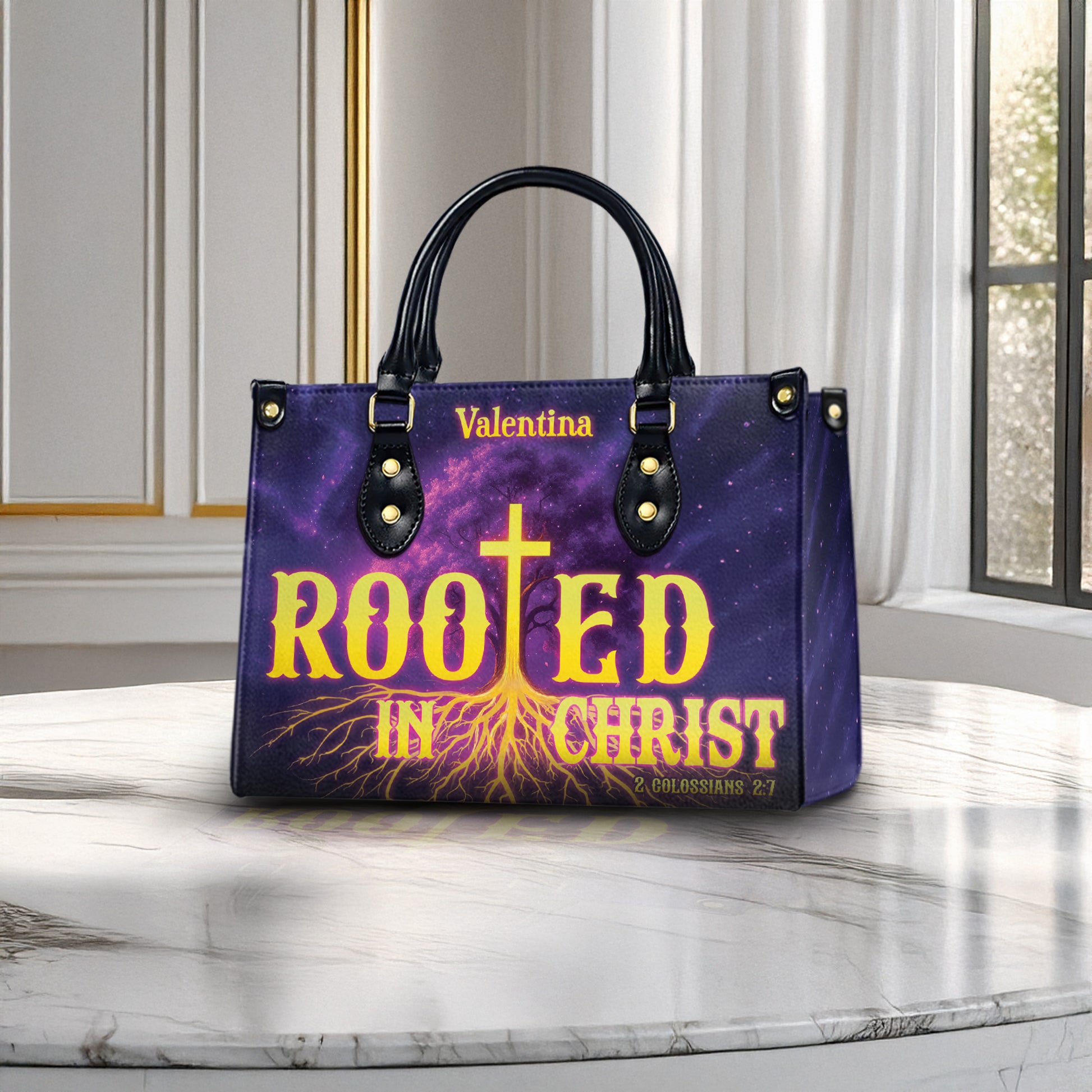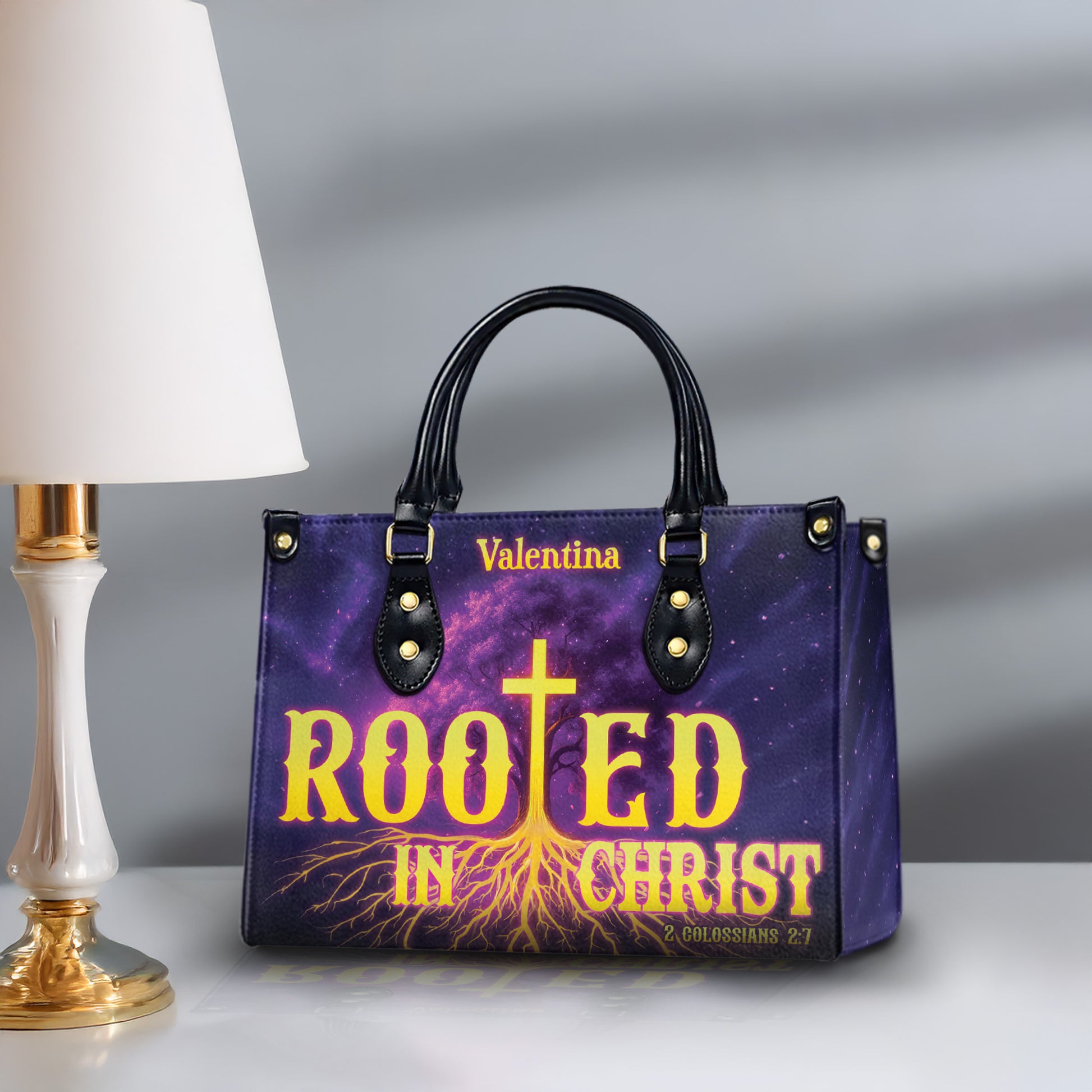 HB27-Personalized Christian Handbag - Rooted in Christ Purse for Women, Religious Faith Gift, Bible Verse Bag, Custom Name Tote