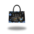 Carry bold faith and beauty with you every day. This stunning Christian handbag features glowing butterflies, deep blue florals, and the inspiring Bible verse from Joshua 1:9. Personalize it with your name to make it a powerful expression of strength, encouragement, and unwavering trust in God.