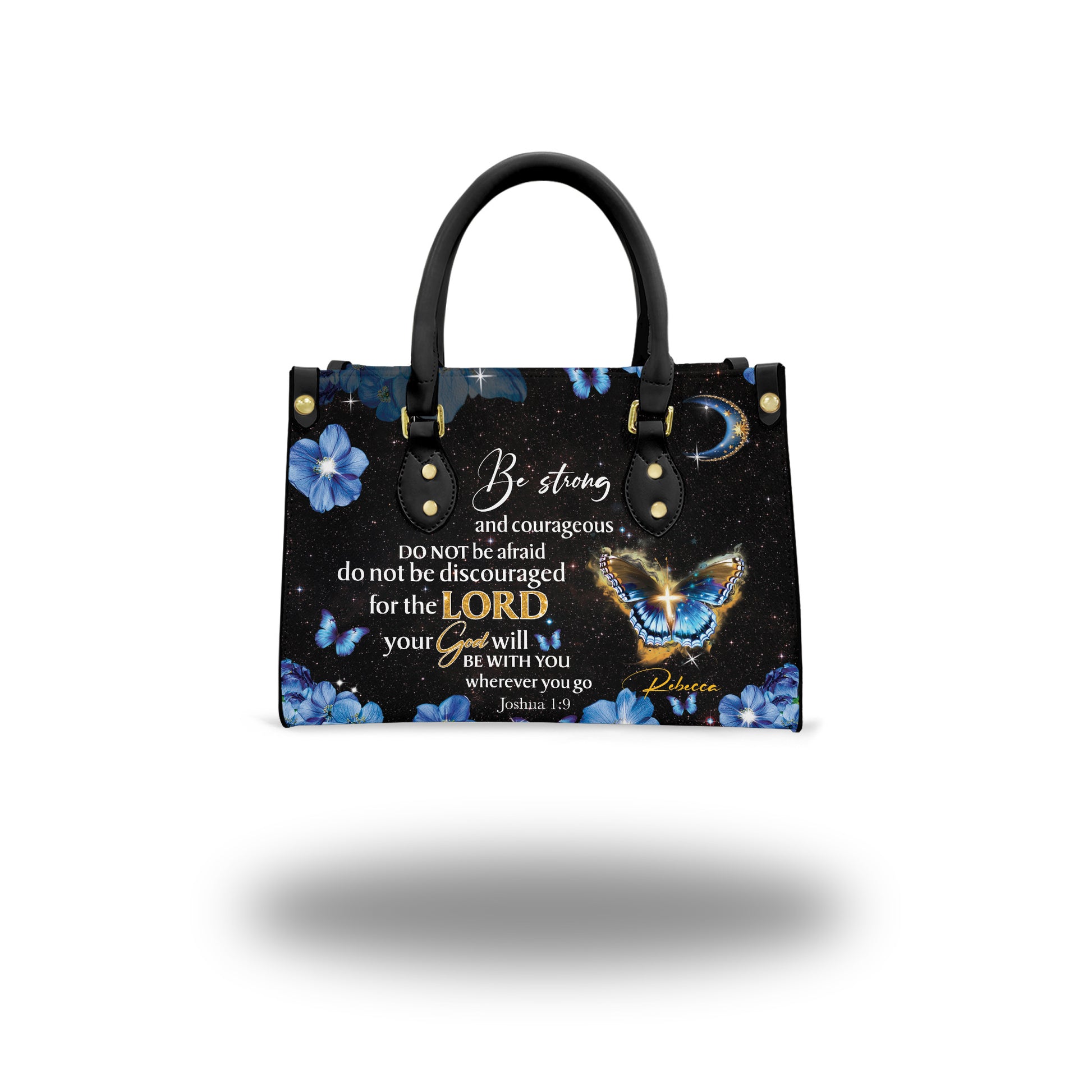 HB60-custom name christian handbag for women, butterfly and flower purse with joshua 1 9 verse, be strong faith scripture bag