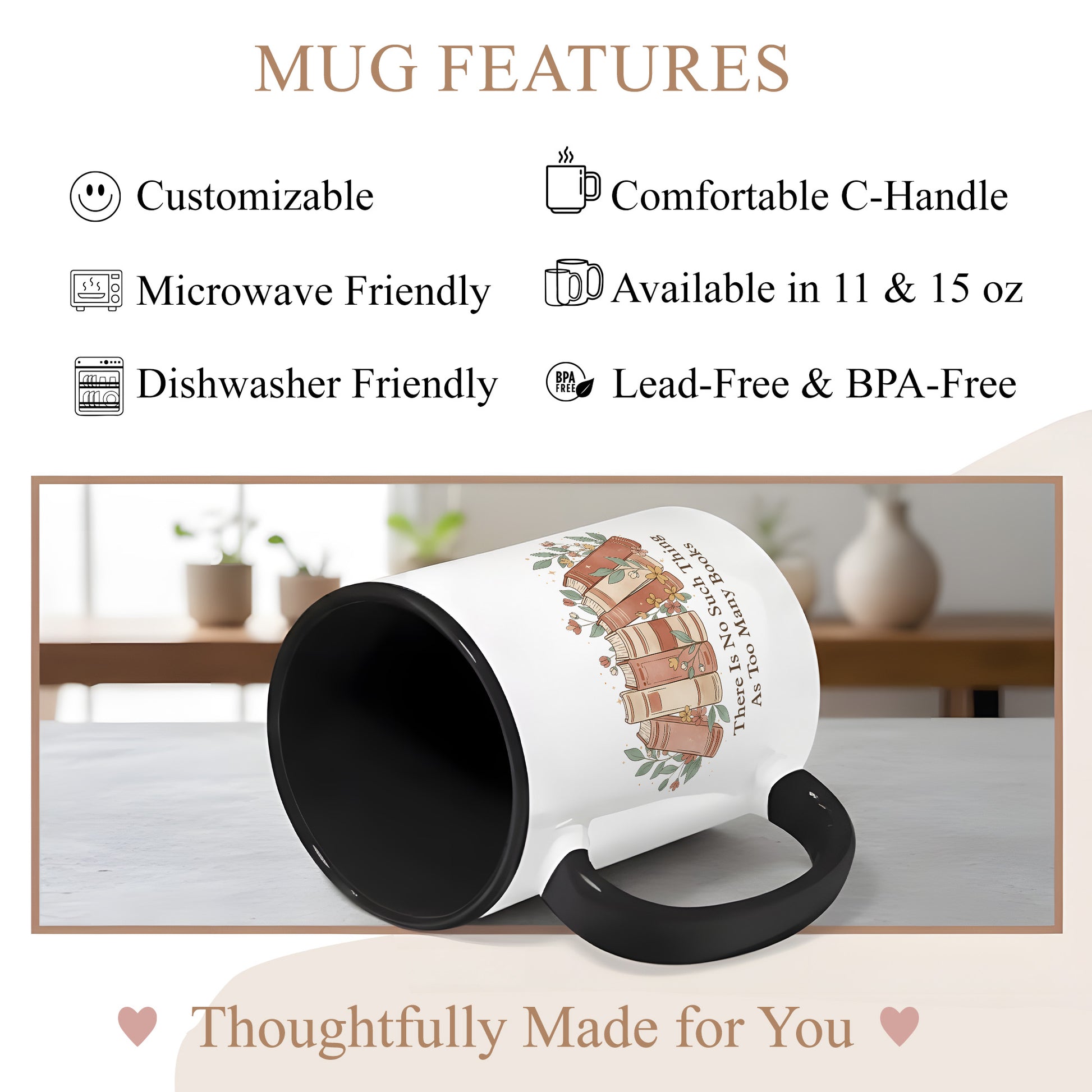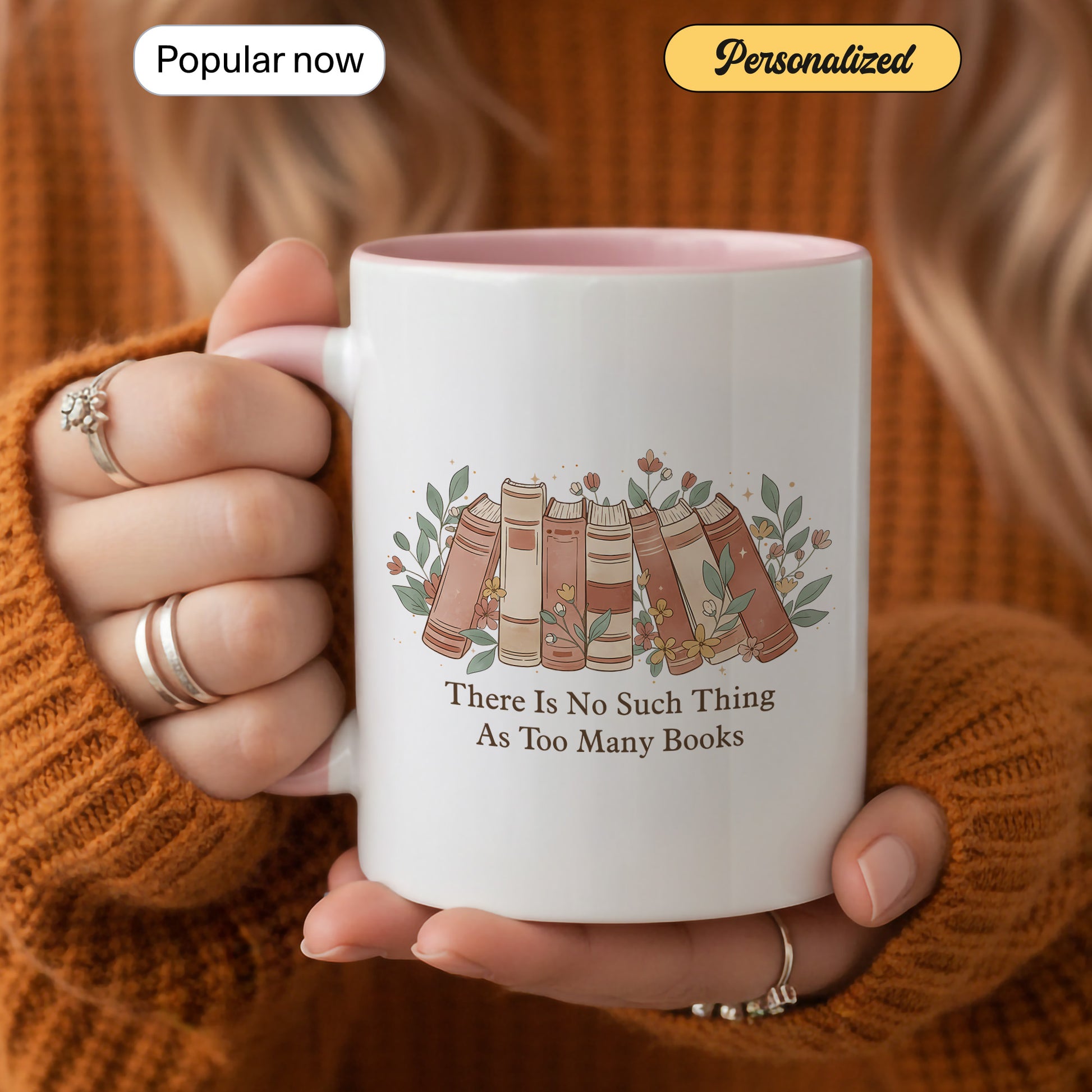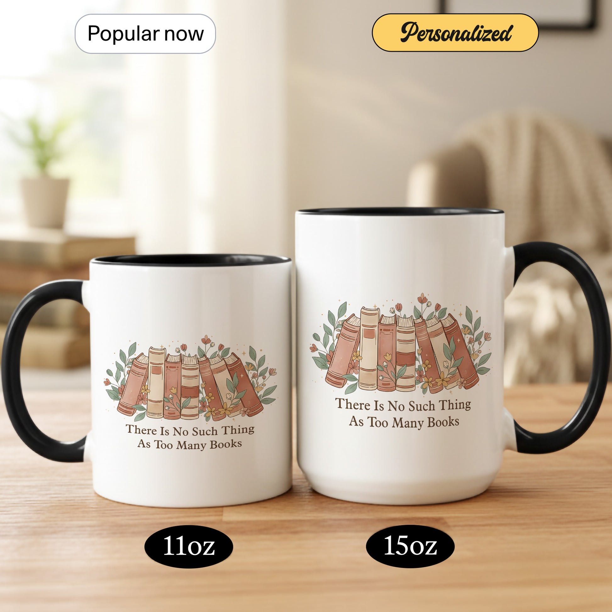 Bring a touch of cozy reading charm to your day with our “There Is No Such Thing As Too Many Books” Book Lover Mug. Designed for readers who can’t resist adding just one more book to their shelf, this mug is the perfect way to enjoy your favorite drink during quiet reading moments. With its soft vintage book stack and floral artwork, it makes every sip feel warm, relaxing, and bookish.