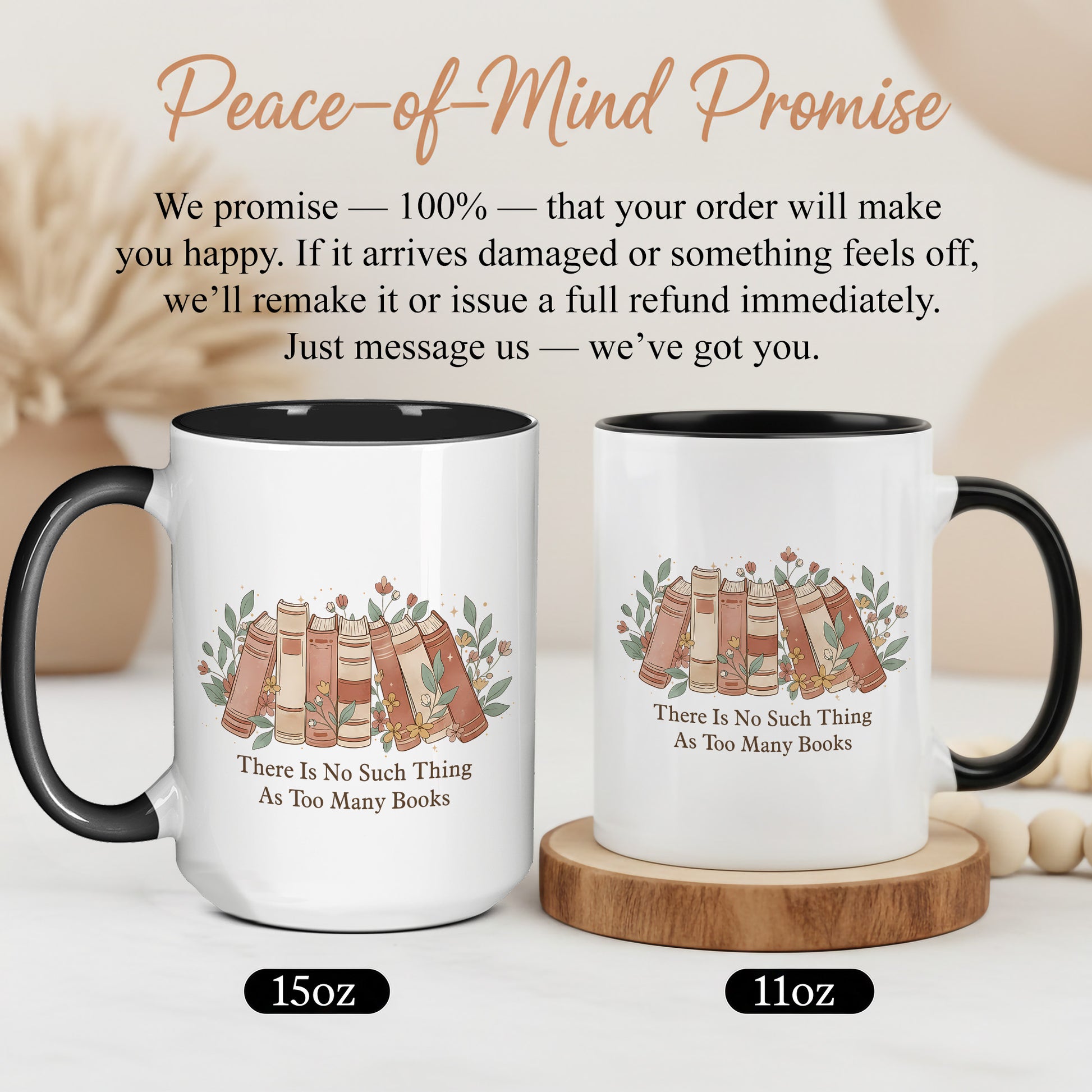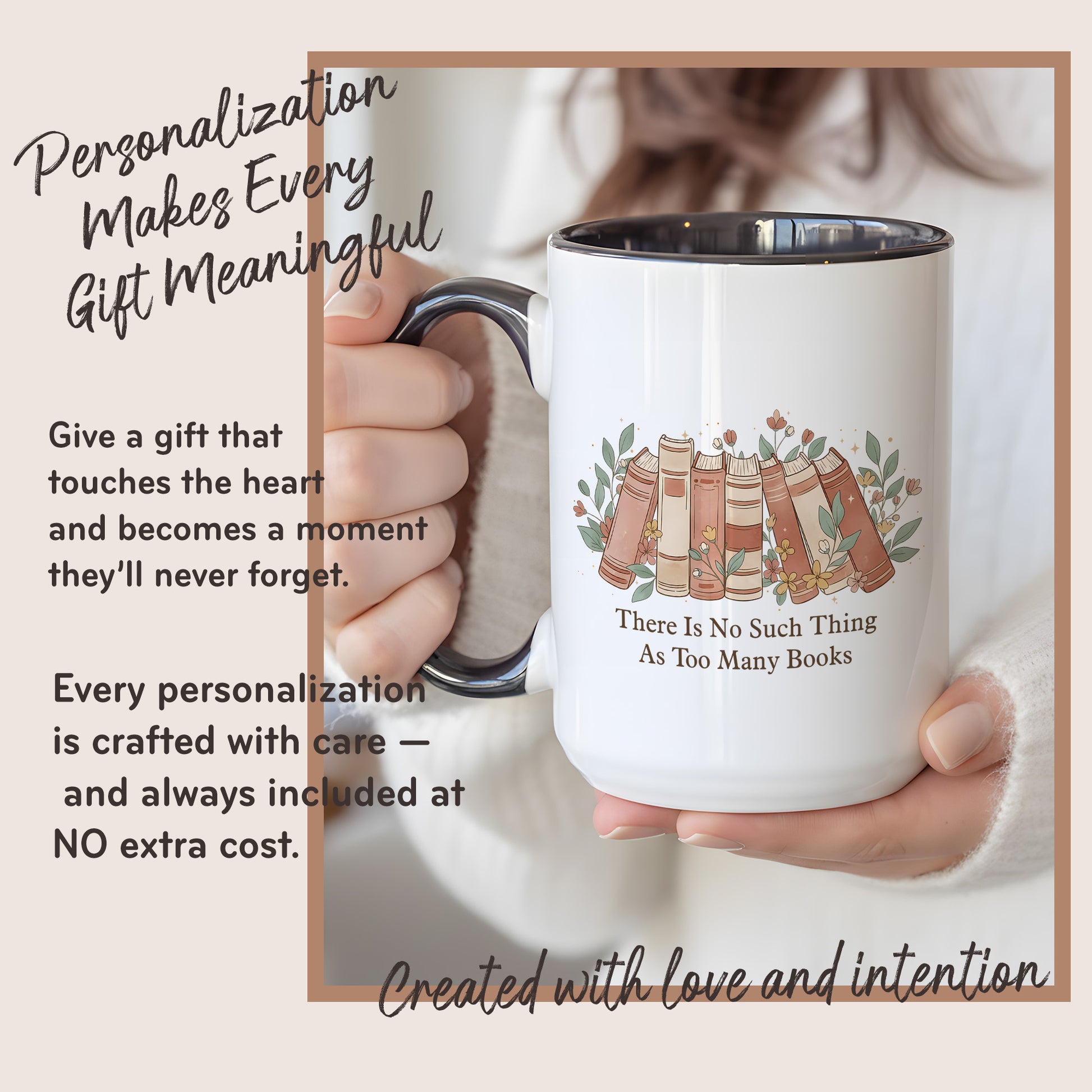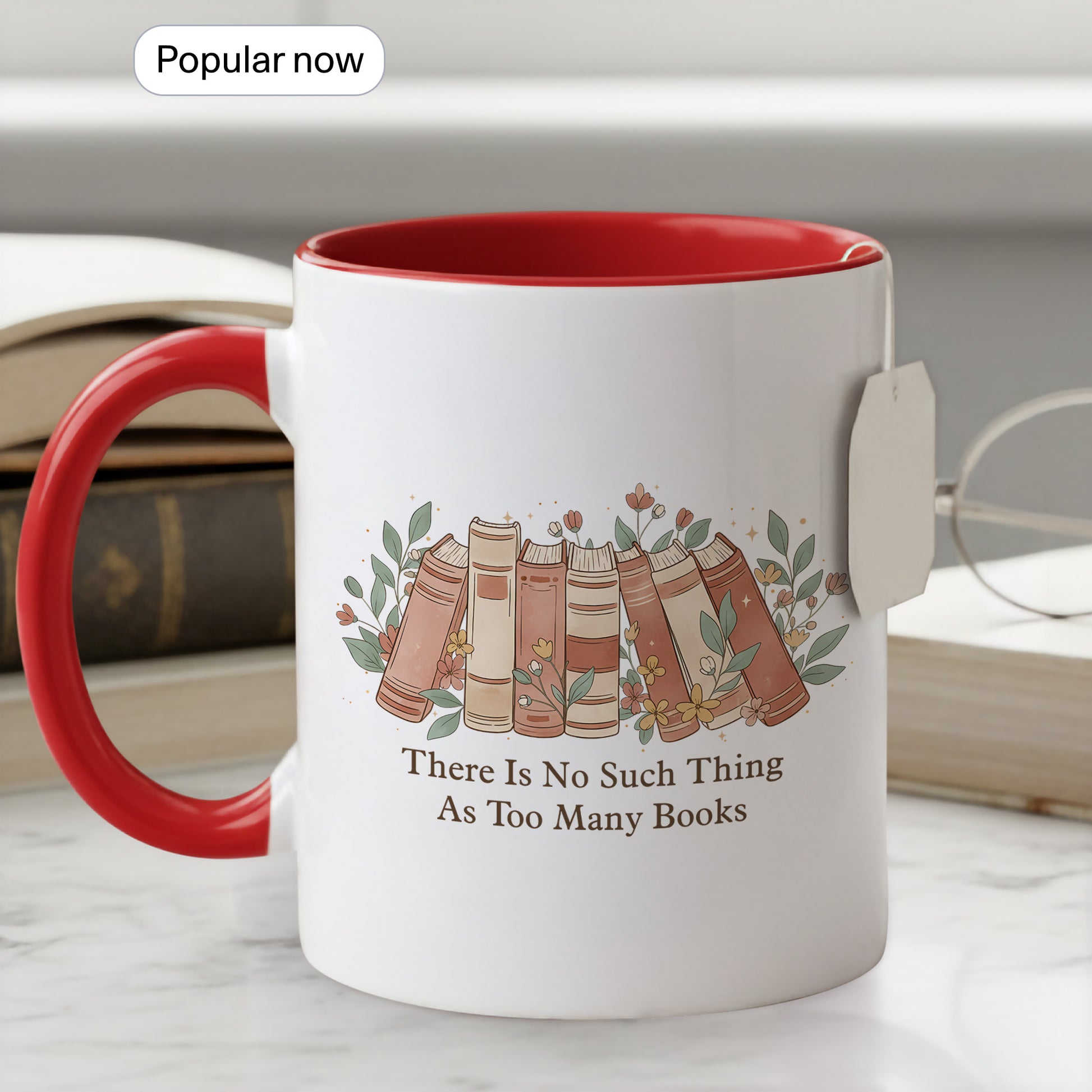 Bring a touch of cozy reading charm to your day with our “There Is No Such Thing As Too Many Books” Book Lover Mug. Designed for readers who can’t resist adding just one more book to their shelf, this mug is the perfect way to enjoy your favorite drink during quiet reading moments. With its soft vintage book stack and floral artwork, it makes every sip feel warm, relaxing, and bookish.