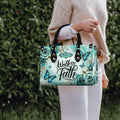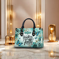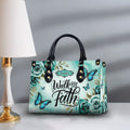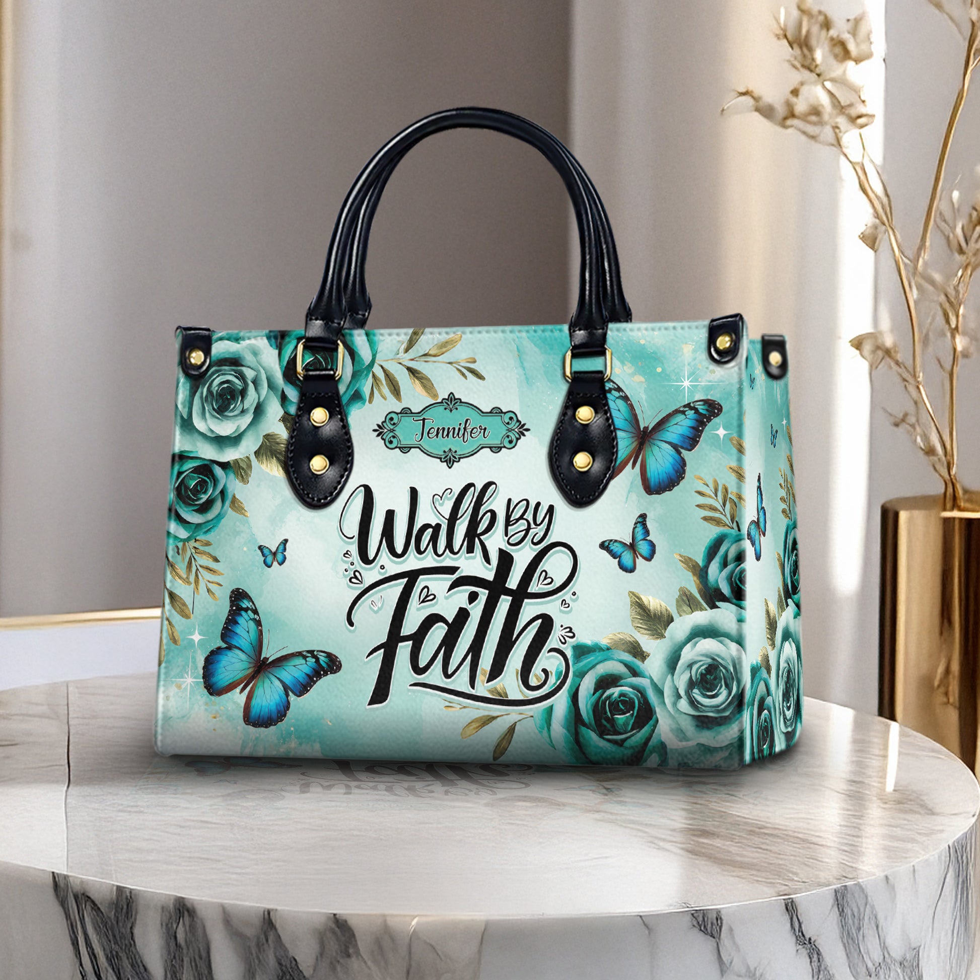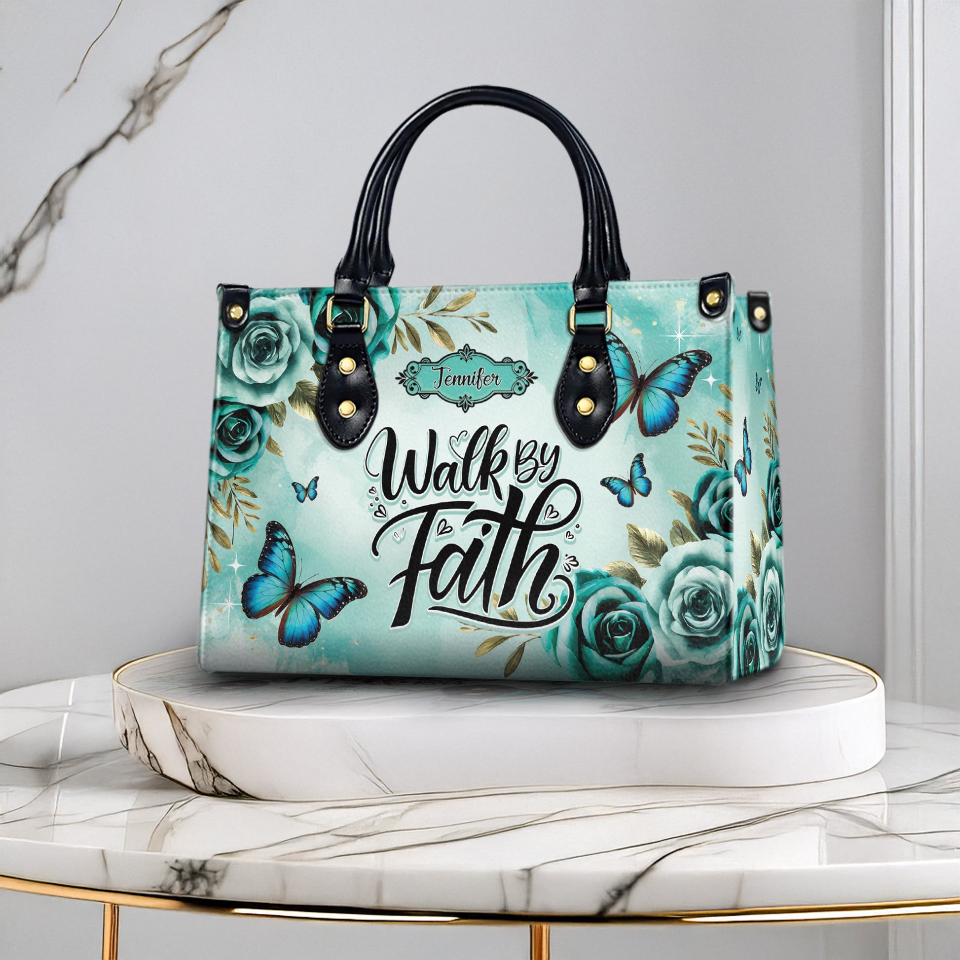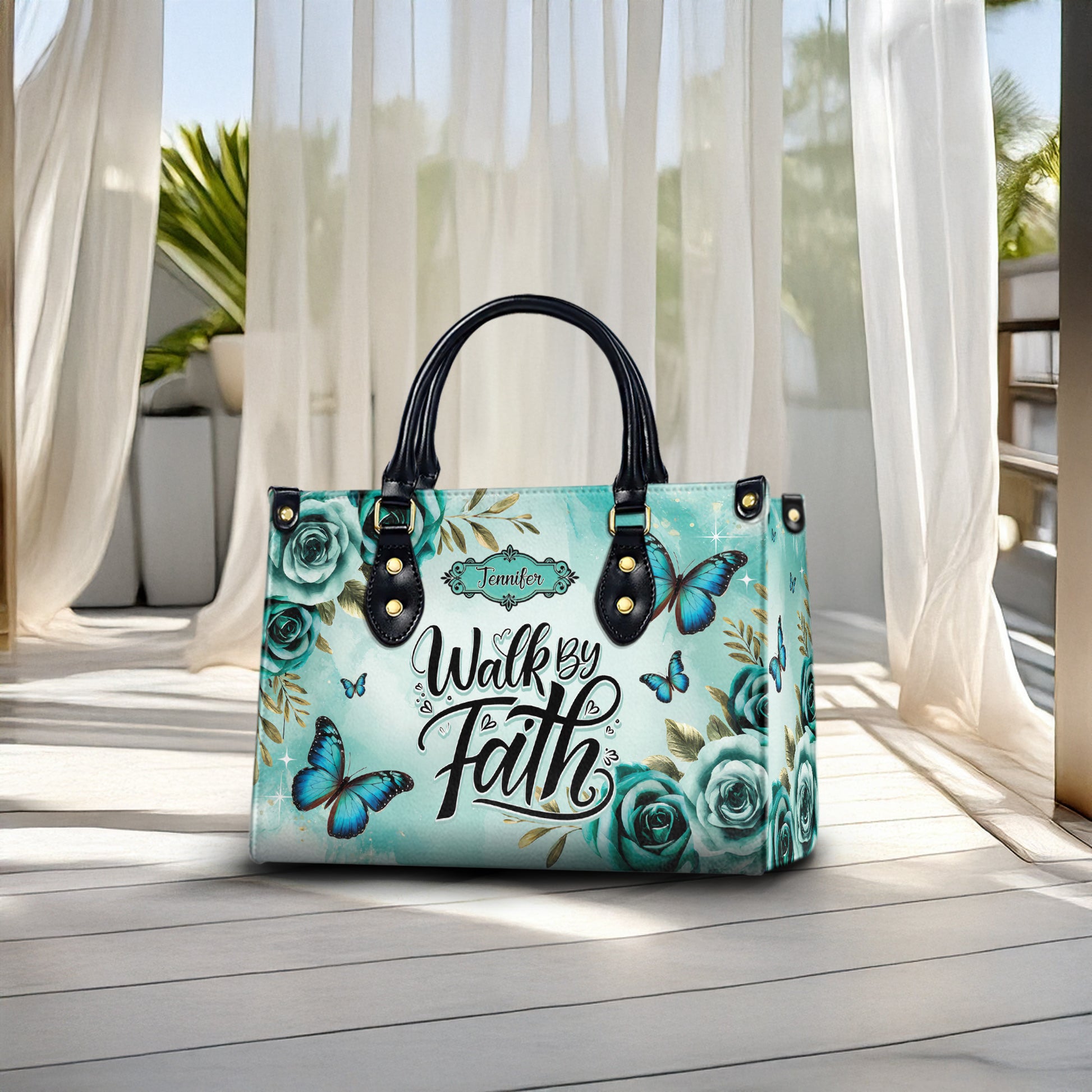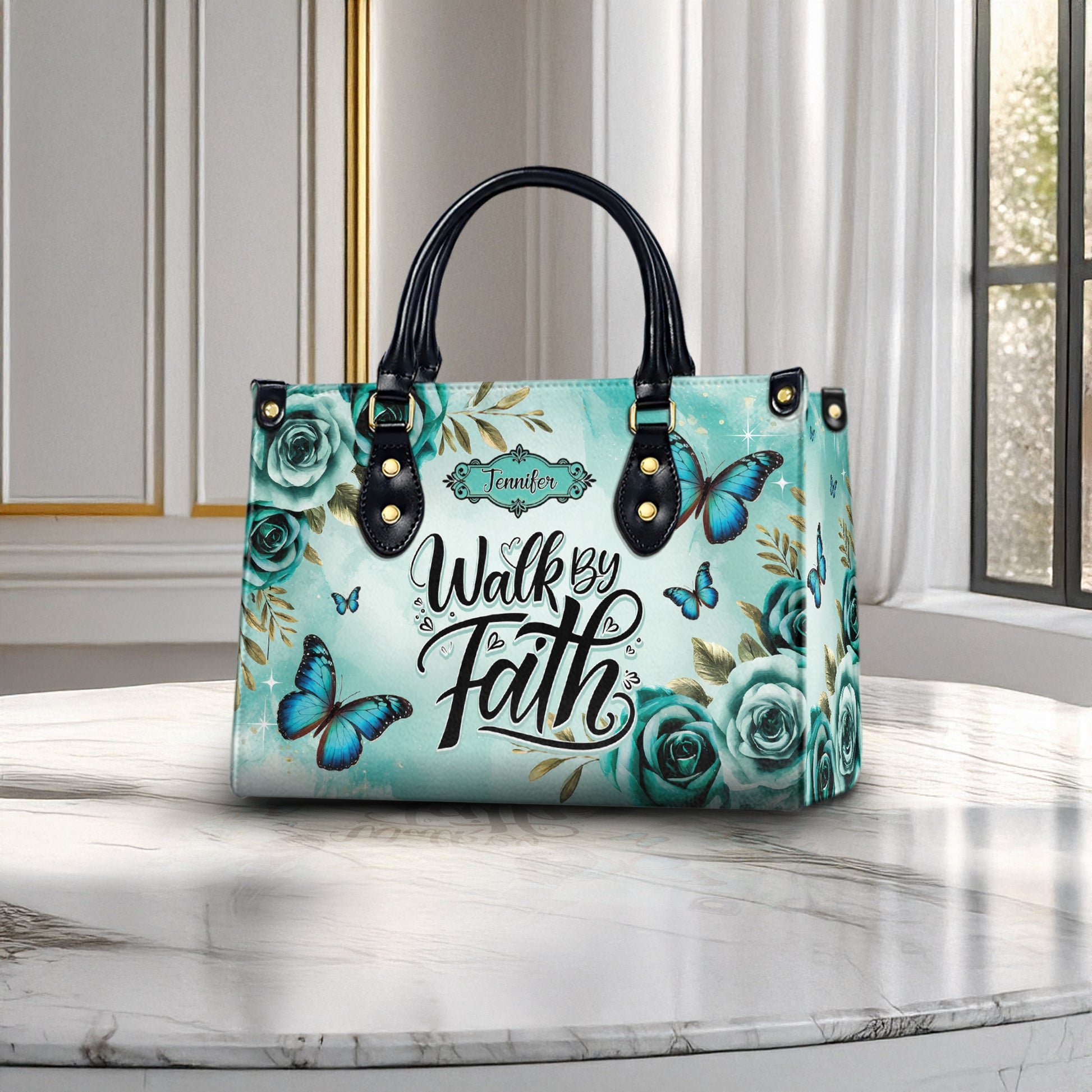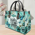 HB22-personalized christian handbag – walk by faith butterfly purse – teal floral religious gift for women
