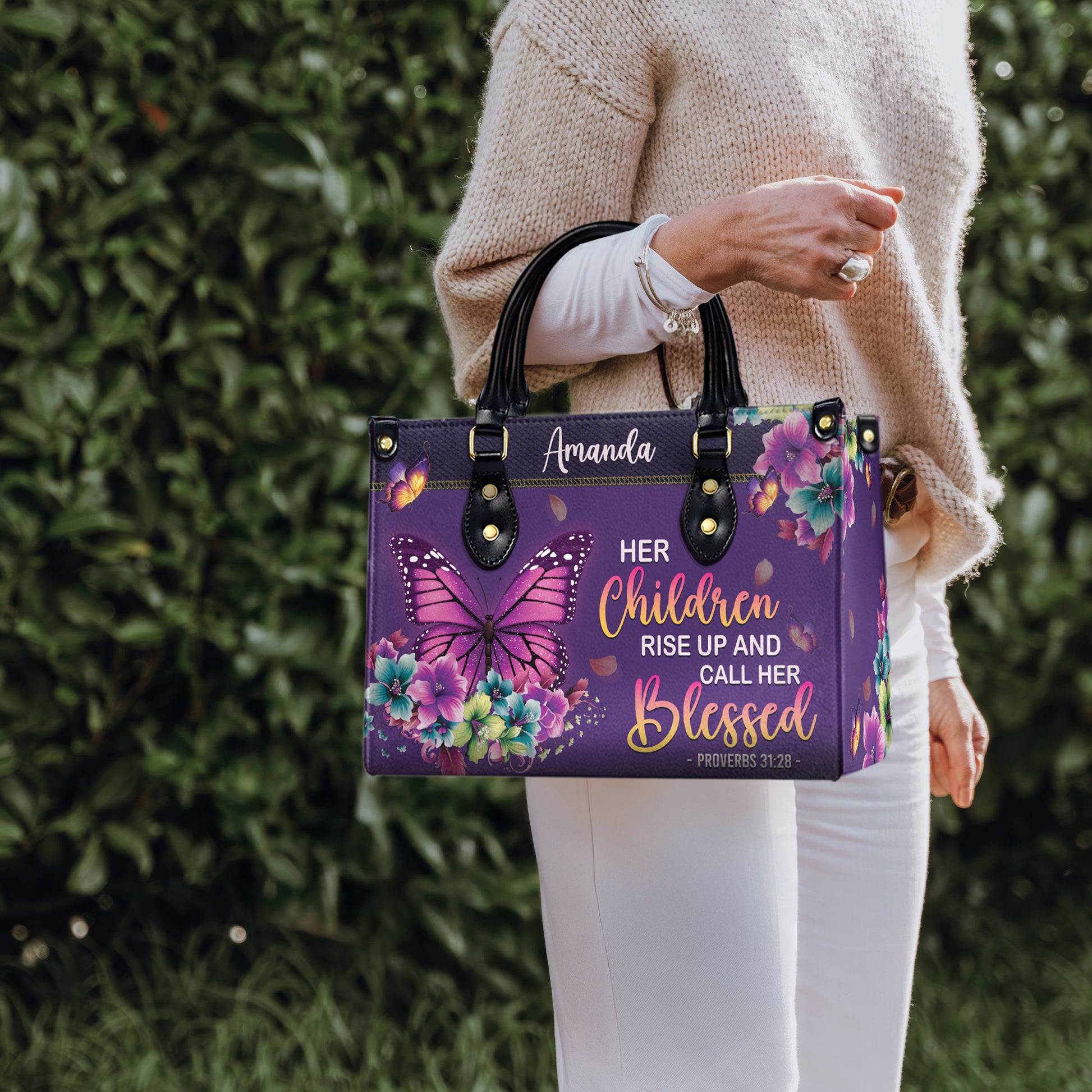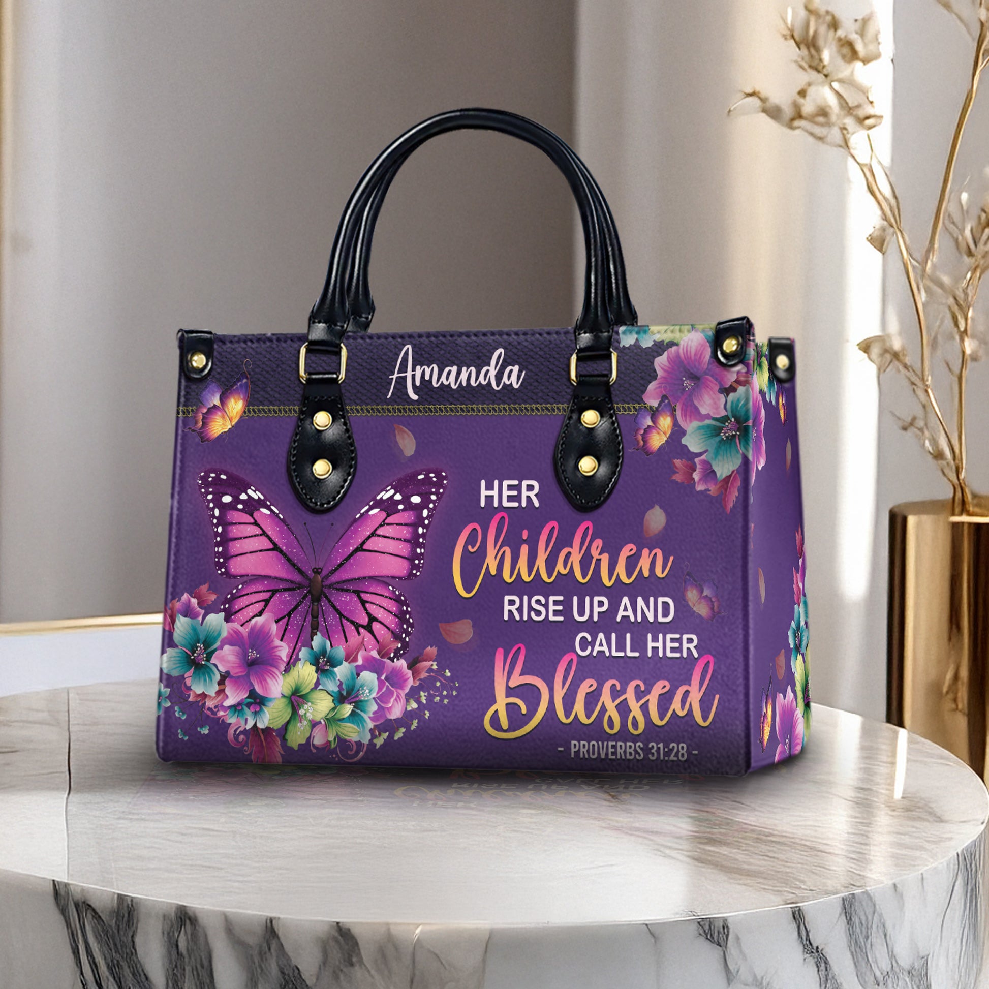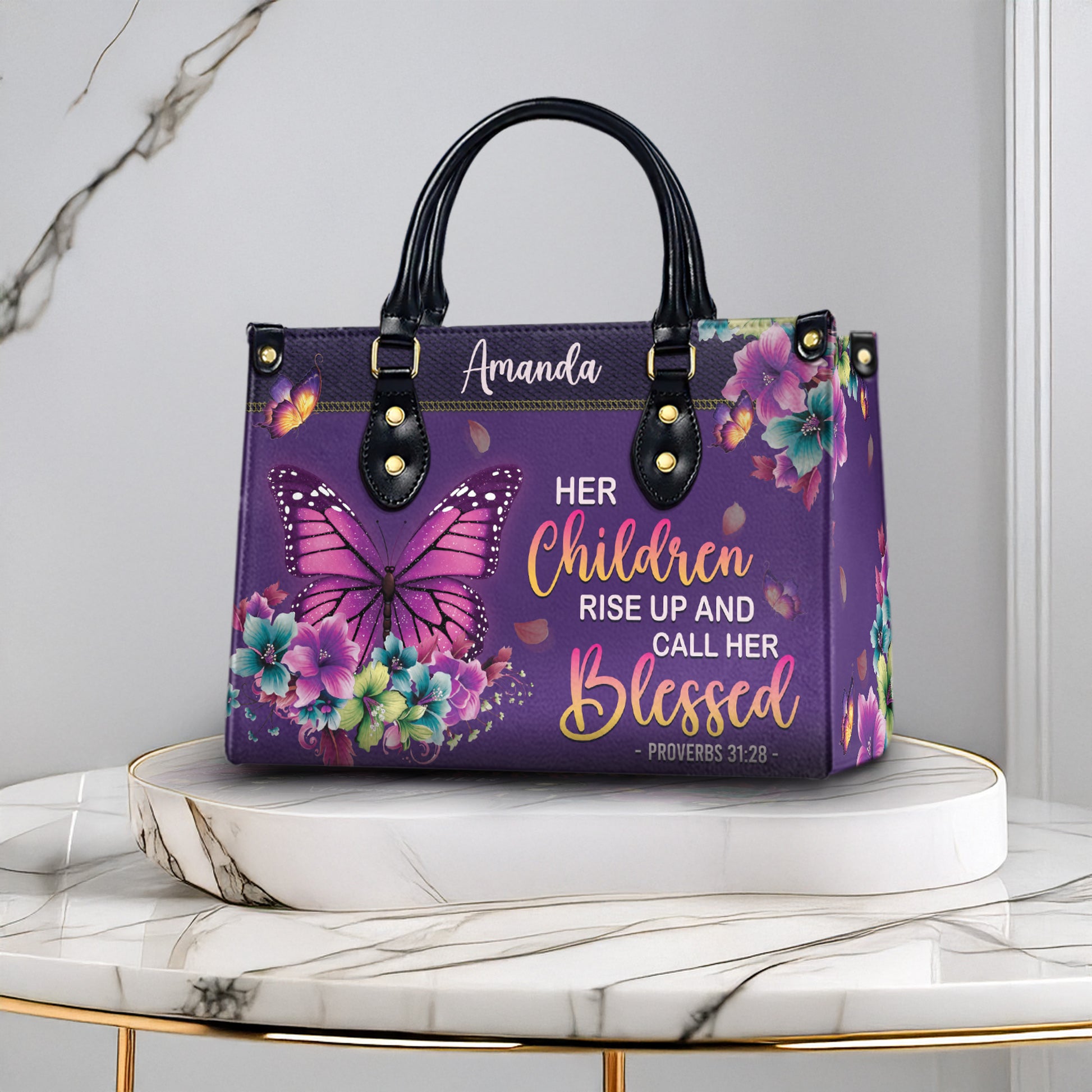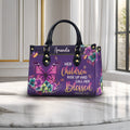 HB15-Custom Name Christian Leather Handbag โ Personalized Religious Handbag for Women, Christian Cross & Butterfly Bag, Faith-Based Gift for Her
