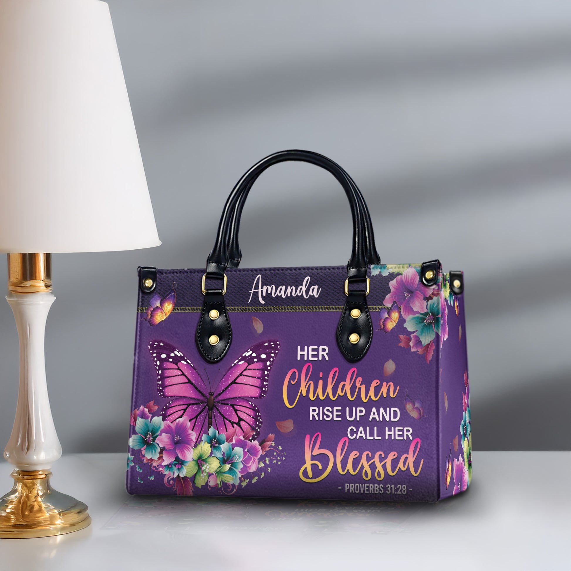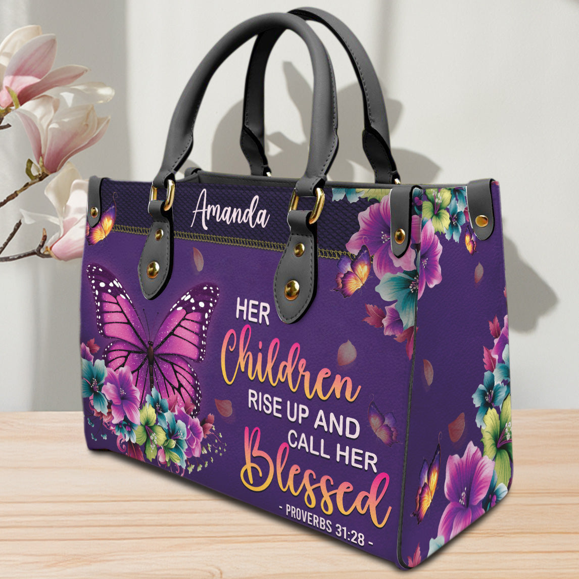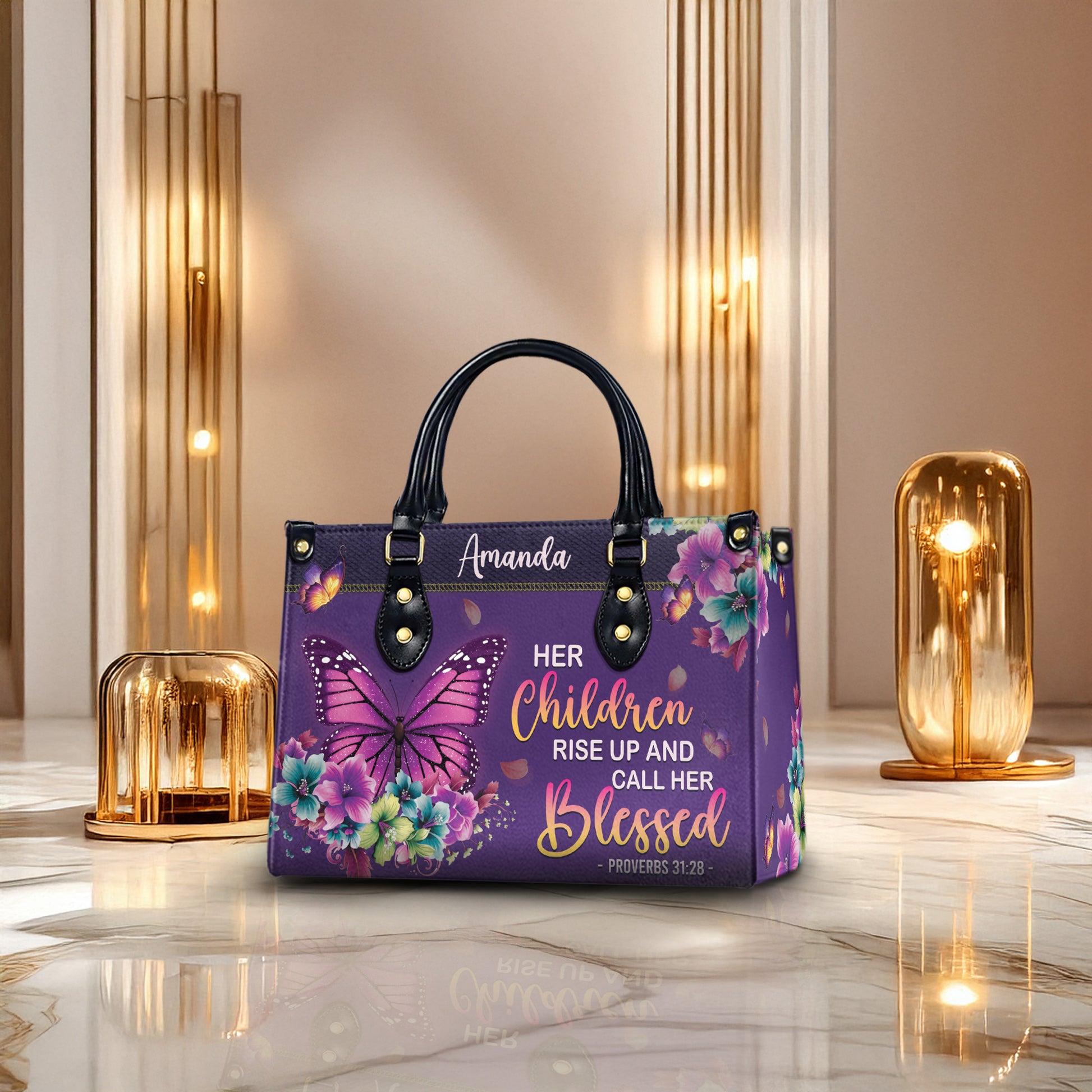 HB15-Custom Name Christian Leather Handbag โ Personalized Religious Handbag for Women, Christian Cross & Butterfly Bag, Faith-Based Gift for Her