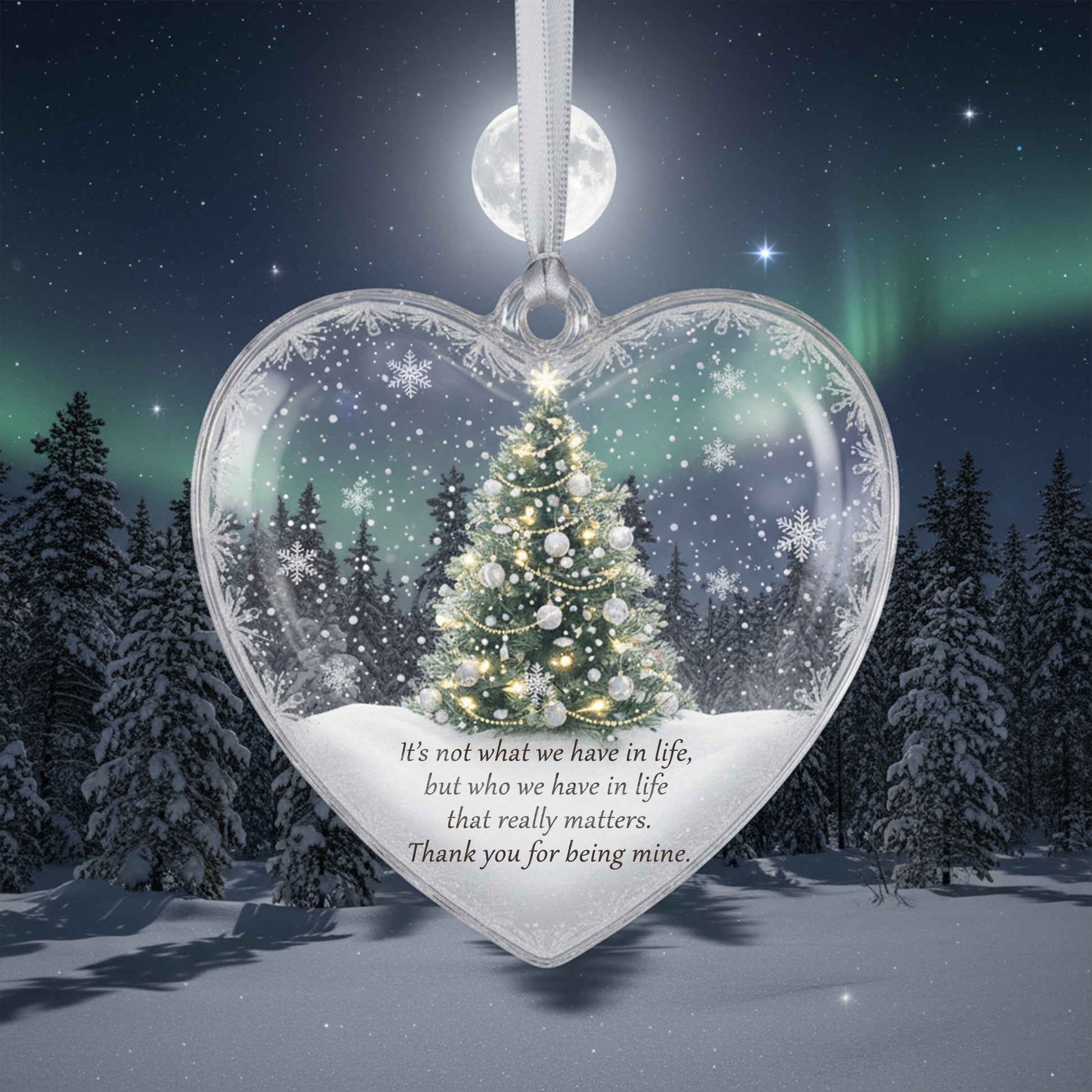 Christmas Tree Glass Ornament, Heart Ornament Gift, Personalized Glass Keepsake, Thank You For Being Mine Ornament, Holiday Decoration|ONM95