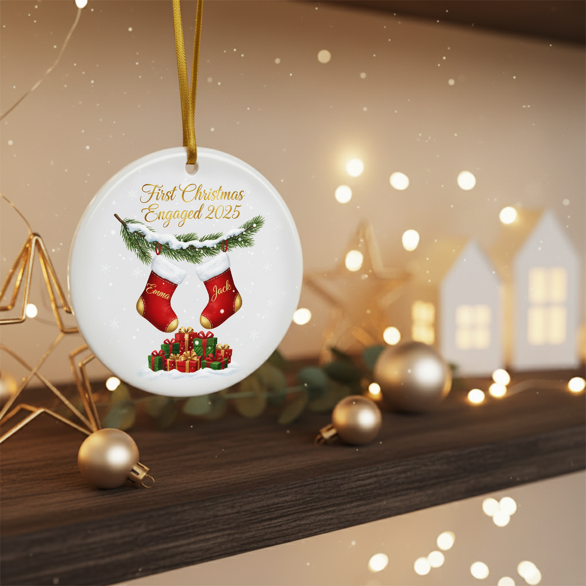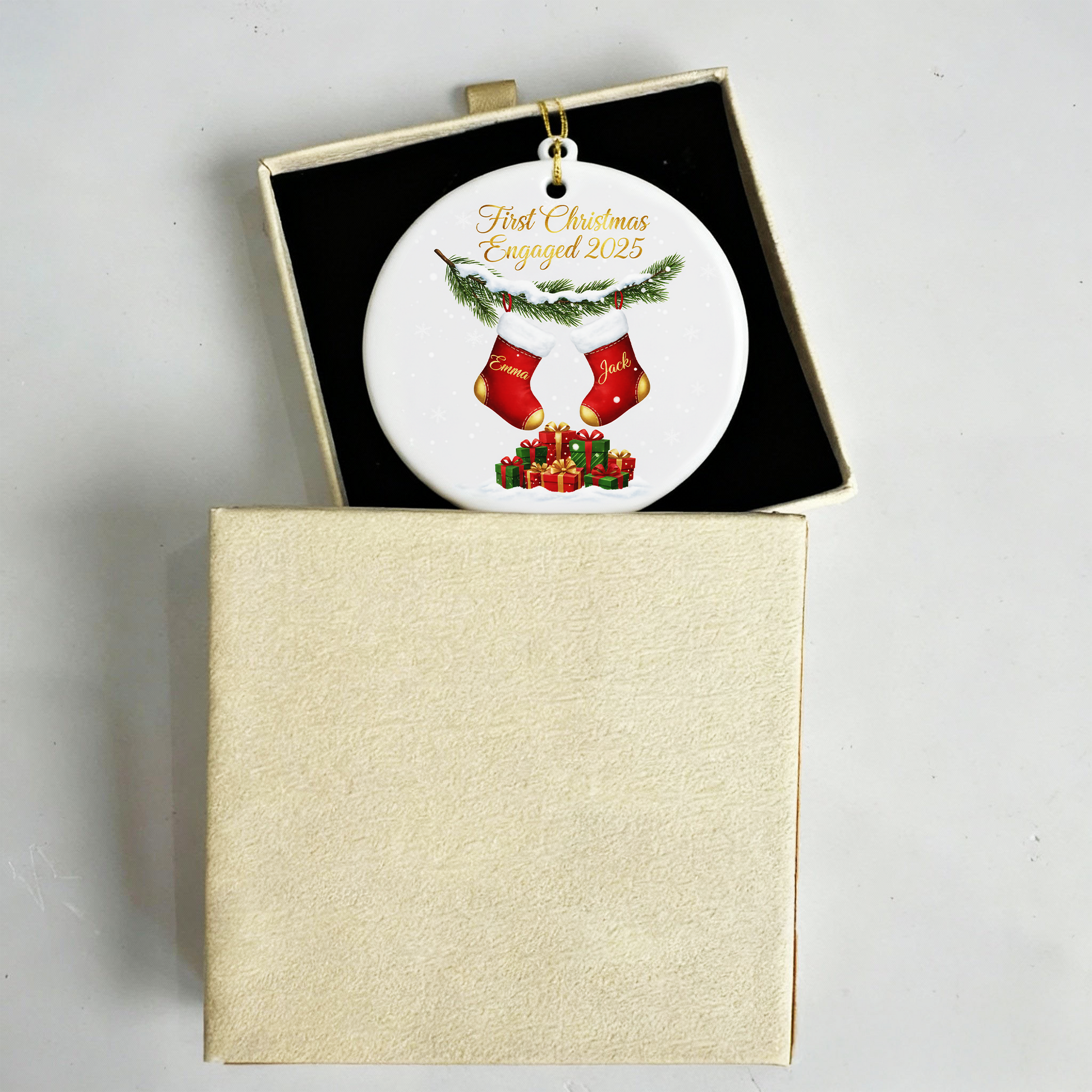 First Christmas Engaged Ornament 2025, Personalized Couple Ornament, Engagement Gift for Couple, Custom Name Christmas Ornament | Ornament125