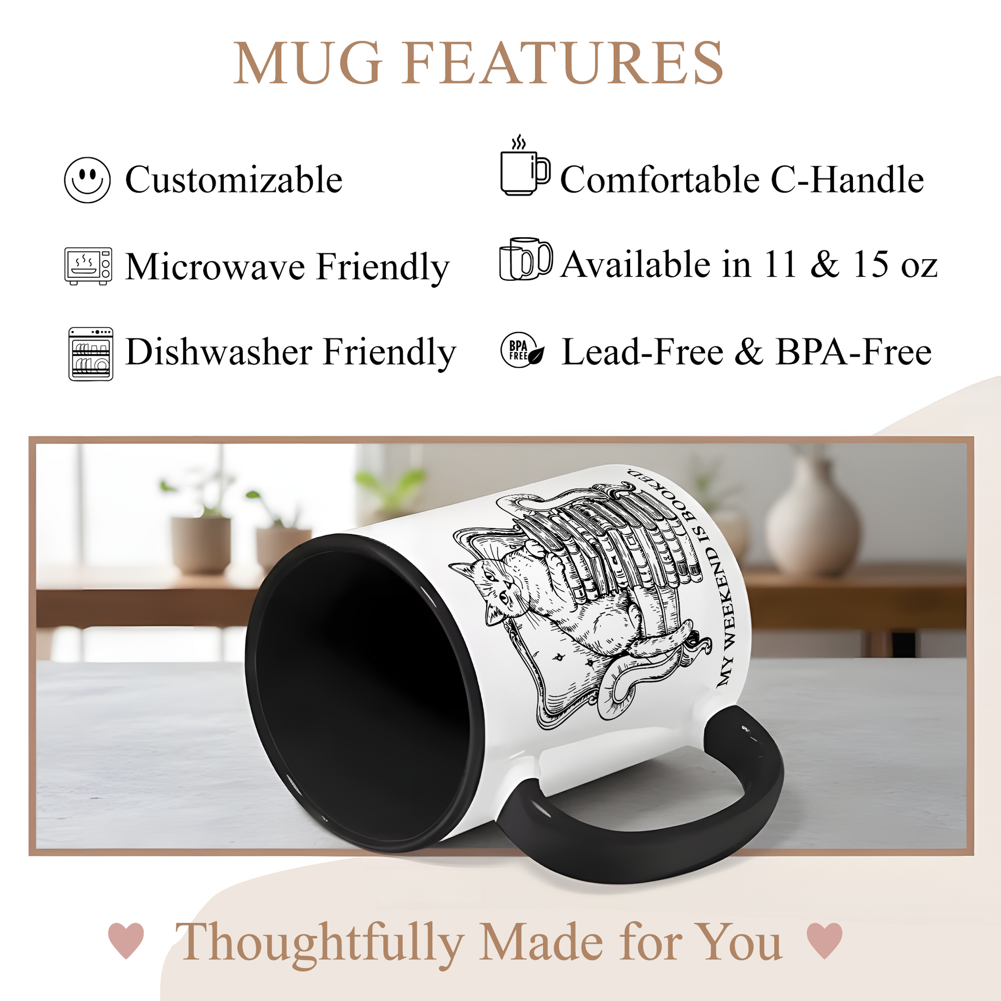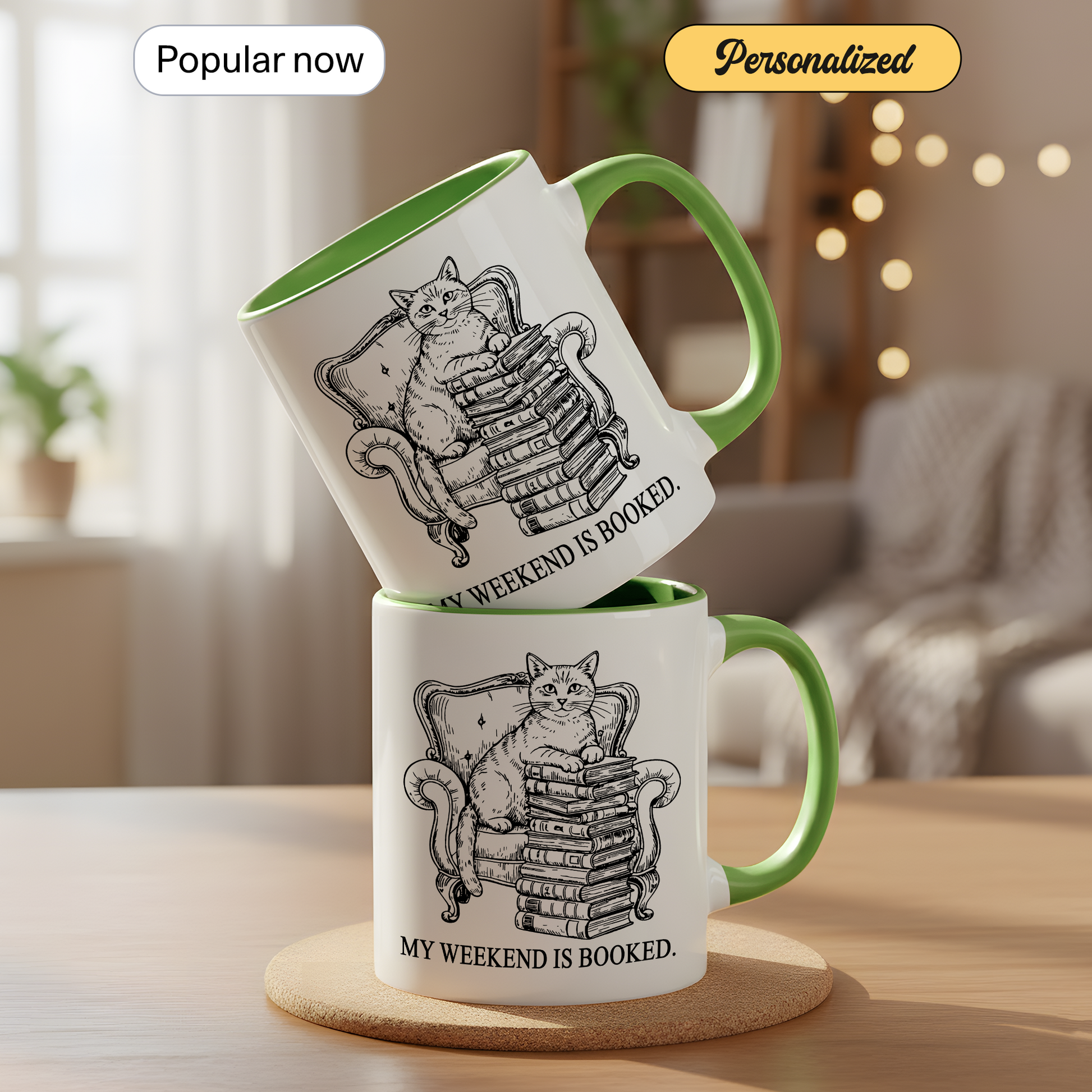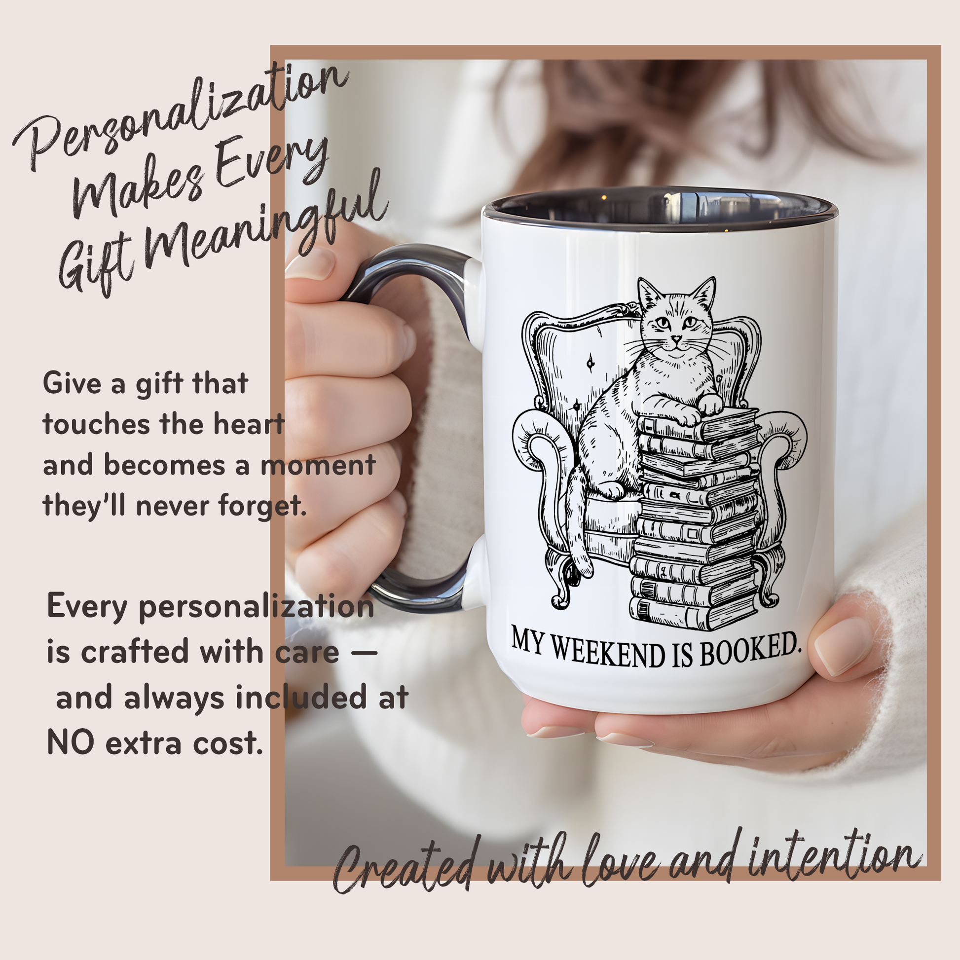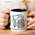 Funny Cat Reading Mug – “My Weekend Is Booked” Coffee Cup | Cute Book Lover Gift for Readers, Bookworms & Cat Owners| Mug 135