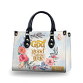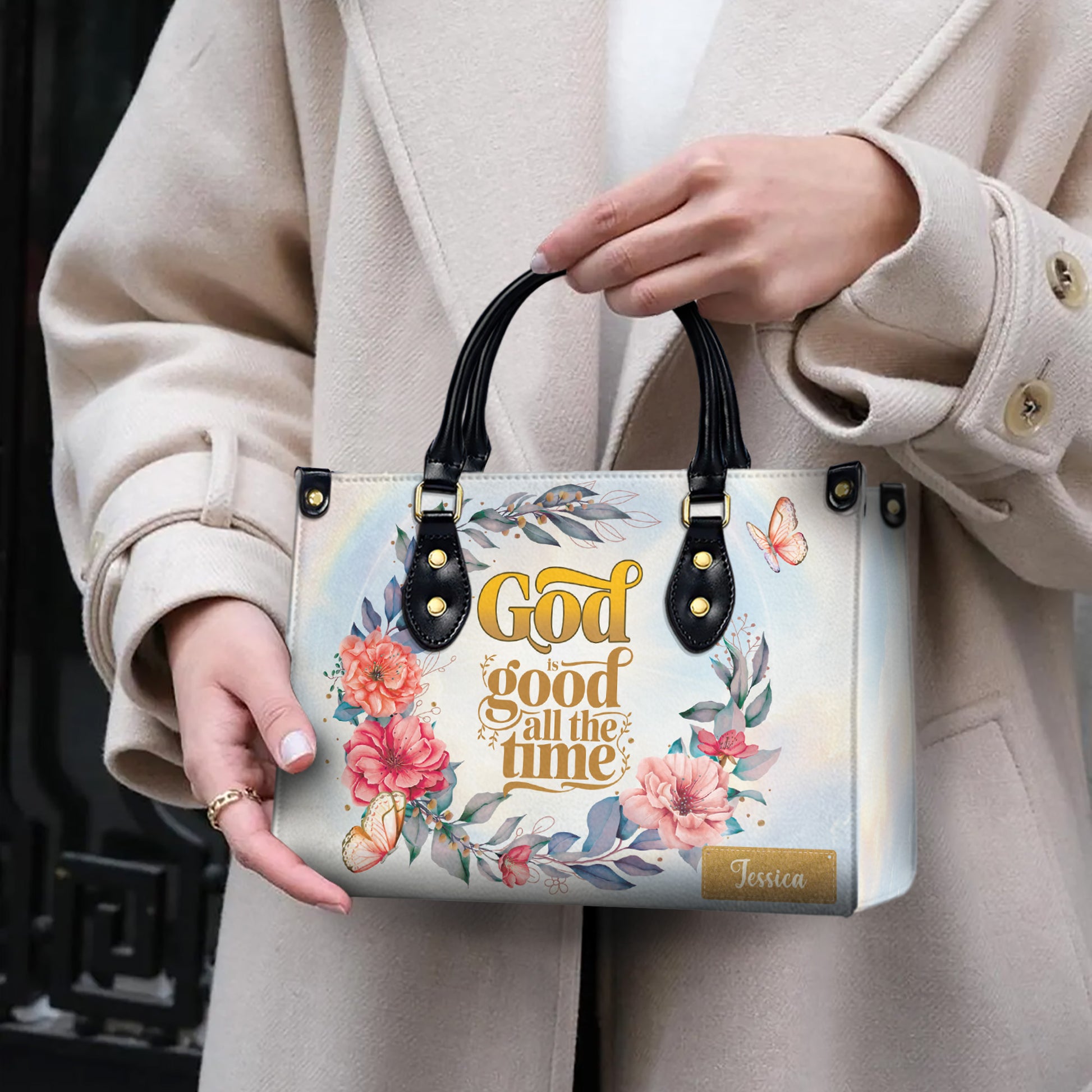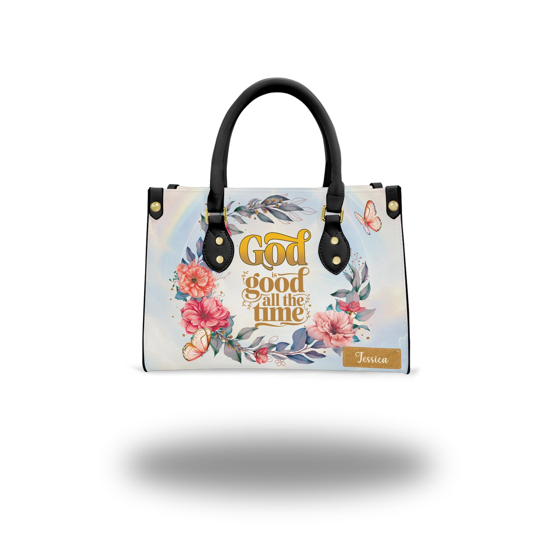HB70-God Is Good All The Time Floral Handbag – Christian Custom Name Tote Bag, Bible Verse Purse, Religious Gift for Women