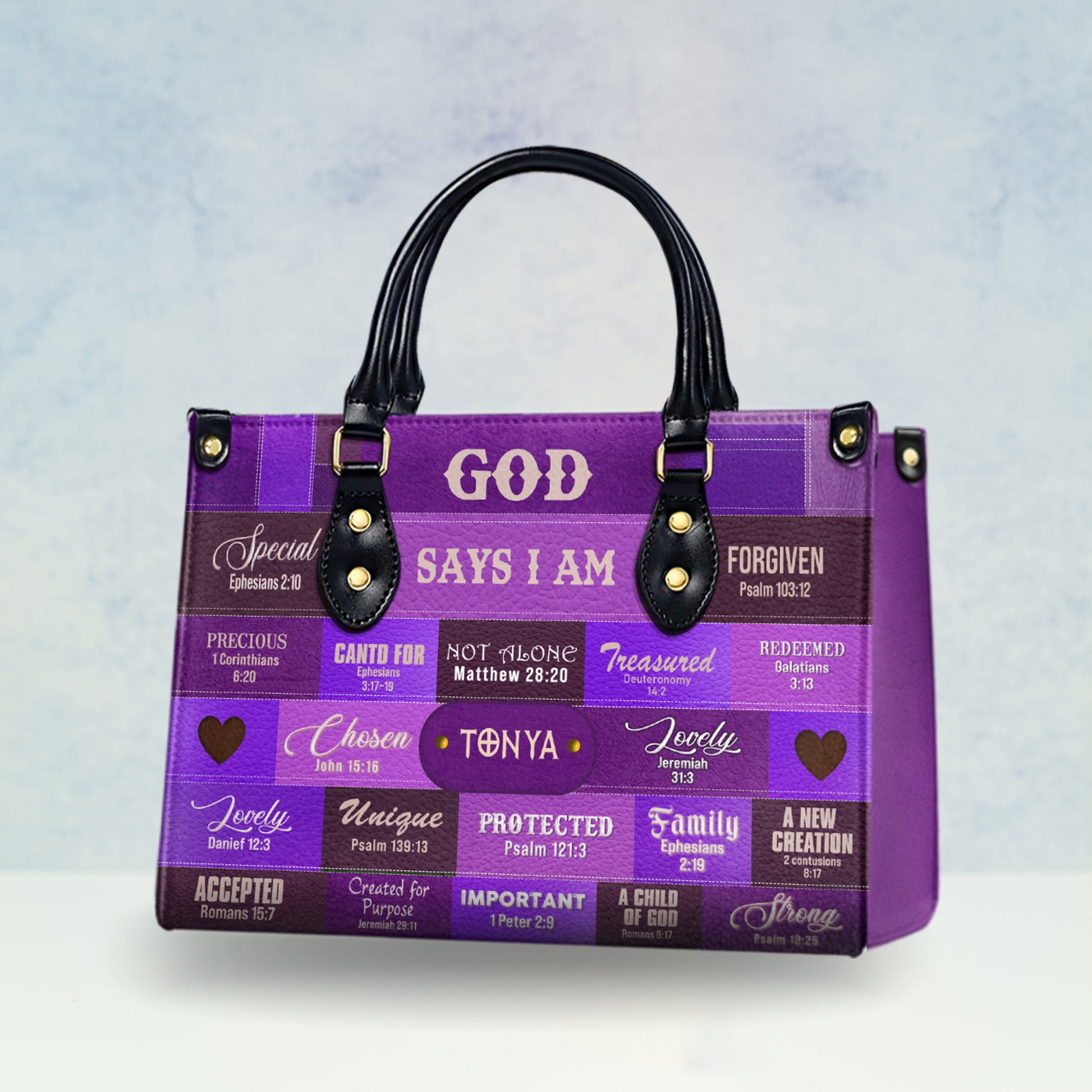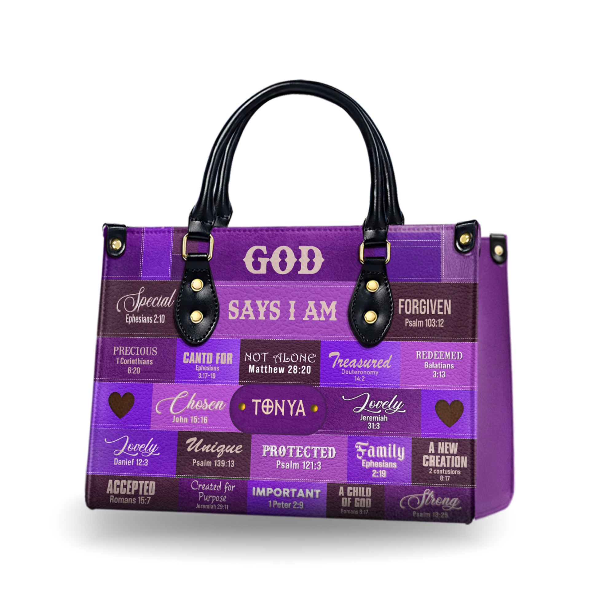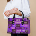 HB71-God Says I Am Christian Handbag – Custom Name Faith Purse for Women – Bible Verse Religious Gift – Purple Scripture Tote