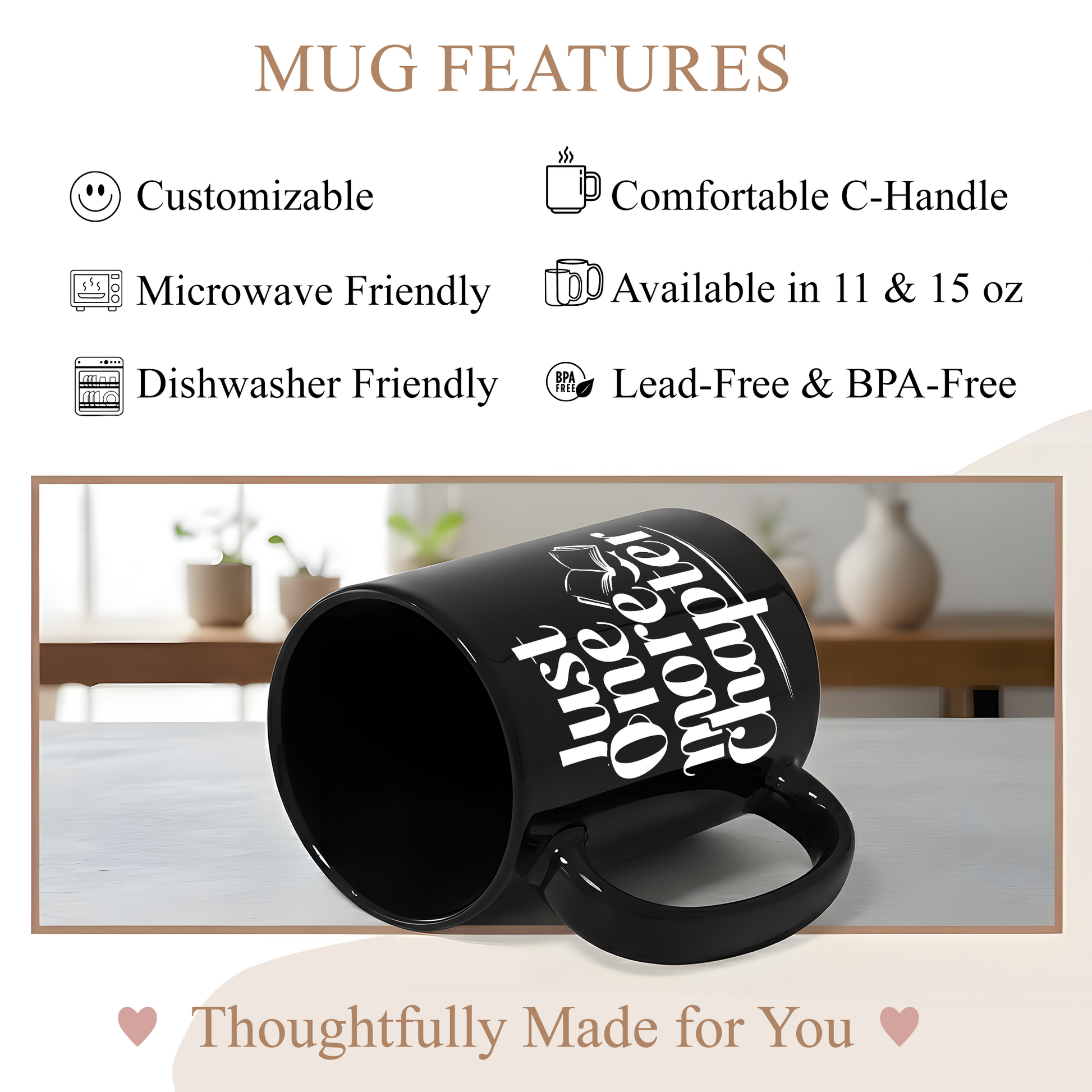 Enjoy every reading moment with our “Just One More Chapter” Ceramic Mug, designed for book lovers and cozy coffee enthusiasts. Featuring bold typography and an open-book icon, this premium glossy ceramic mug is durable, stylish, and perfect for morning coffee, afternoon tea, or late-night reading. Available in 11oz and 15oz, it’s an ideal companion for your book nook, workspace, or reading corner. It also makes a thoughtful gift for bookworms, students, teachers, writers, and librarians, whether for birthdays, holidays, book clubs, or simply treating yourself.