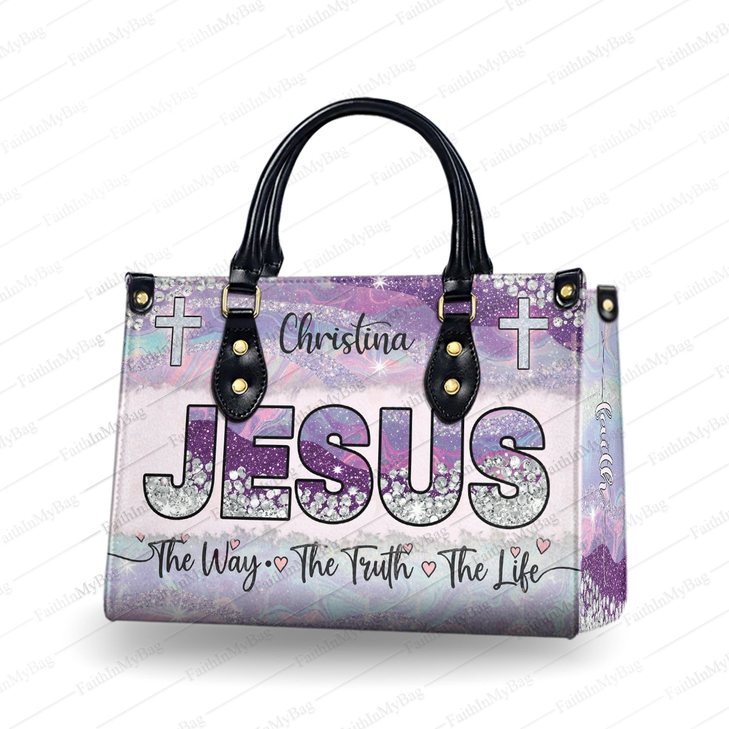 HB120 Custom Name Christian Handbag – Jesus The Way The Truth The Life Bag for Women – Religious Gift Purse – Faith-Based Tote with Cross Design