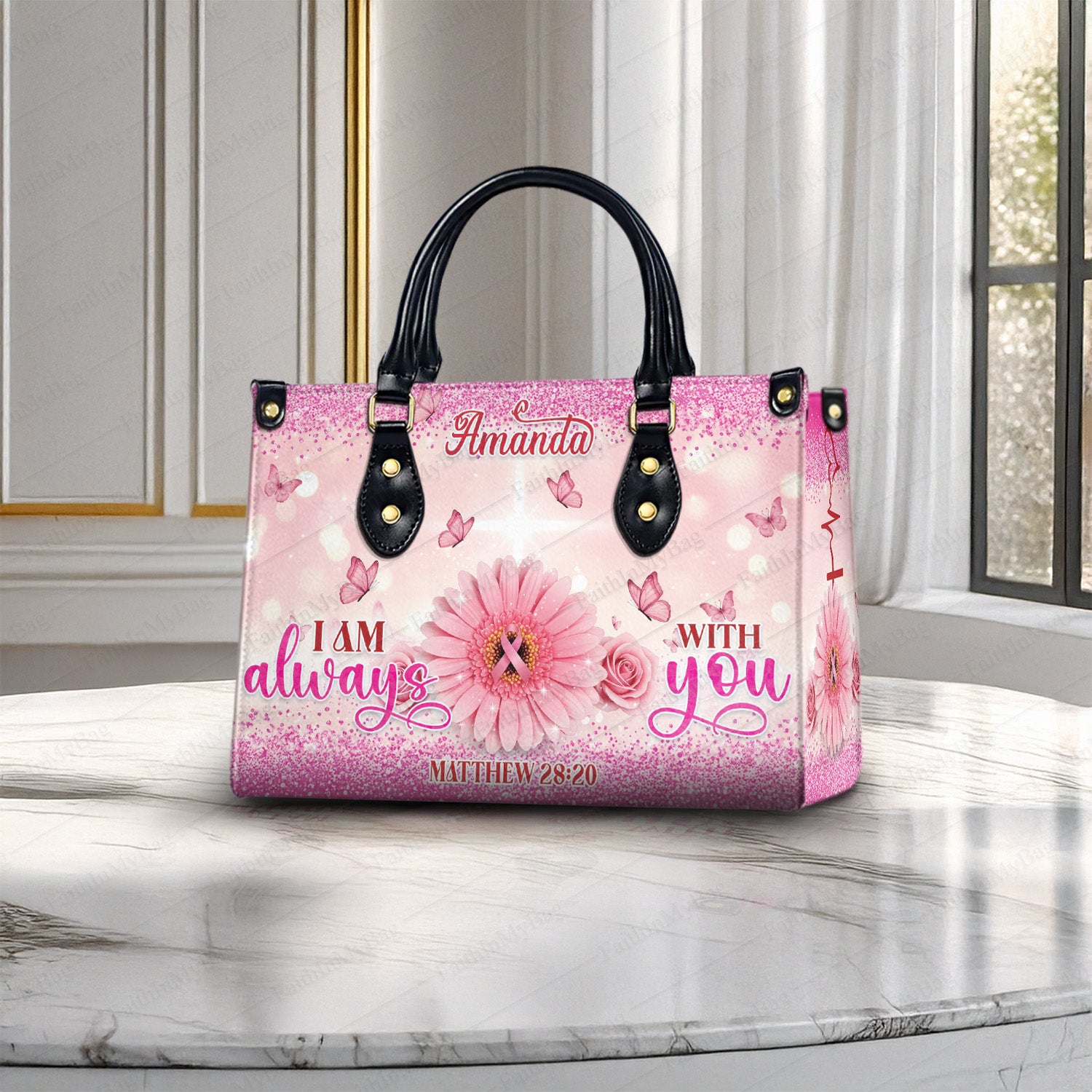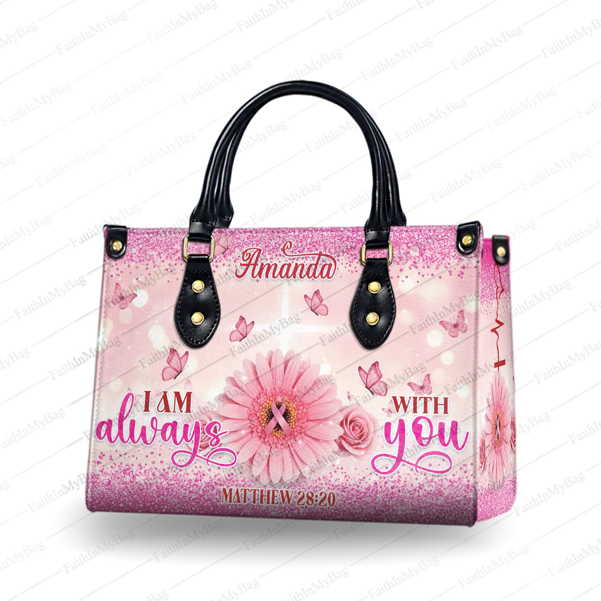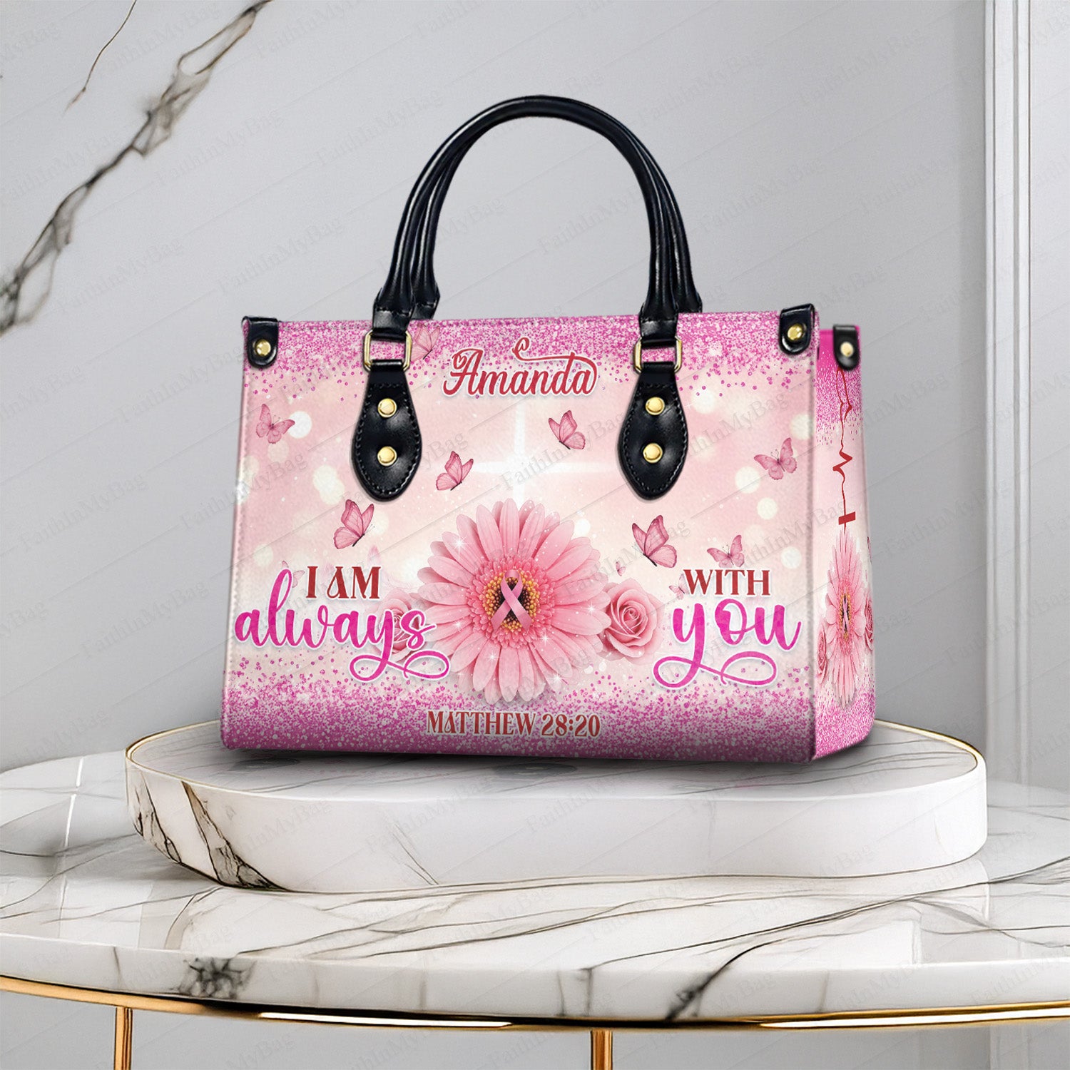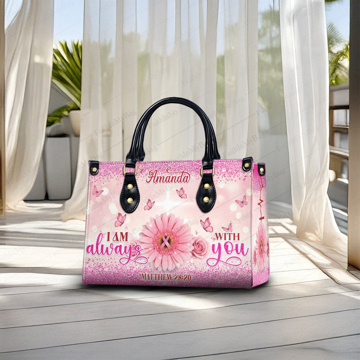 HB114 Custom Name Christian Handbag – I Am Always With You – Matthew 28:20 Bible Verse Purse, Breast Cancer Gift
