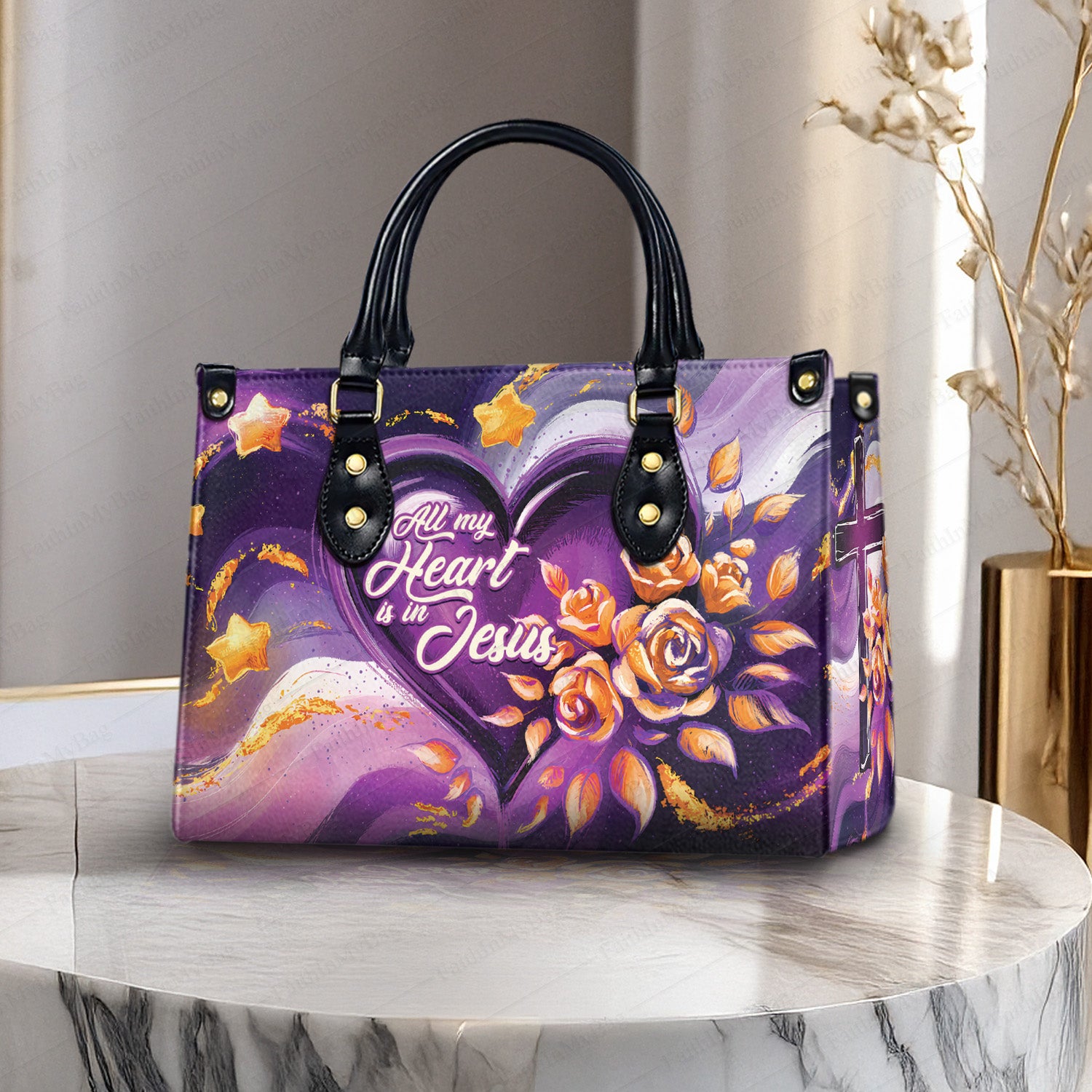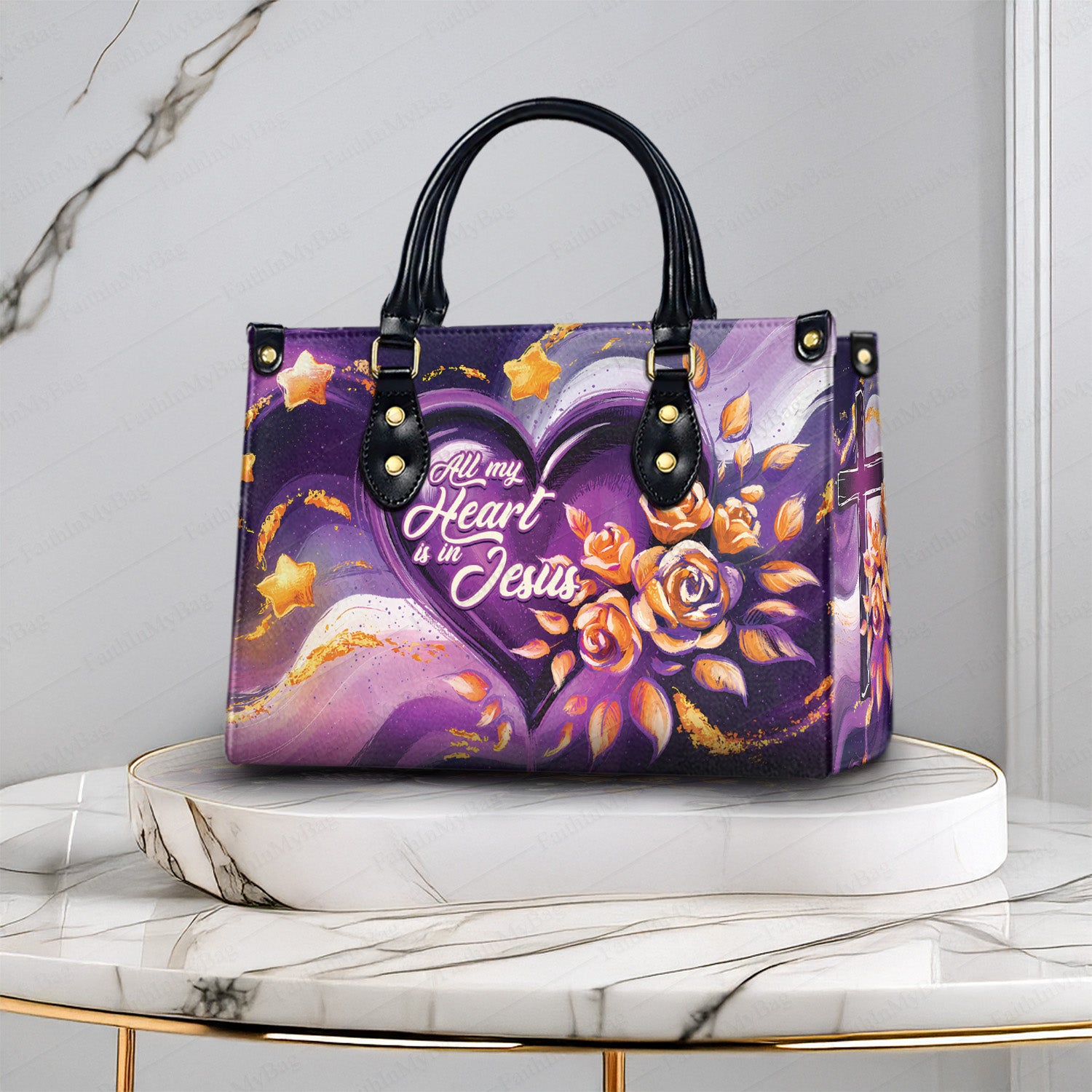 HB55 - Personalized Christian Handbag – "All My Heart Is in Jesus" PU Leather Tote Bag with Custom Name, Faith-Based Floral Purse Gift for Women