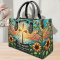 Carry your faith with style using this Christian PU leather handbag, beautifully designed with a stunning stained-glass effect cross, doves, and sunflowers. Featuring the inspiring verse "His mercies are new every morning" (Lamentations 3:23), this bag serves as a daily reminder of God’s grace and love.