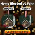 Our “Home Blessed by Faith Ornament” beautifully captures the warmth of a faith-filled Christmas night.
