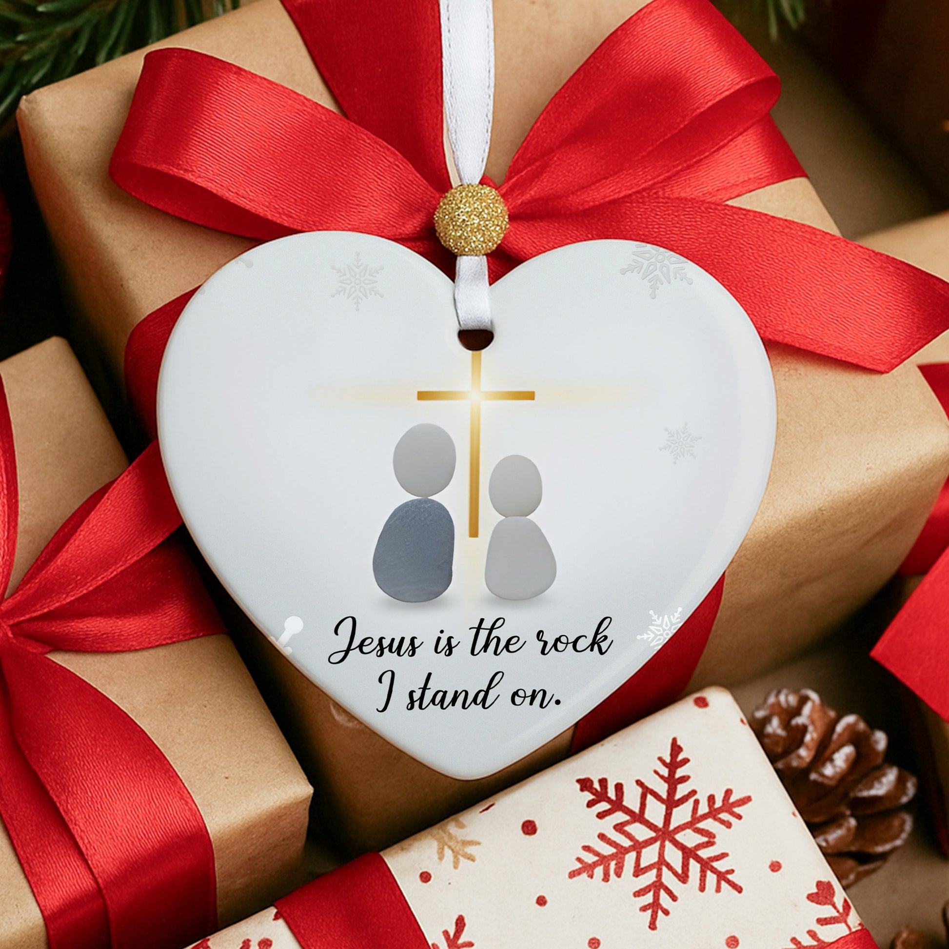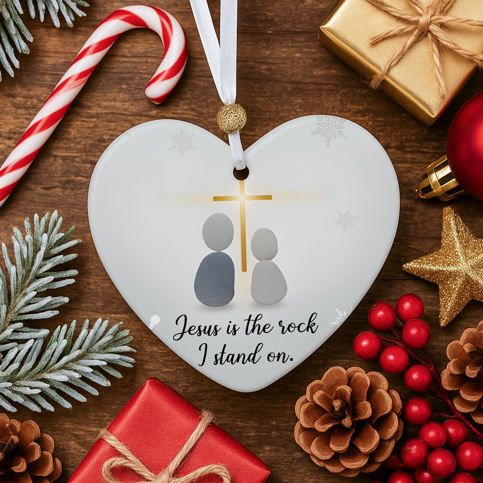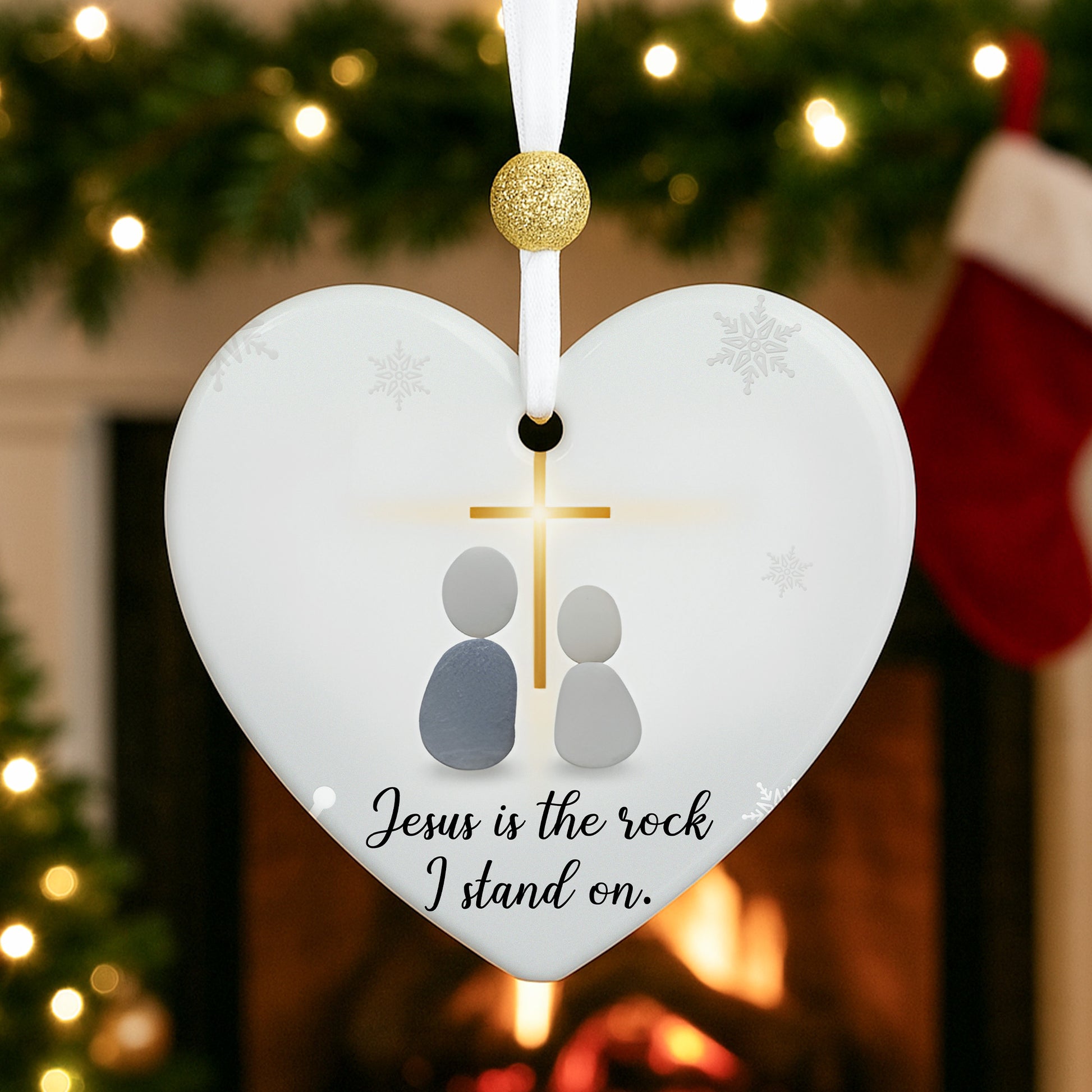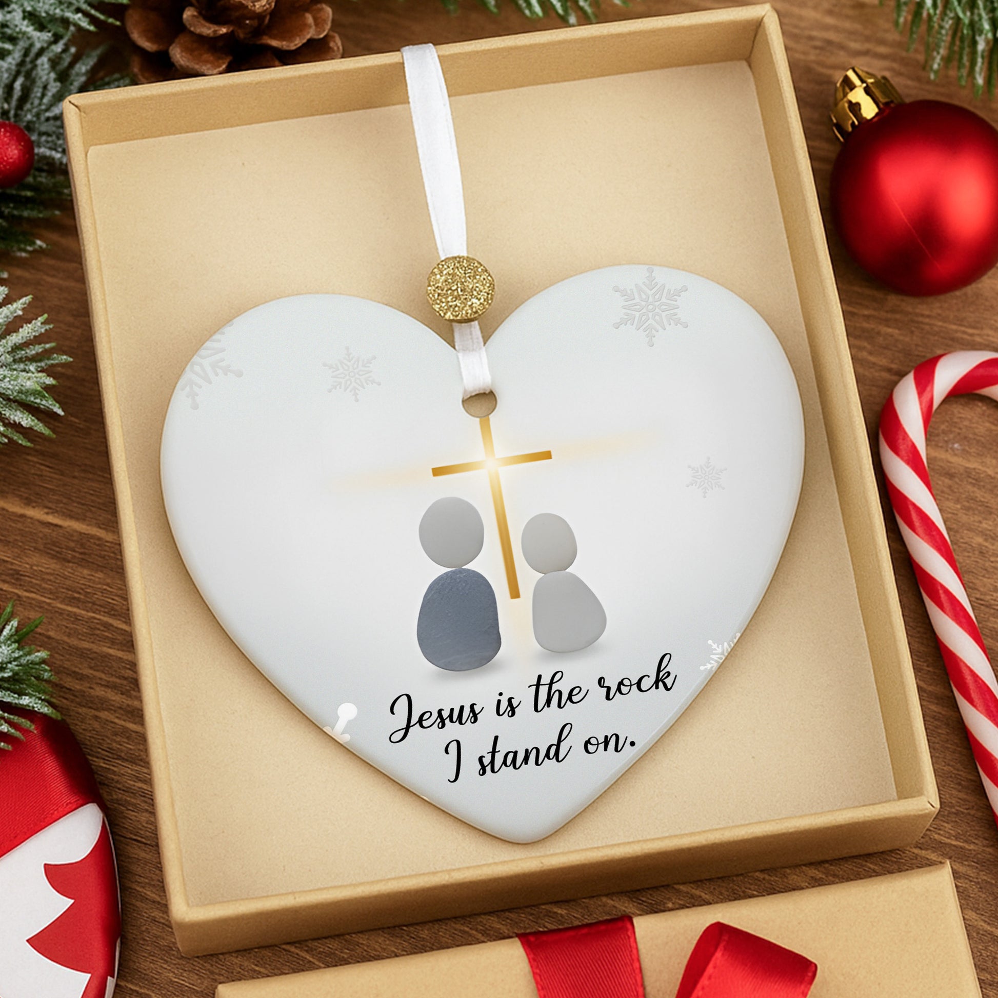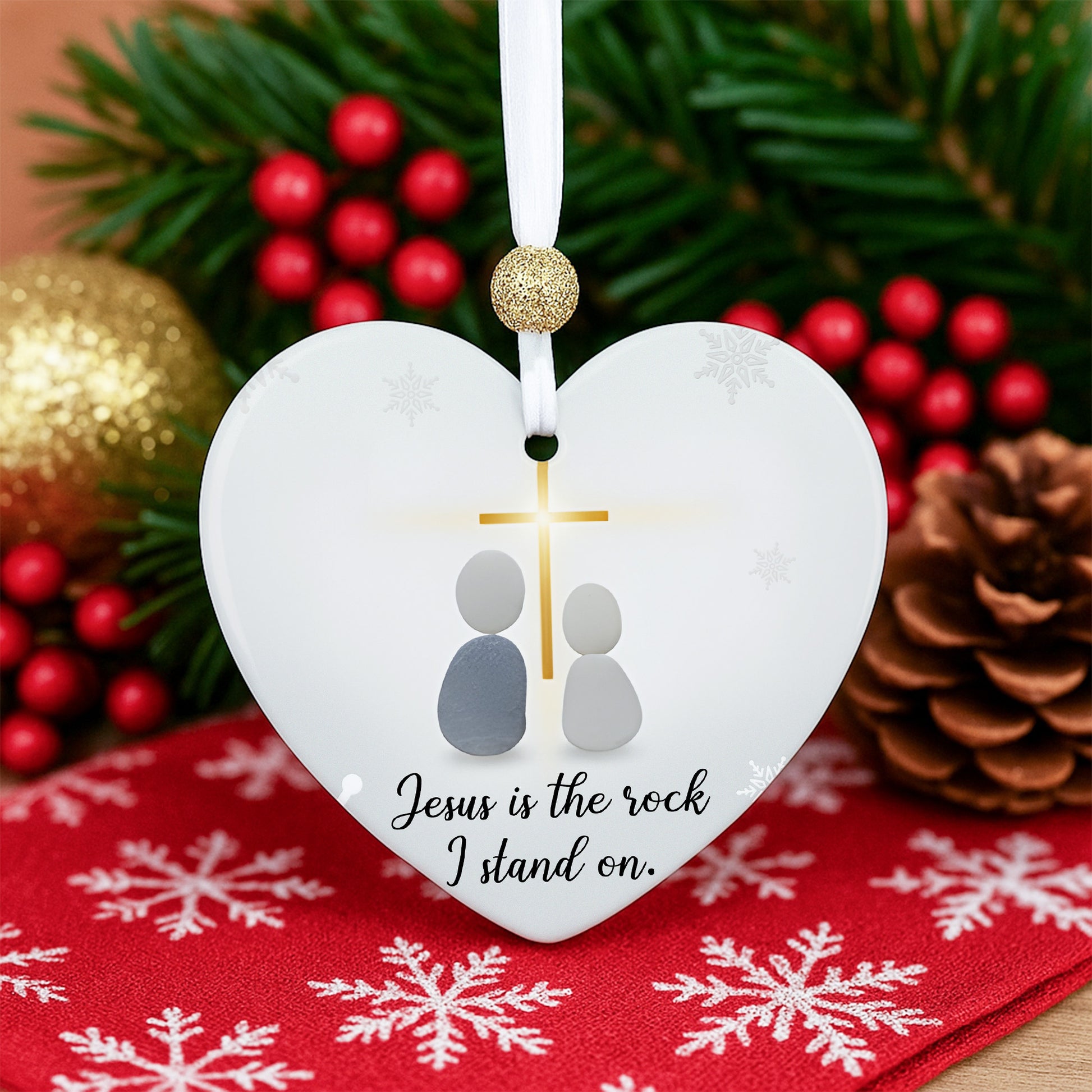 Faith Christmas Ornament – Jesus Is the Rock I Stand On, Inspirational Religious Gift, Christian Ceramic Decoration|ONM06