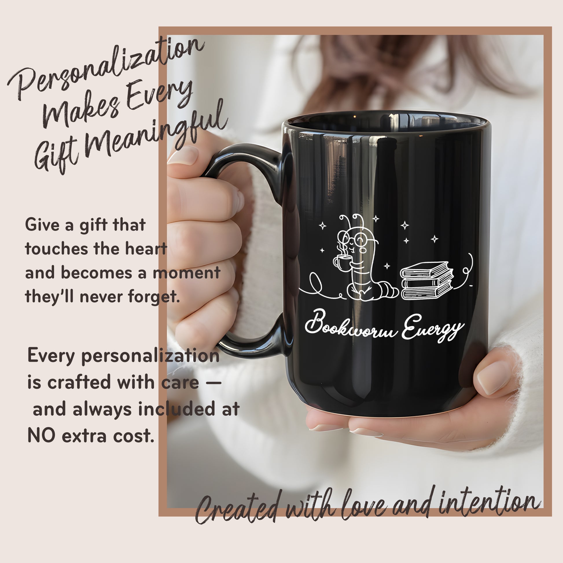 Ideal for book lovers, students, and coffee enthusiasts, this Bookworm Energy mug is sure to bring a smile to anyone who enjoys cozy reading sessions or simply loves the magic of books.