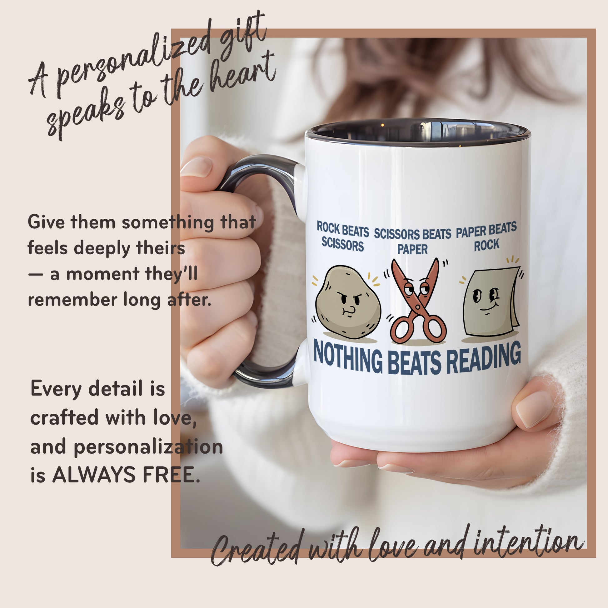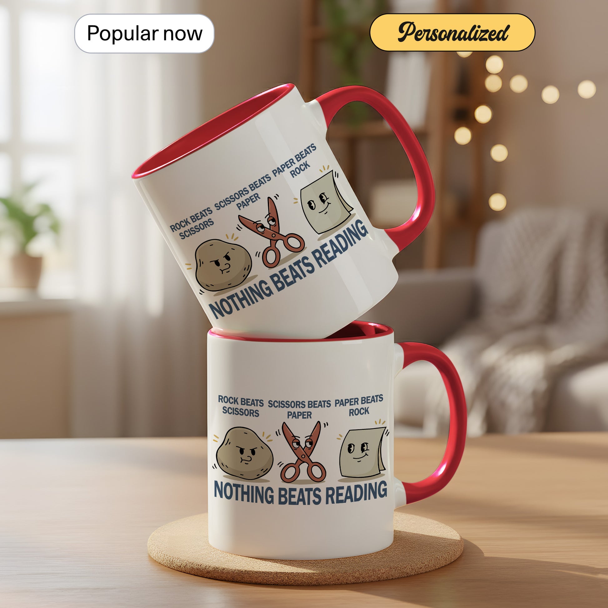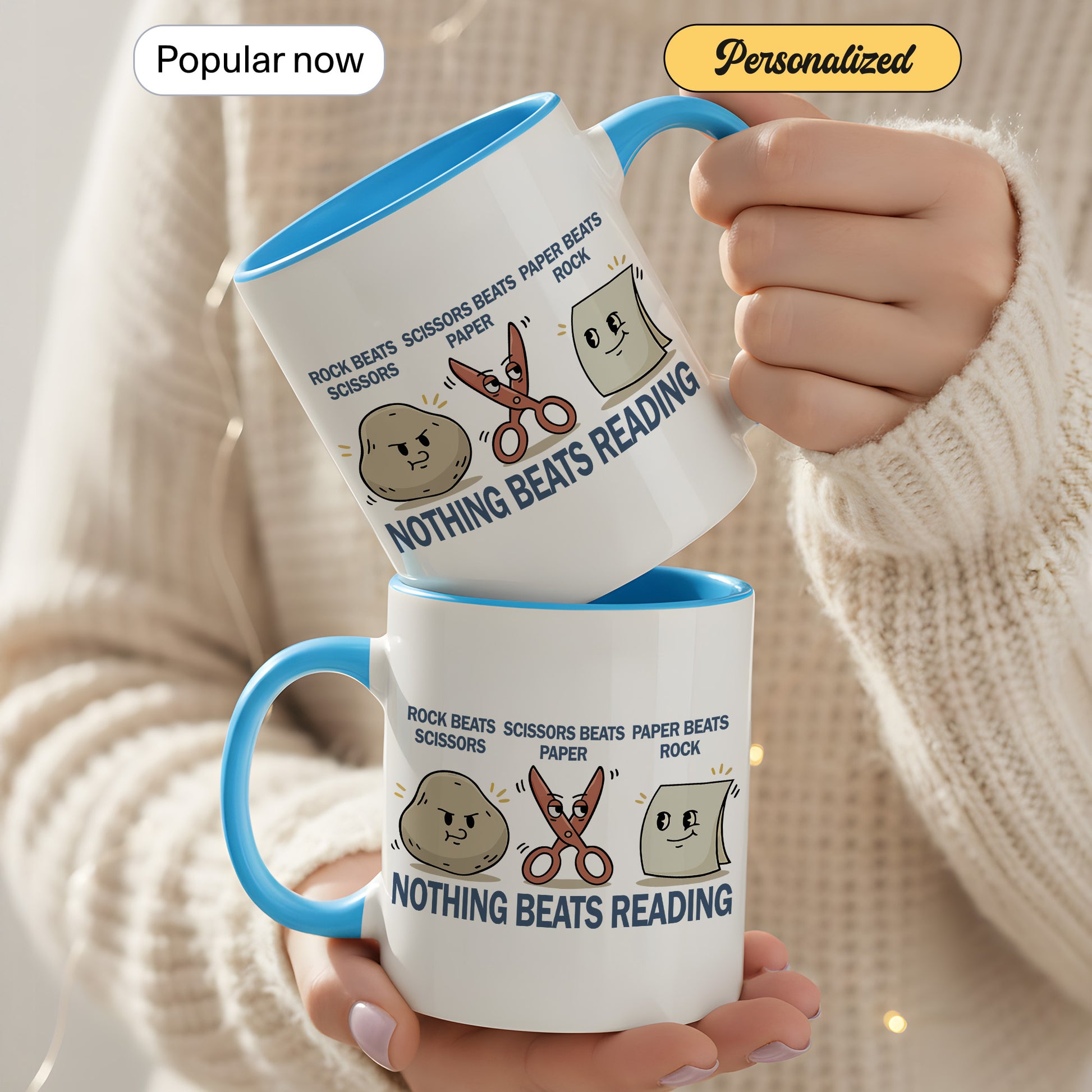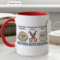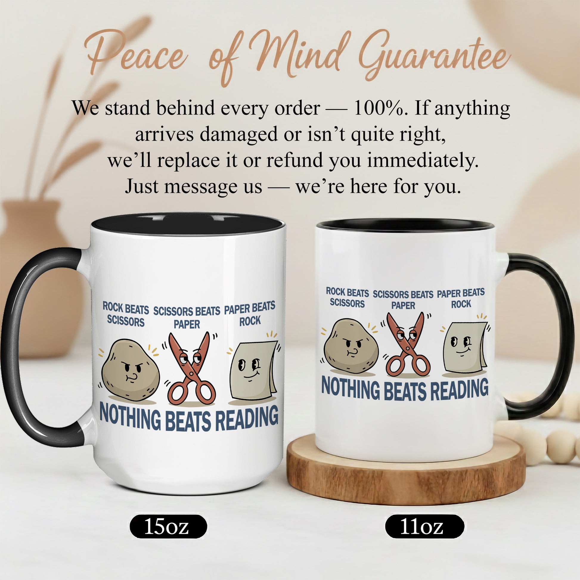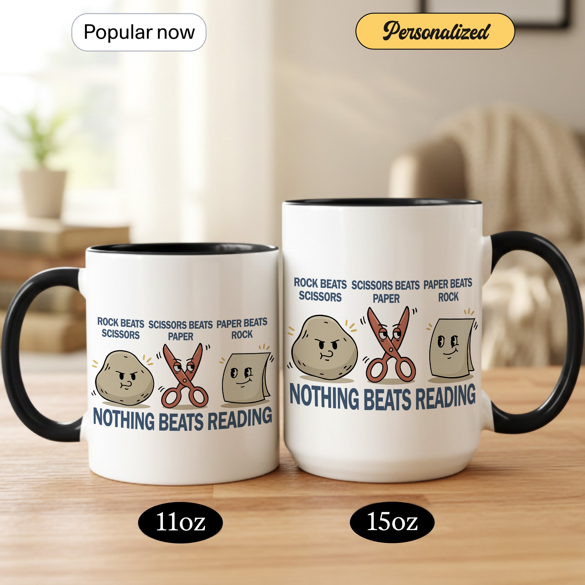 Funny Nothing Beats Reading Mug – Rock Paper Scissors Book Lover Cup, Reading Humor Gift for Readers & Teachers| Mug 160