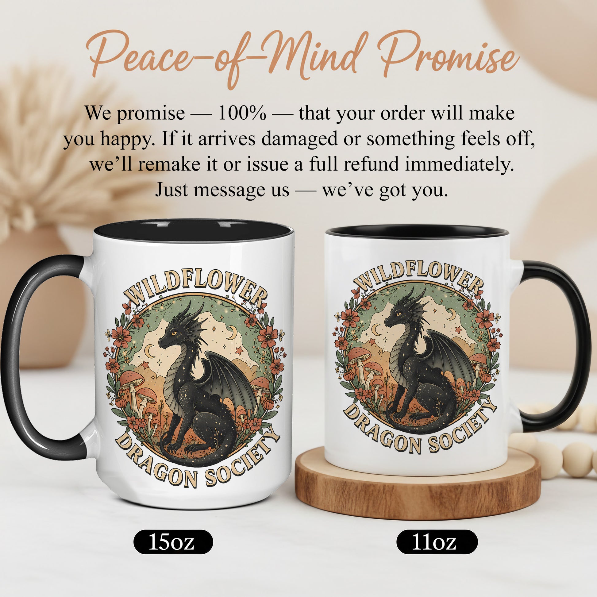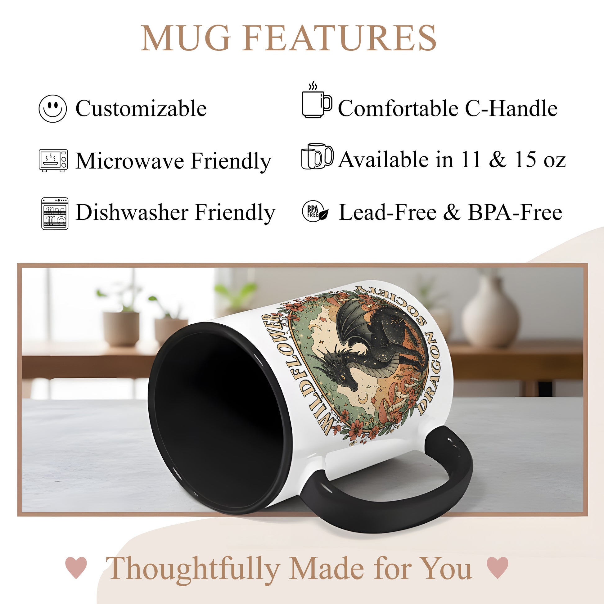 Wildflower Dragon Society Accent Mug – Cottagecore Dragon Coffee Cup, Fantasy Gift for Dragon Lovers, 11oz/15oz| Mug 131