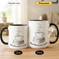 Design: Black ceramic mug with a minimalist illustration of a cup and books. "Booktrovert Café" adds a cozy, bookish touch.