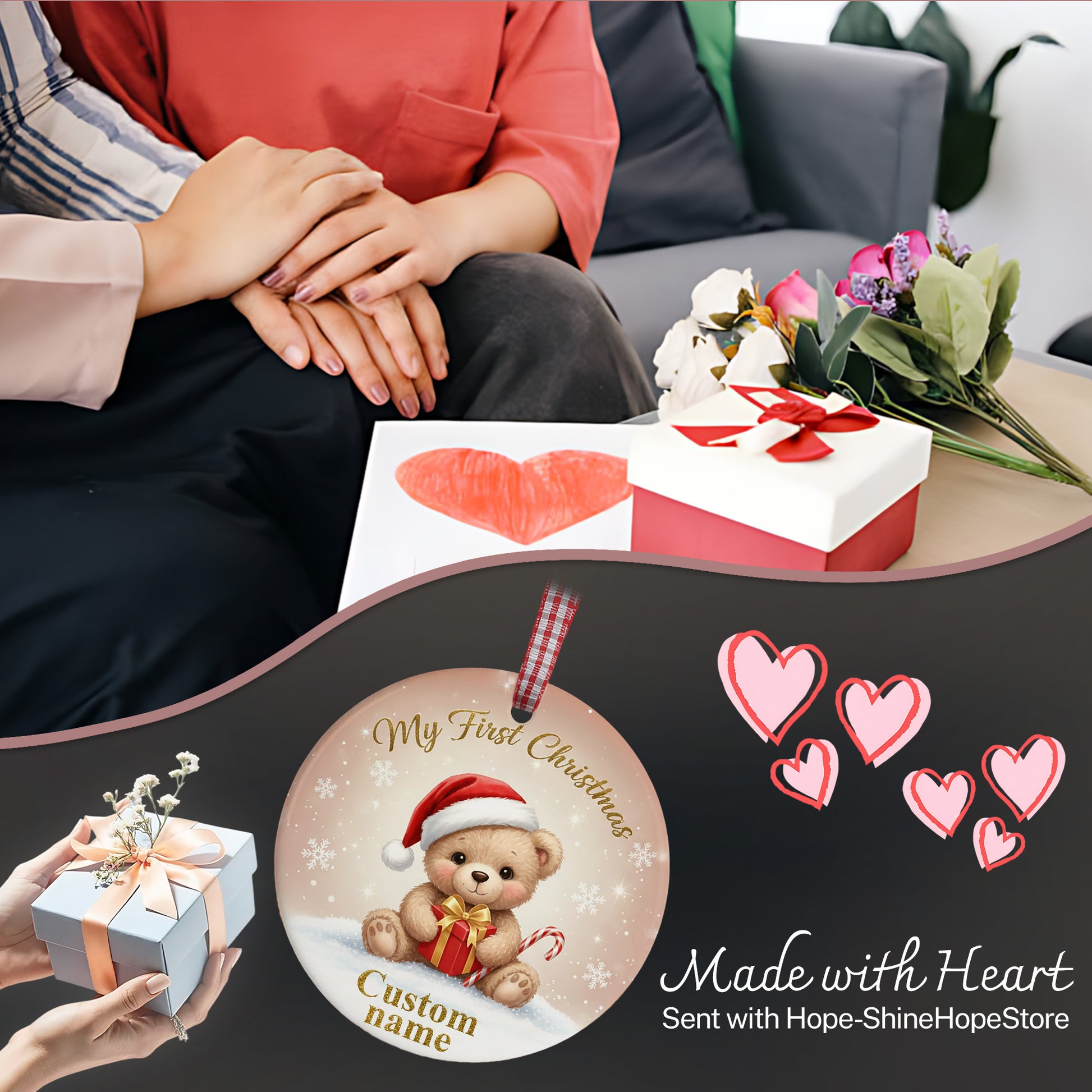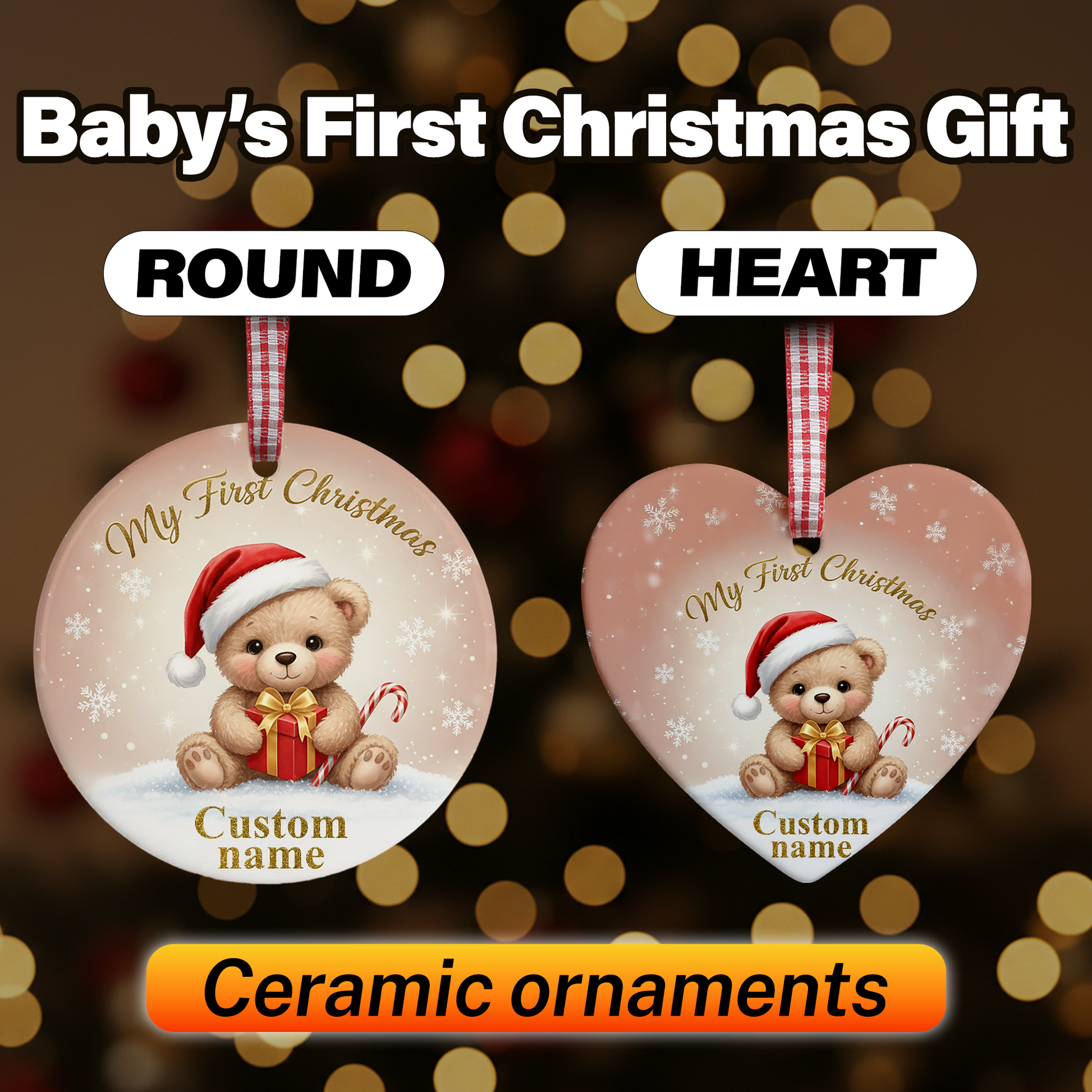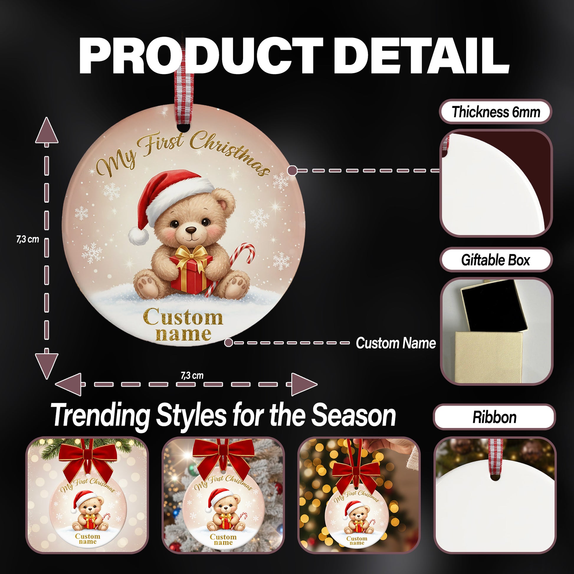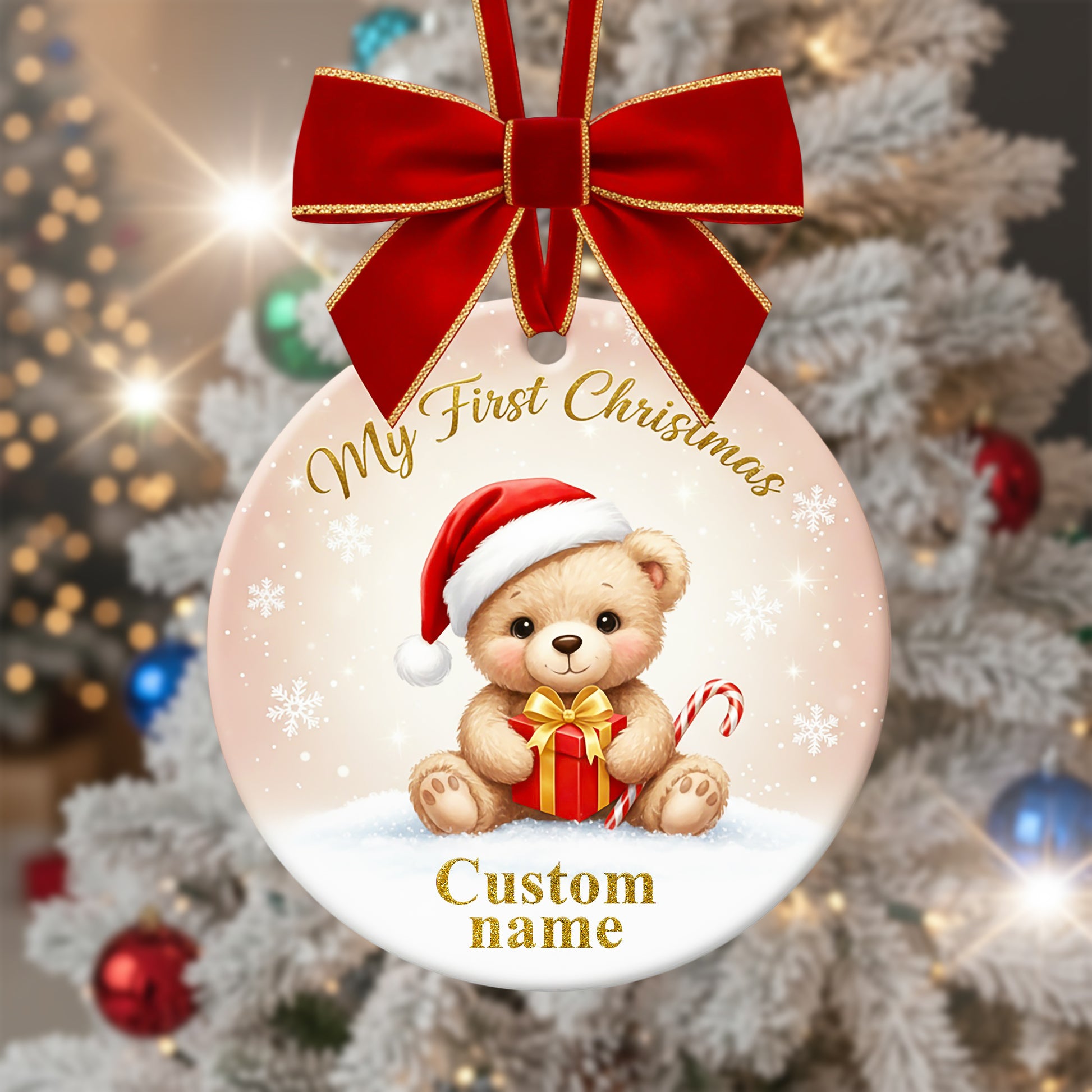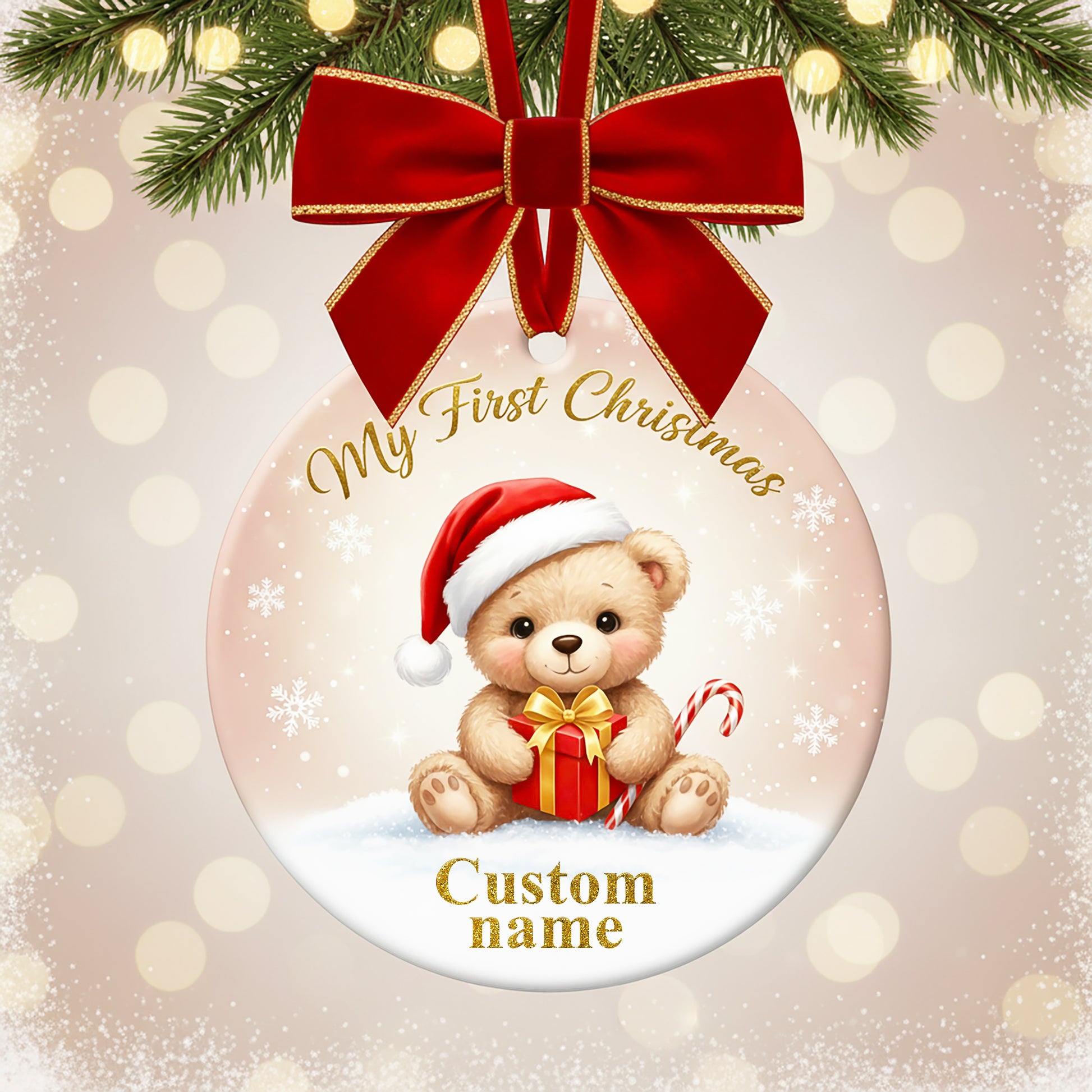 My First Christmas Ornament 2025, Baby Bear Ceramic Ornament, Personalized Name Gift, New Baby Keepsake, Cute Holiday Decoration | Ornament148