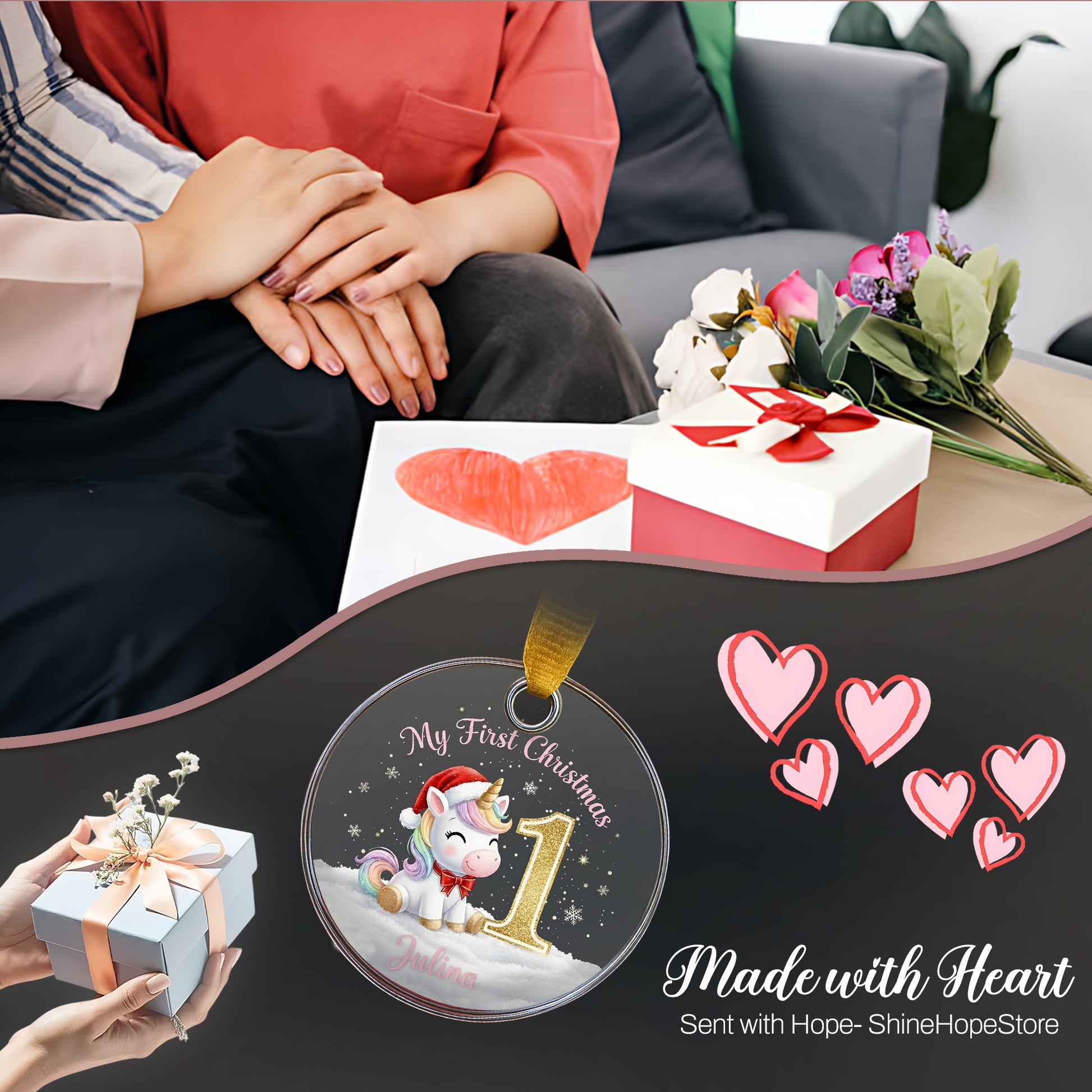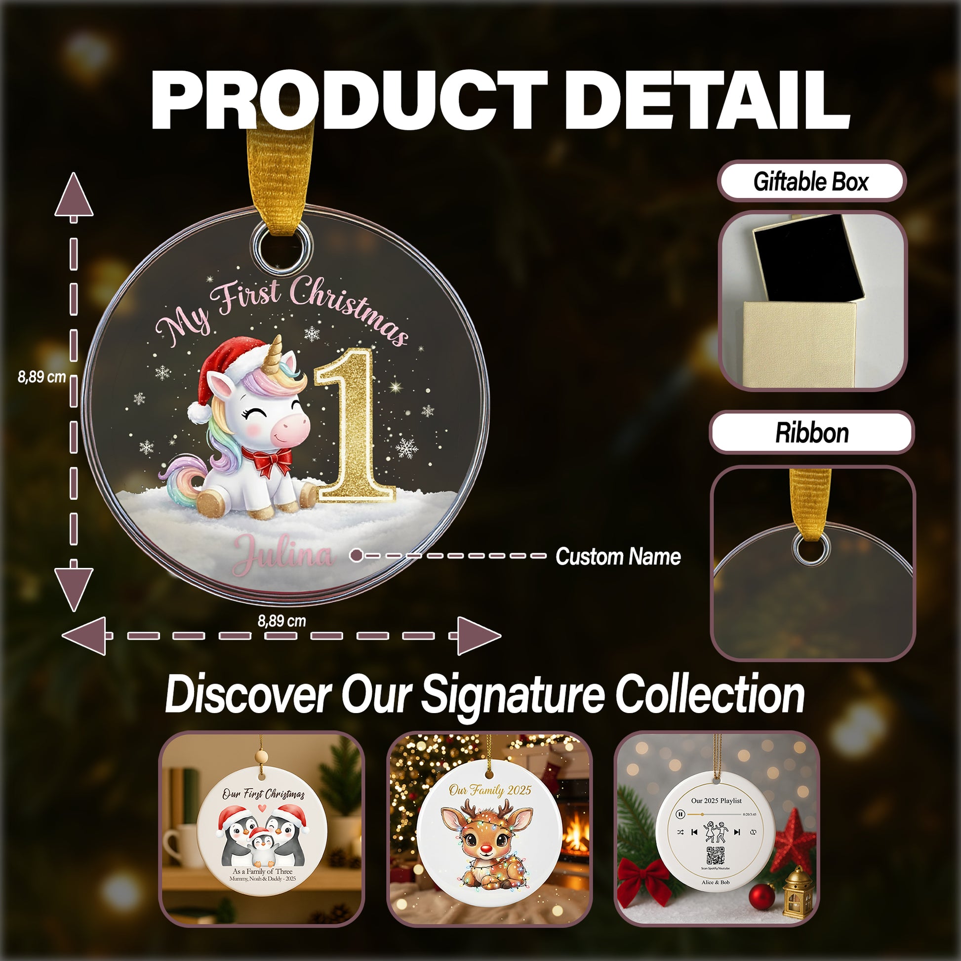 My First Christmas Ornament, Personalized Baby Unicorn Acrylic Ornament, Custom Name Gift for Girl, 1st Christmas Keepsake | Ornament123
