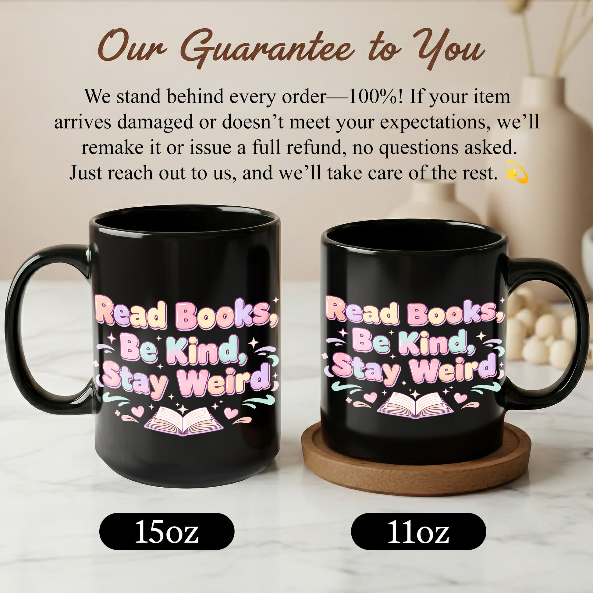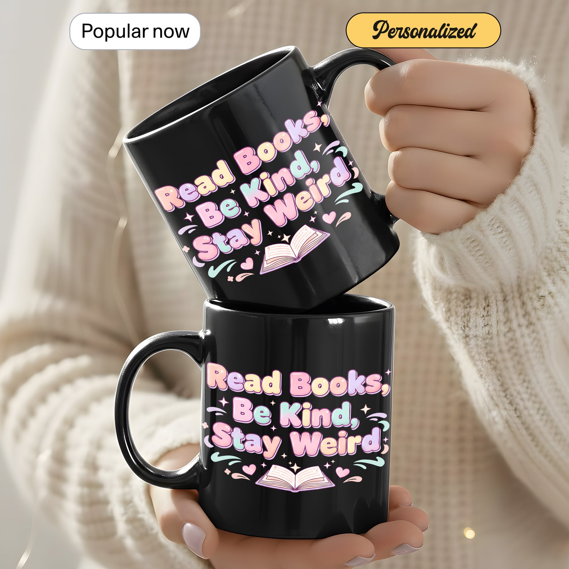 👉 Order your “Read Books Be Kind Stay Weird” mug today and add a dose of positivity and literary charm to every sip!